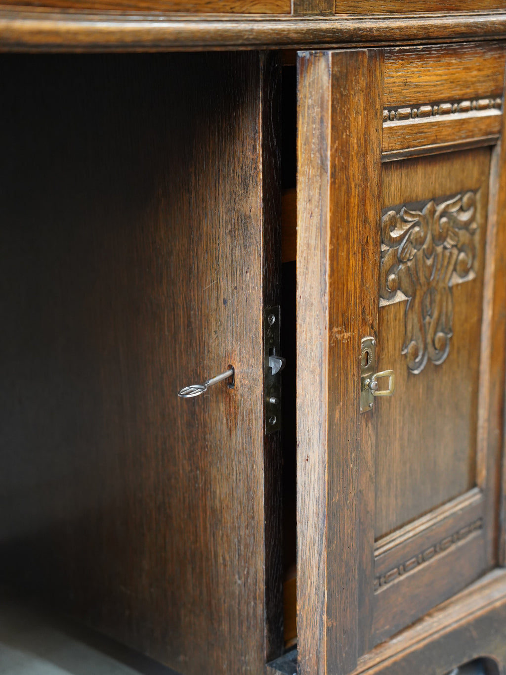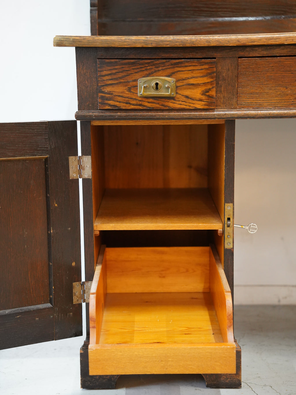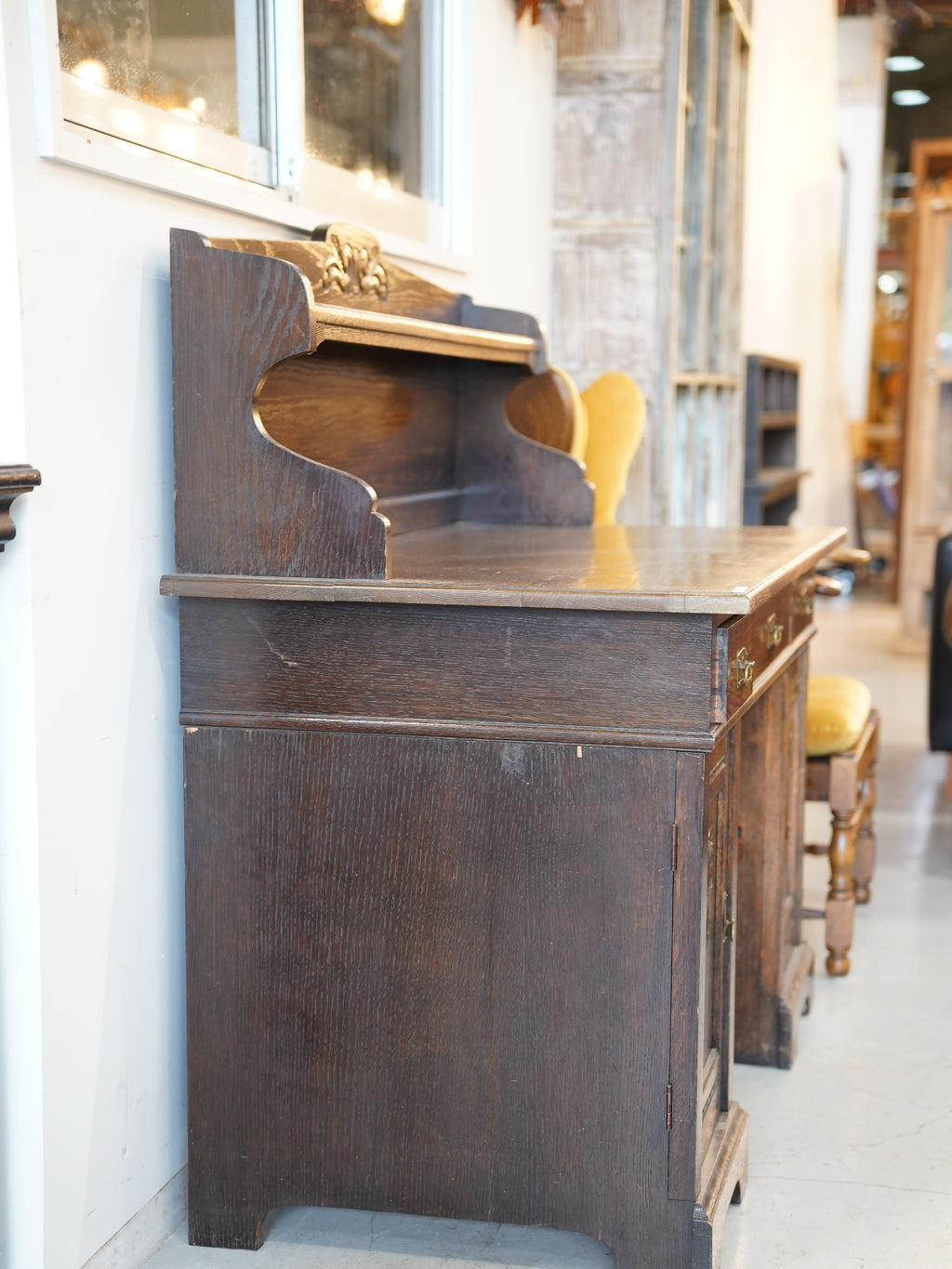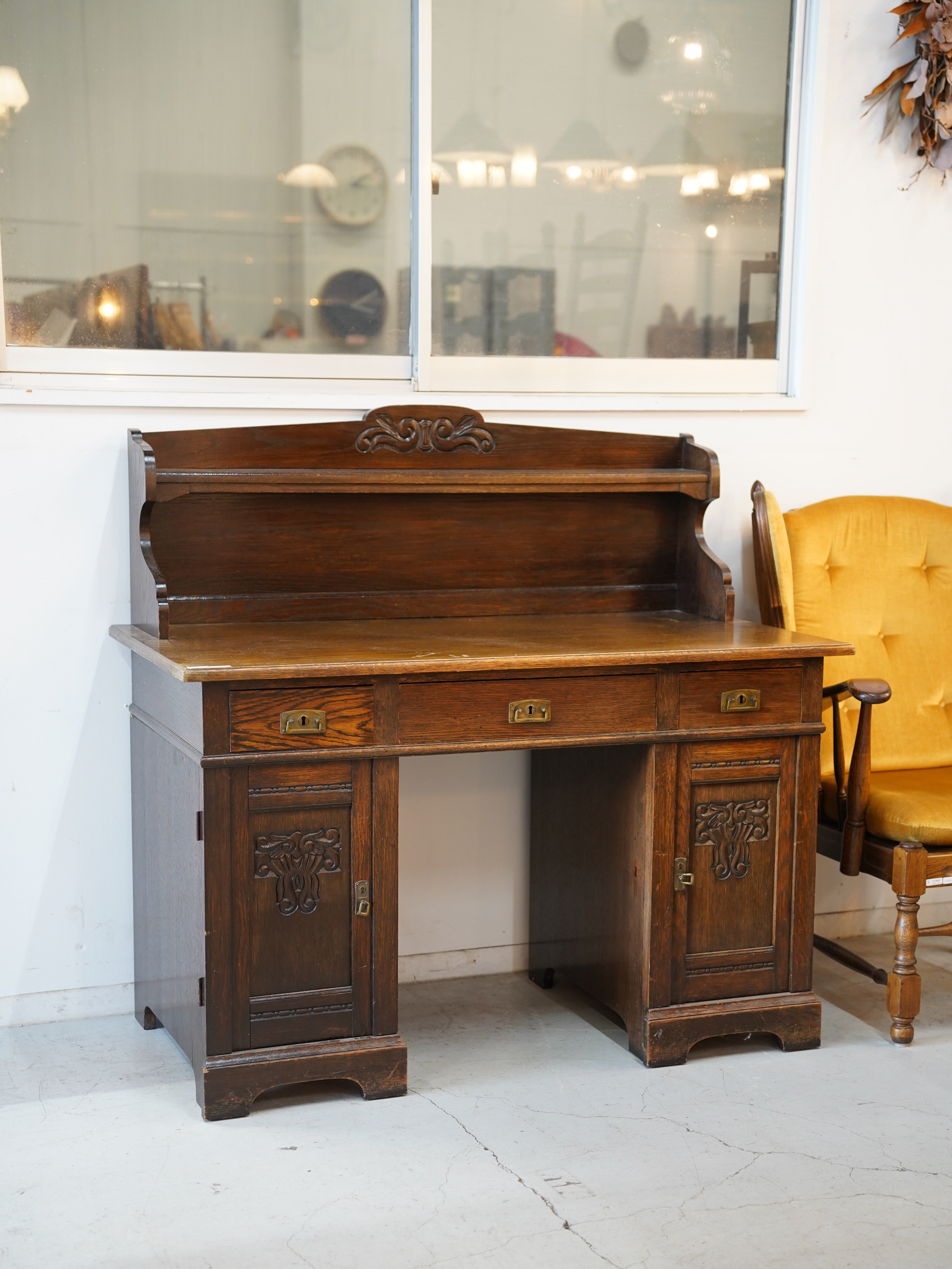 重厚なオーク材の質感が際立つ、クラシックな雰囲気のアンティークデスクです。