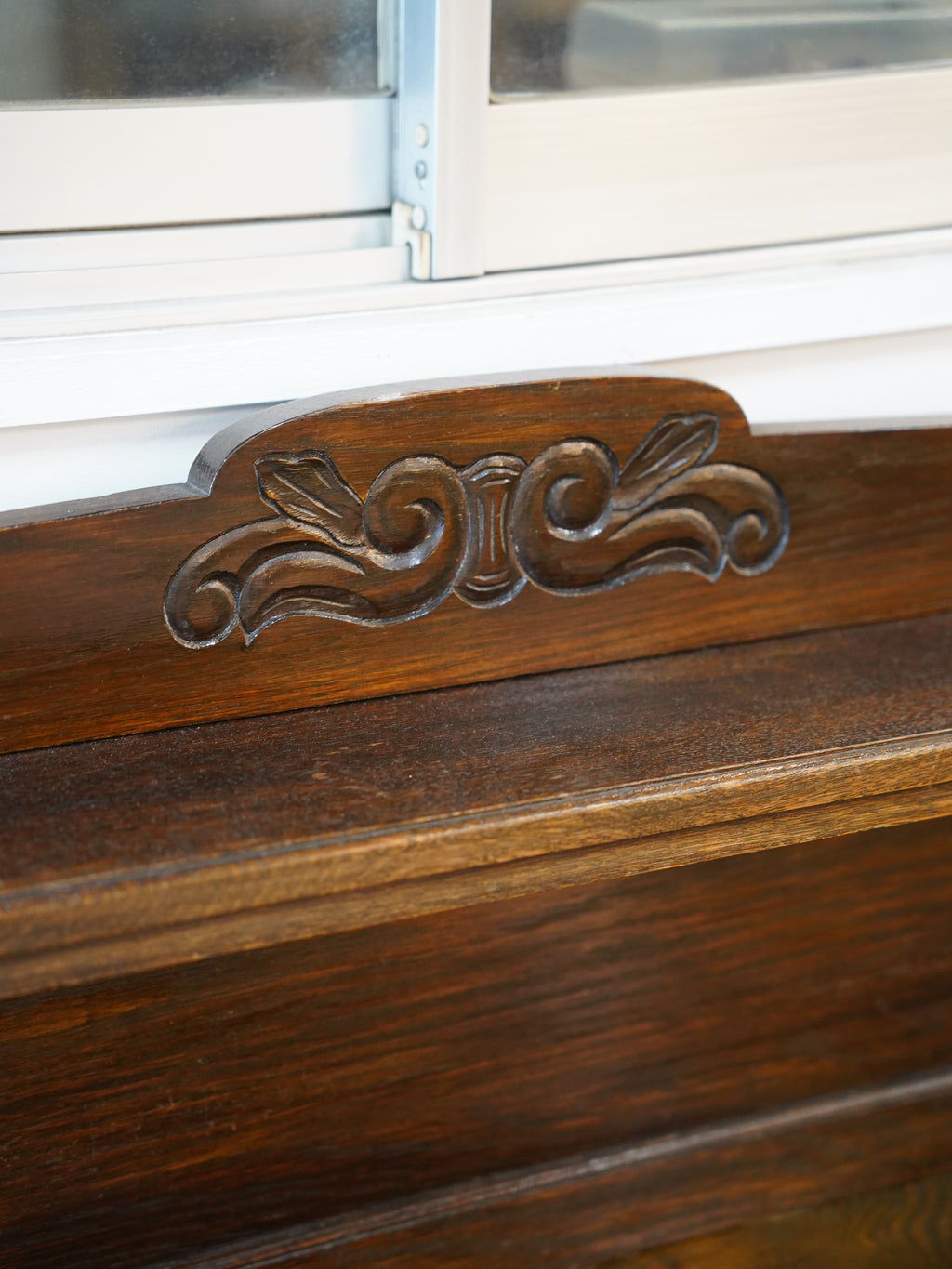 使い込まれたオーク材ならではの深い色味と美しい木目は、落ち着いたクラシックな空間を演出。本を読んだり、手紙を書いたり、趣味に没頭したりと、自分だけの特別な時間を過ごすためのパートナーとして最適です。