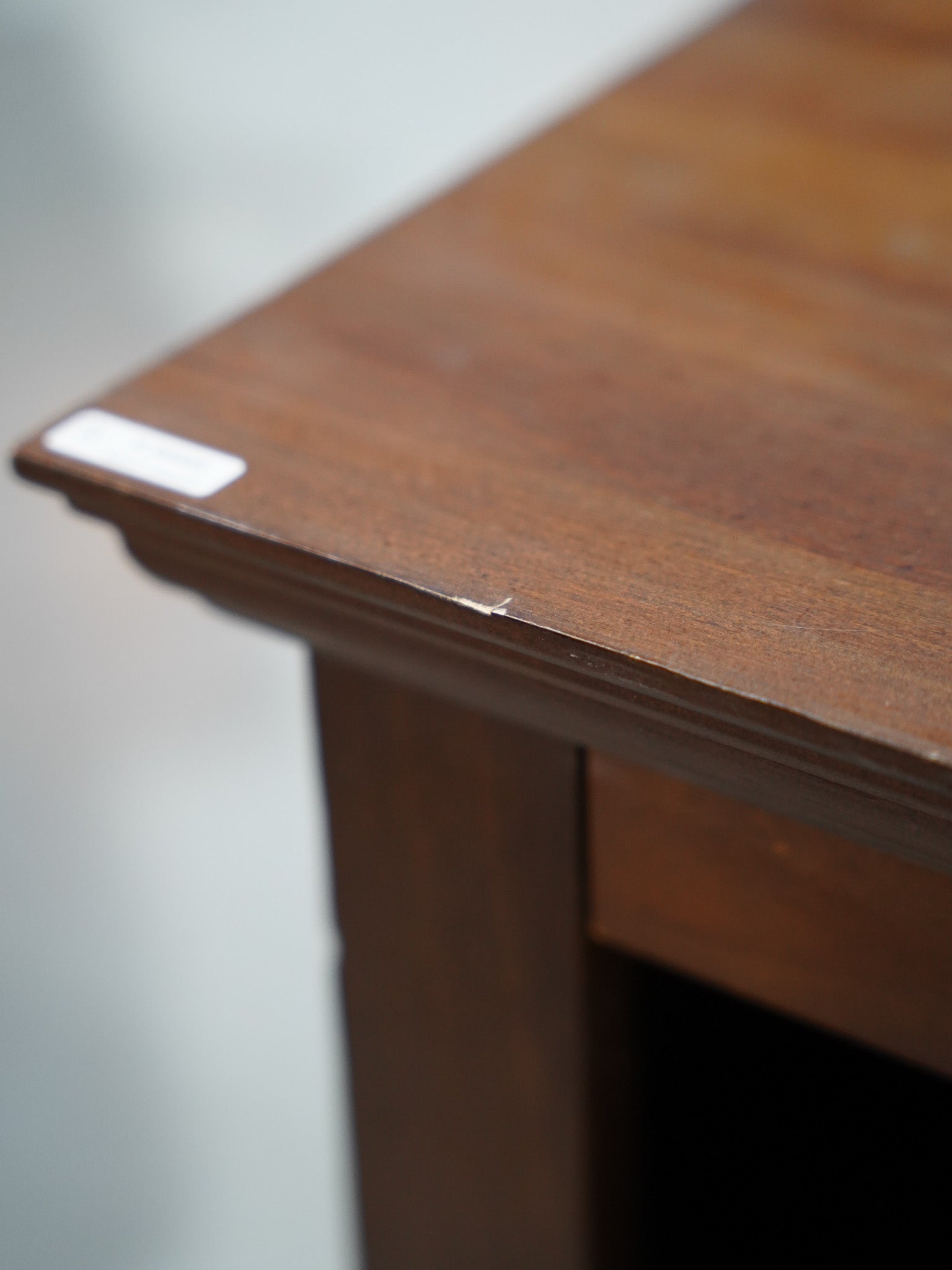 下部には、左右の扉で開閉する収納スペースがあります。扉にはモールディングが施されており、シンプルながらも立体感とクラシカルな雰囲気を加えています。