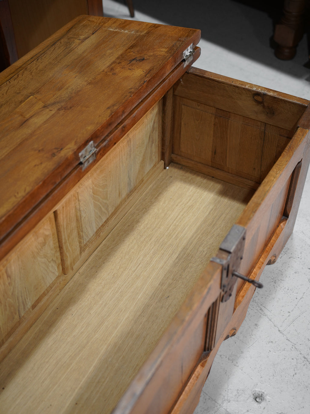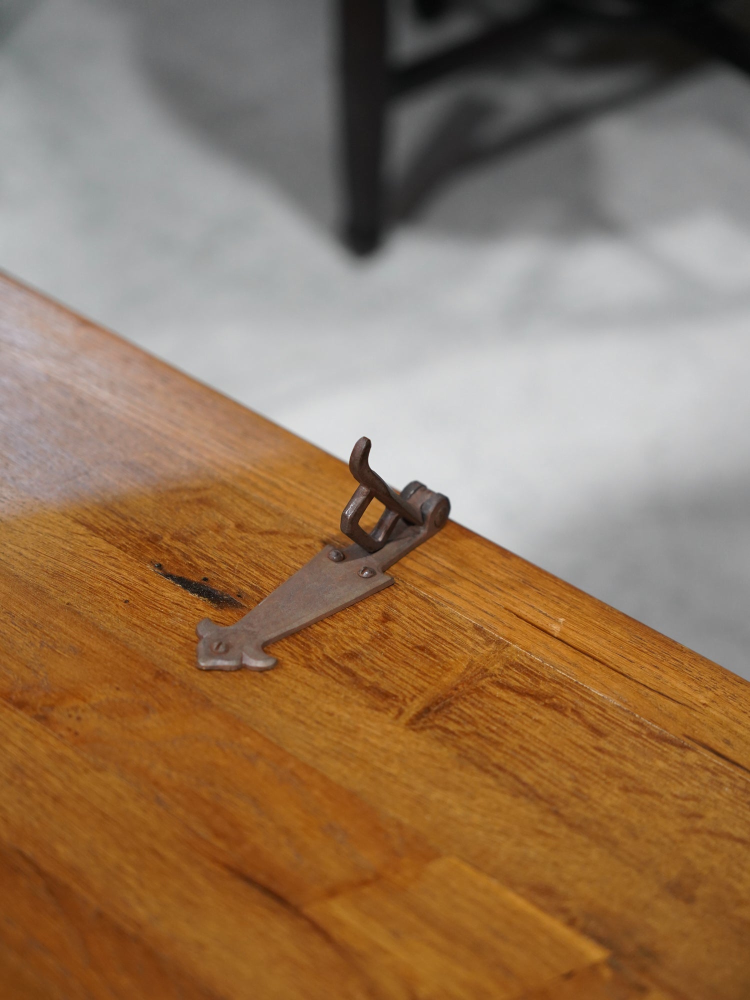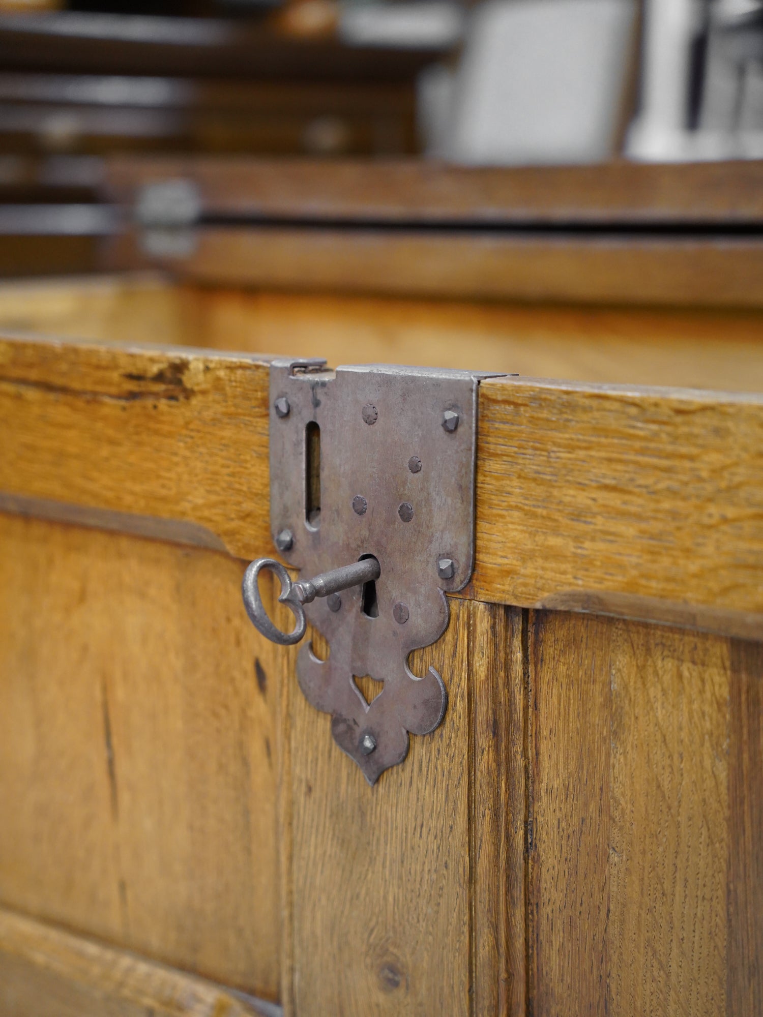 中央の古い金属製の錠前が、この家具が歩んできた豊かな歴史を物語っています。