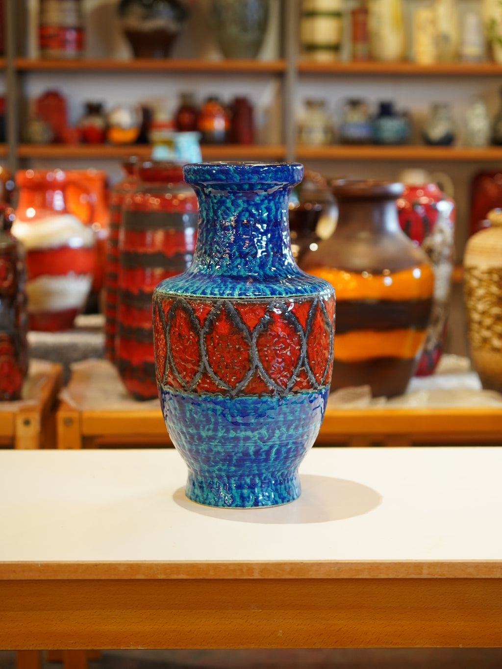 1933年に創業し、特に1960年代から70年代にかけて旧西ドイツ陶器市場で大きな成功を収めたメーカーです。彼らの特徴は、質の高い成形技術と、アバンギャルドで多様な釉薬表現にあります。特に、鮮やかなコバルトブルーの「Koralle」や、厚くざらついたFat Lavaなど、強烈な色彩とテクスチャを持つ作品で知られています。その優れたデザインと品質から、現在も世界中のコレクターに愛されています。