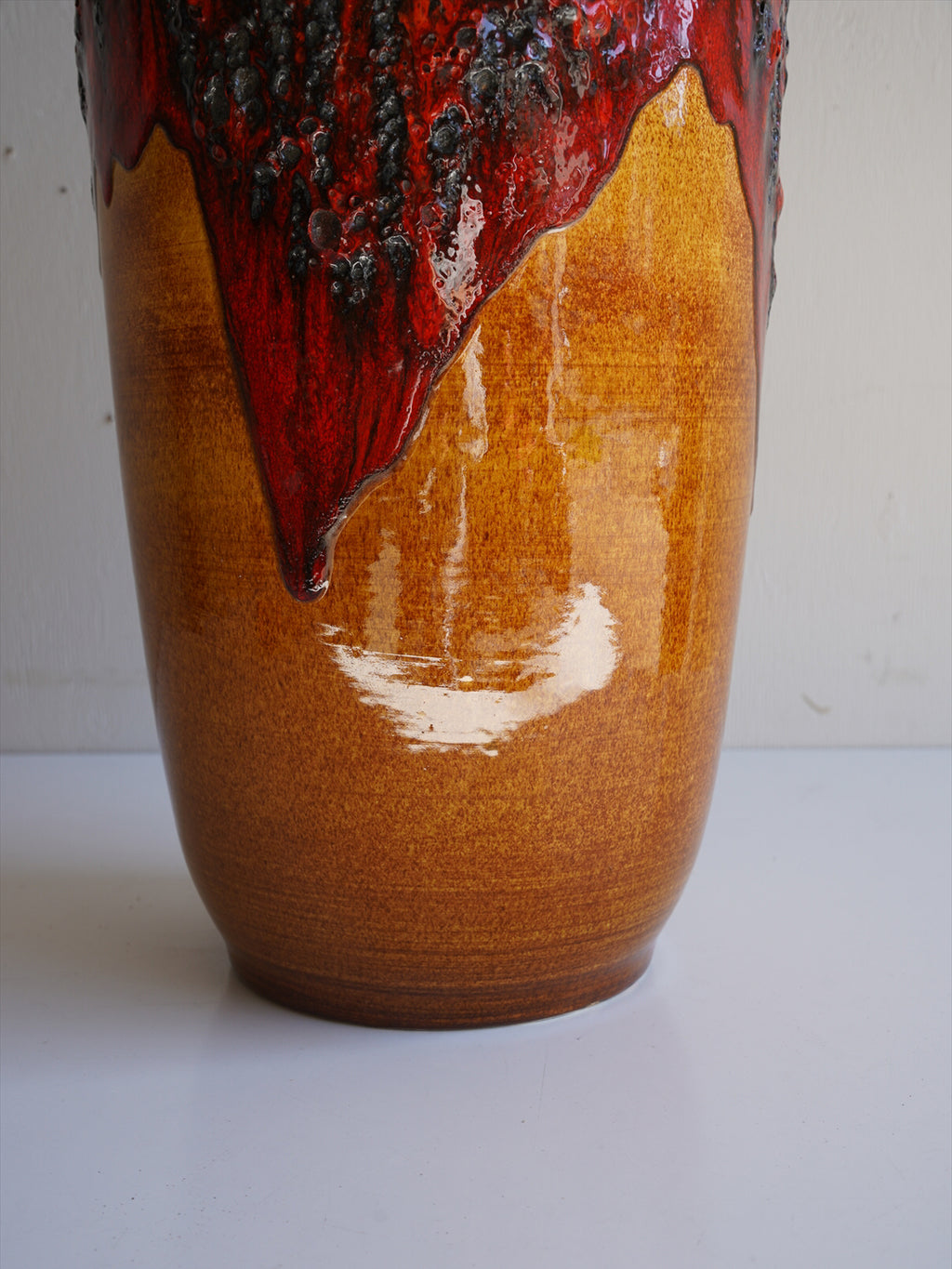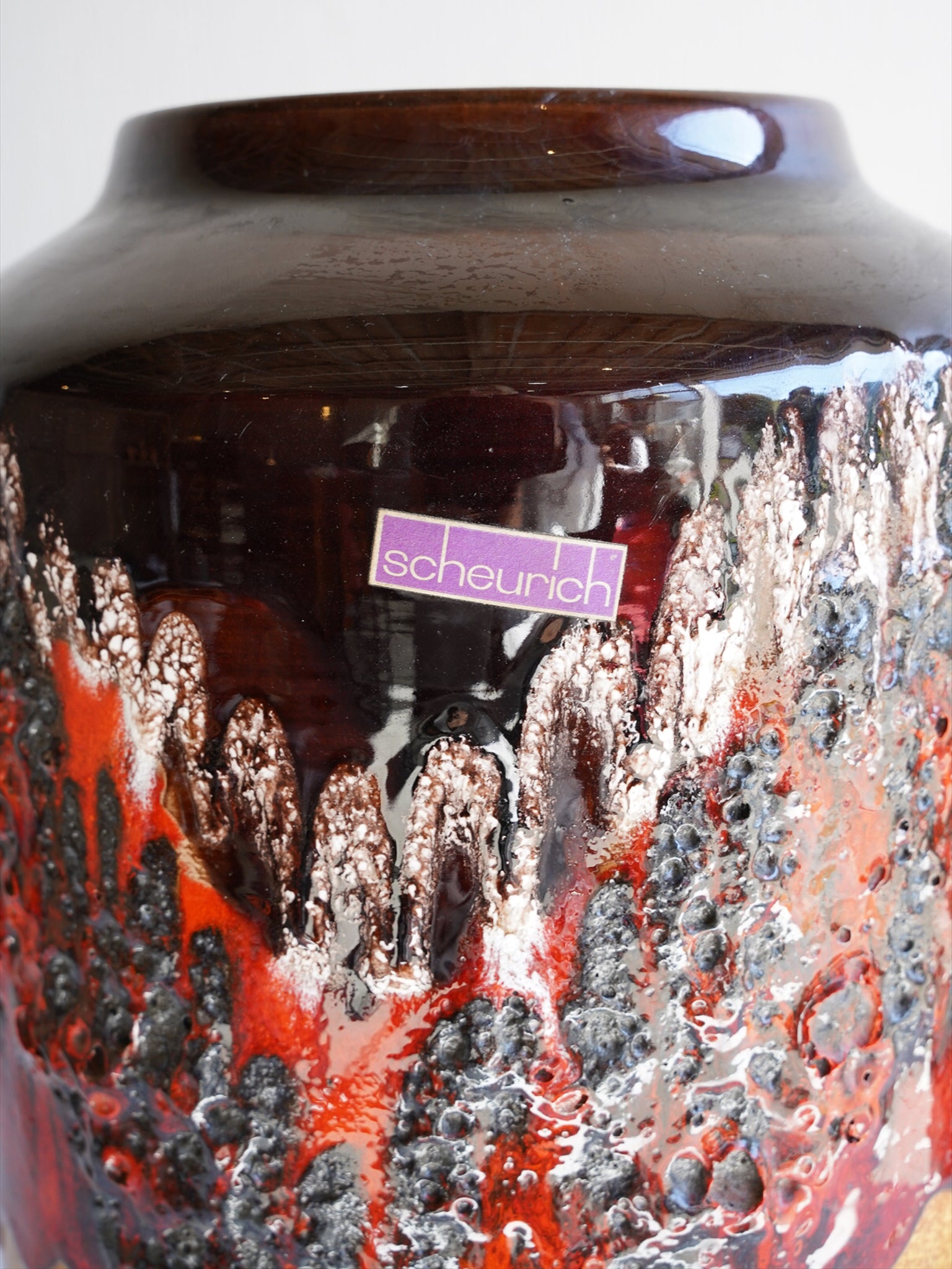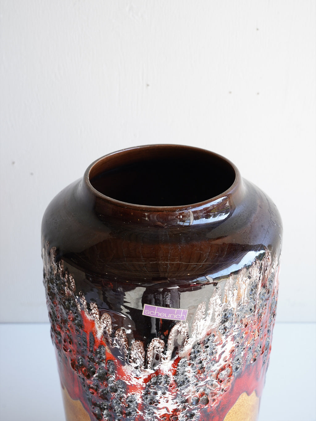 旧西ドイツ陶器の最大手Scheurich Keramikが、1970年代に製造した、Fat Lavaの要素を力強く持つヴィンテージ作品です。本体にはScheurichのオリジナルラベルが残され、型番は「517-50」として知られています。