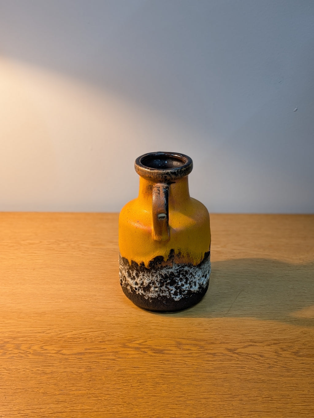 鮮やかなマスタードイエローと、荒々しく泡立った「Fat Lava」独特のテクスチャが美しいコントラストを生み出しています。