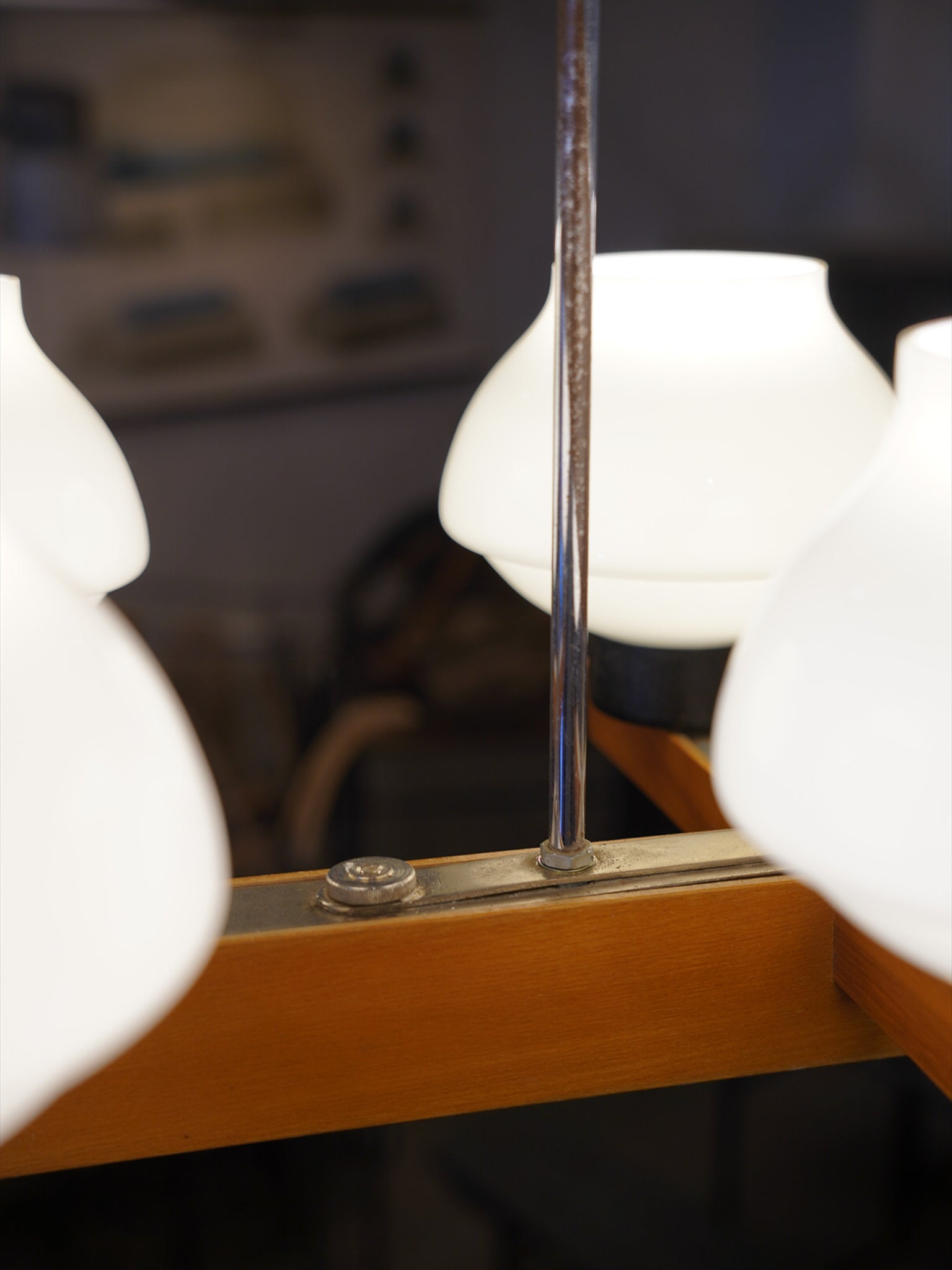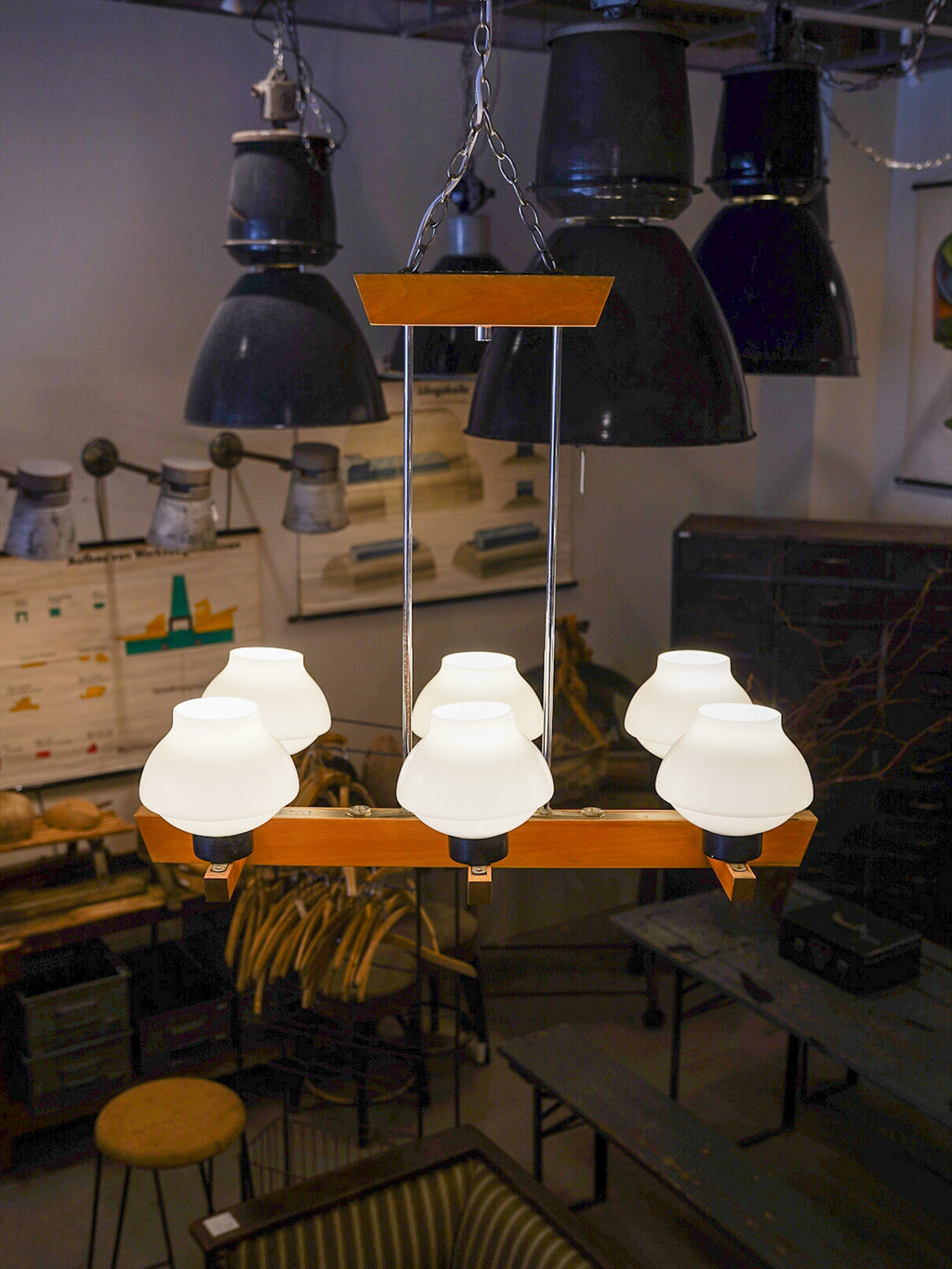 1960年代から1970年代にかけて旧チェコスロバキアで製造された、ミッドセンチュリーモダンの傑作、6灯式シャンデリア/ペンダントランプです。