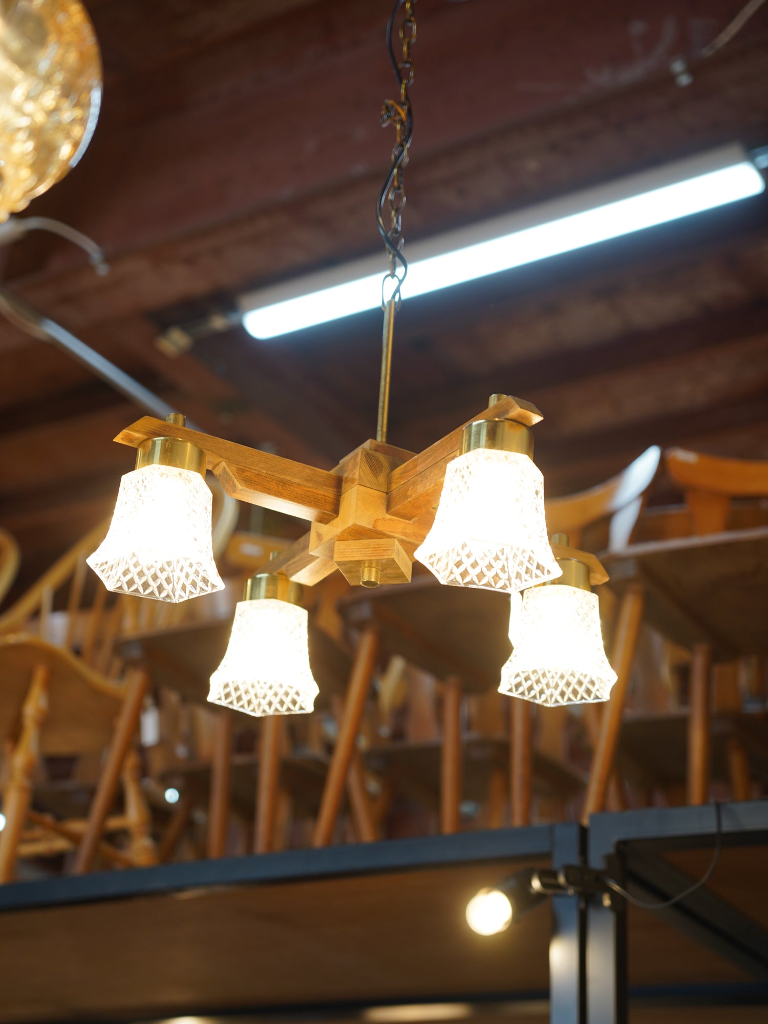 ミッドセンチュリーモダンを思わせるモダンで美しい4灯シャンデリア