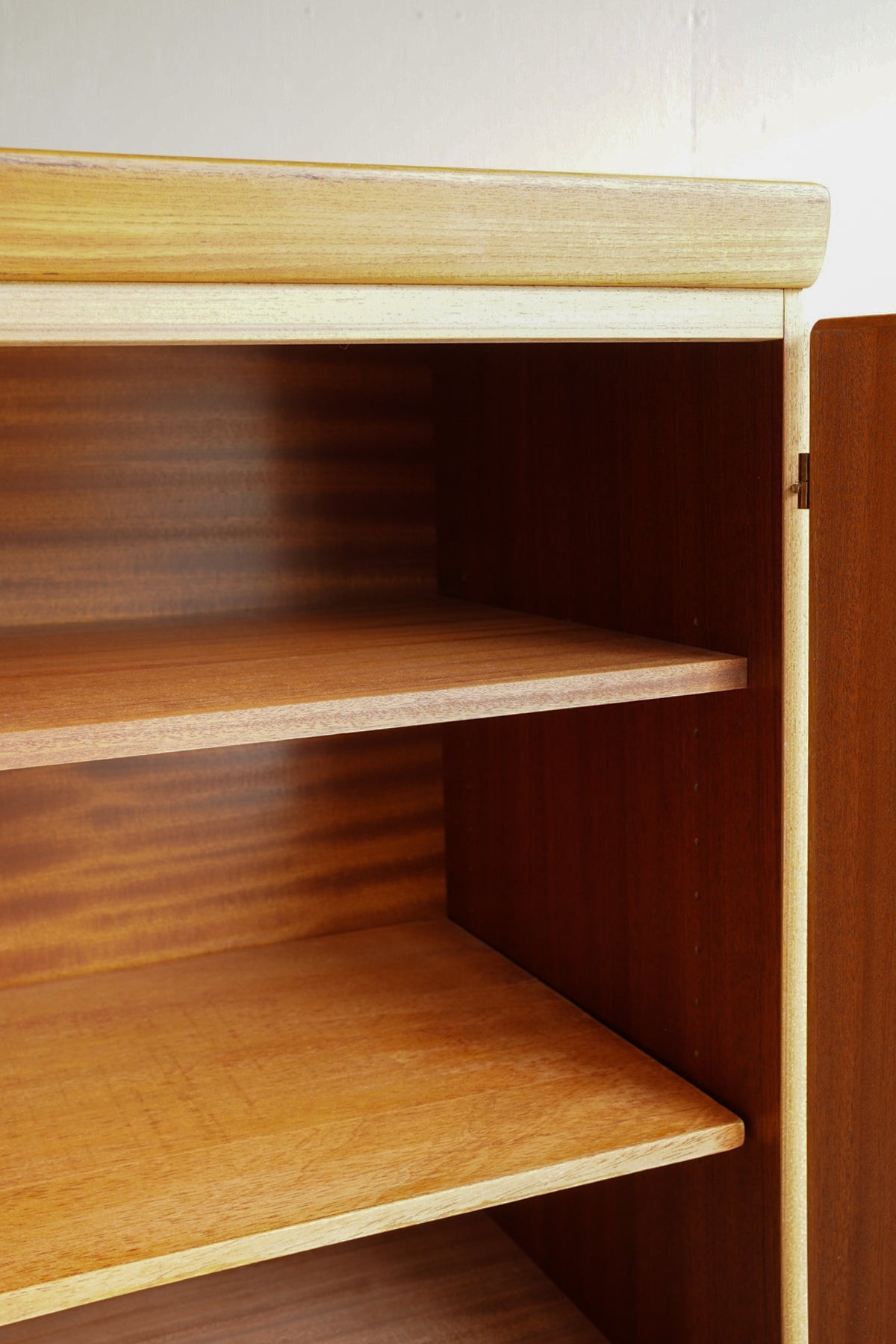 3つの扉に分かれた収納スペースは、食器や書籍、書類などをすっきりと整理するのに十分な広さがあります。天板も広いため、お気に入りのアートや小物を飾るなど、ディスプレイを楽しむことができます。
