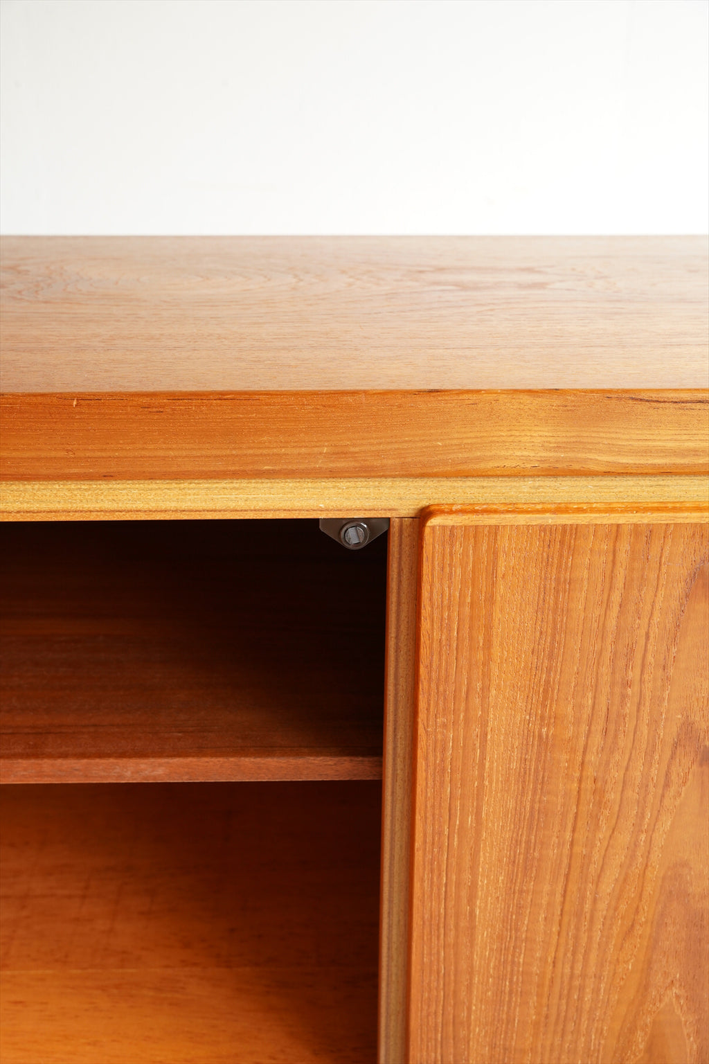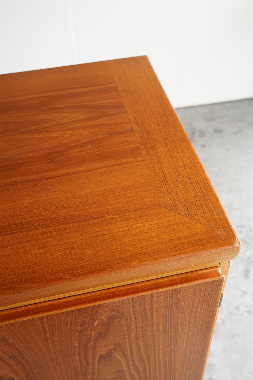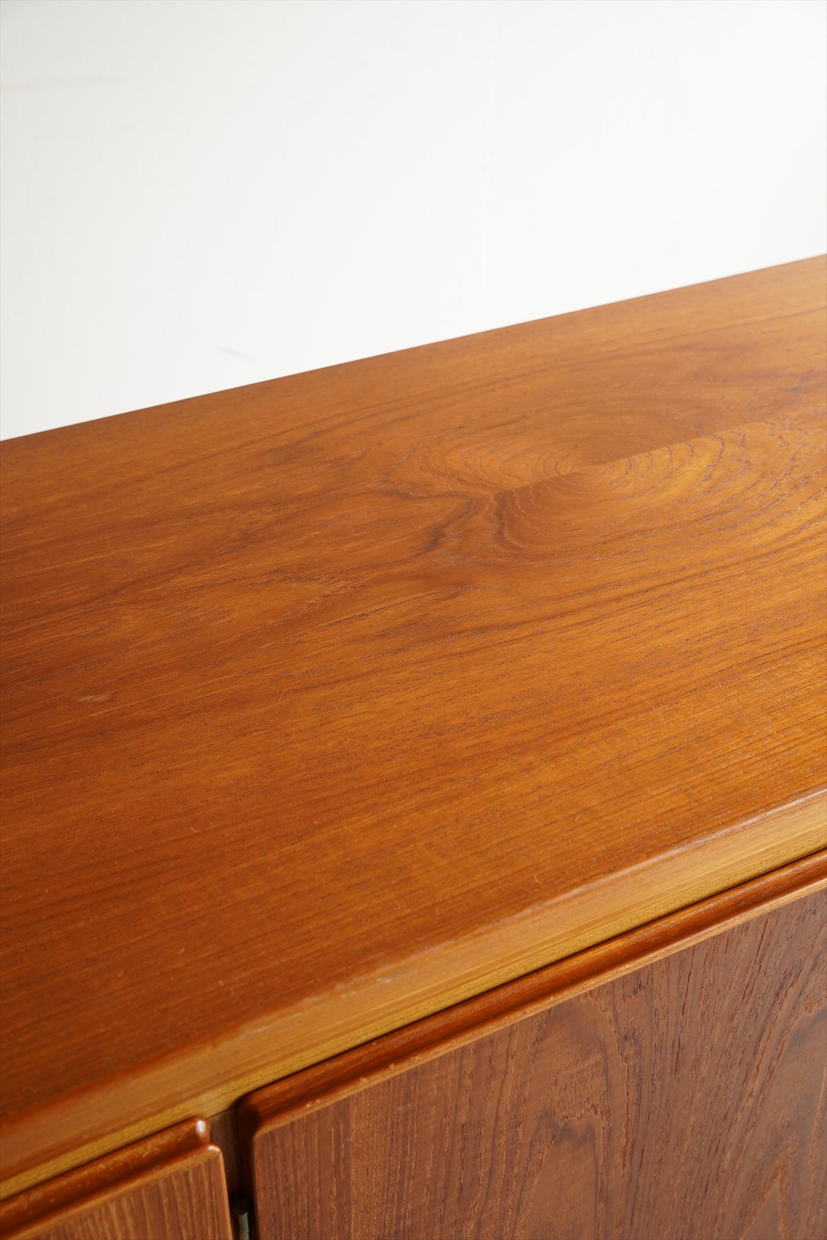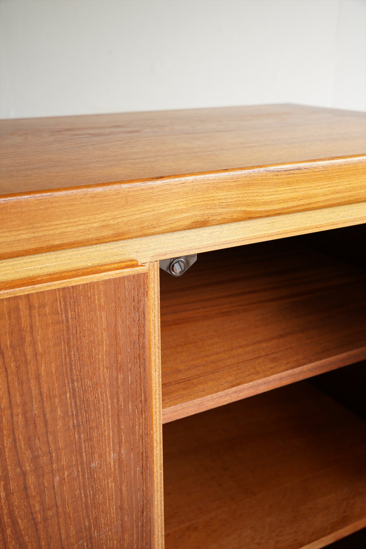 美しいチーク材の木目が際立つ、シンプルながらも洗練されたデザイン。飾り気のない直線的なフォルムは、どんなインテリアにも自然と馴染みます。