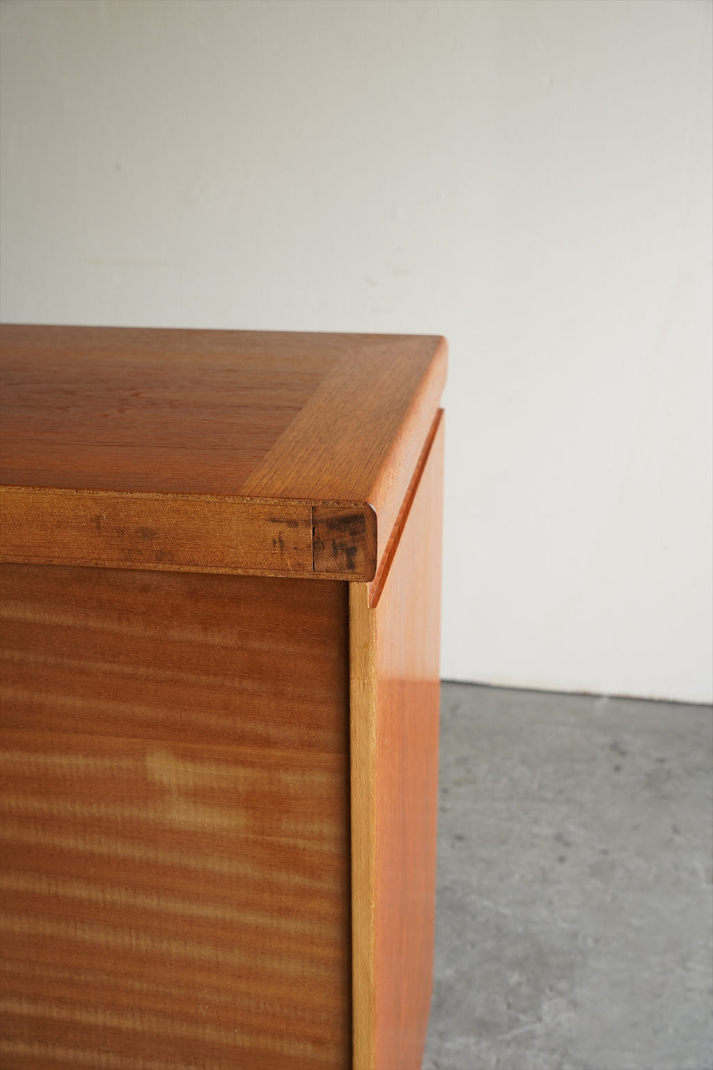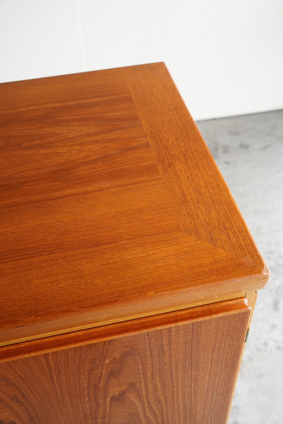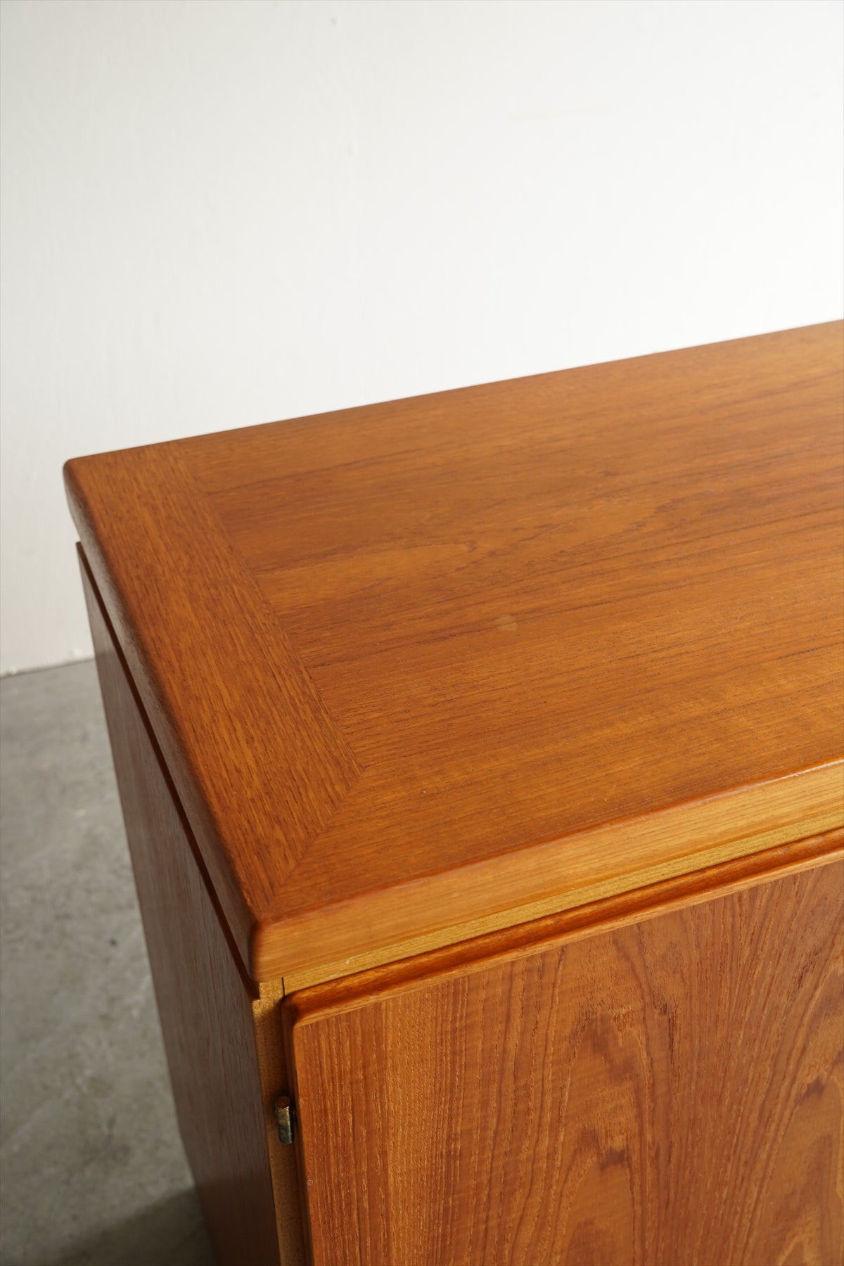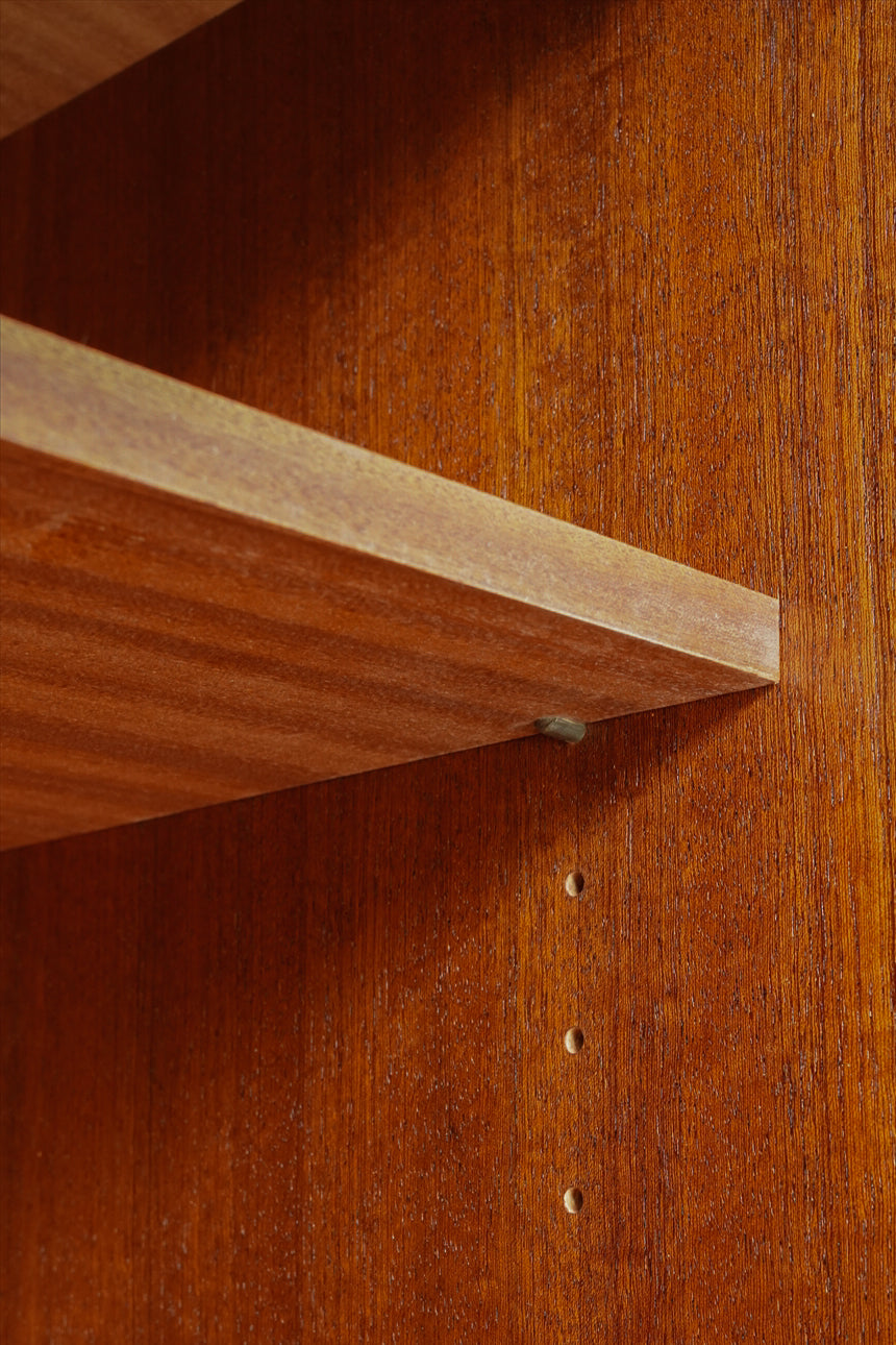 美しいチーク材の木目が際立つ、シンプルながらも洗練されたデザイン。飾り気のない直線的なフォルムは、どんなインテリアにも自然と馴染みます。