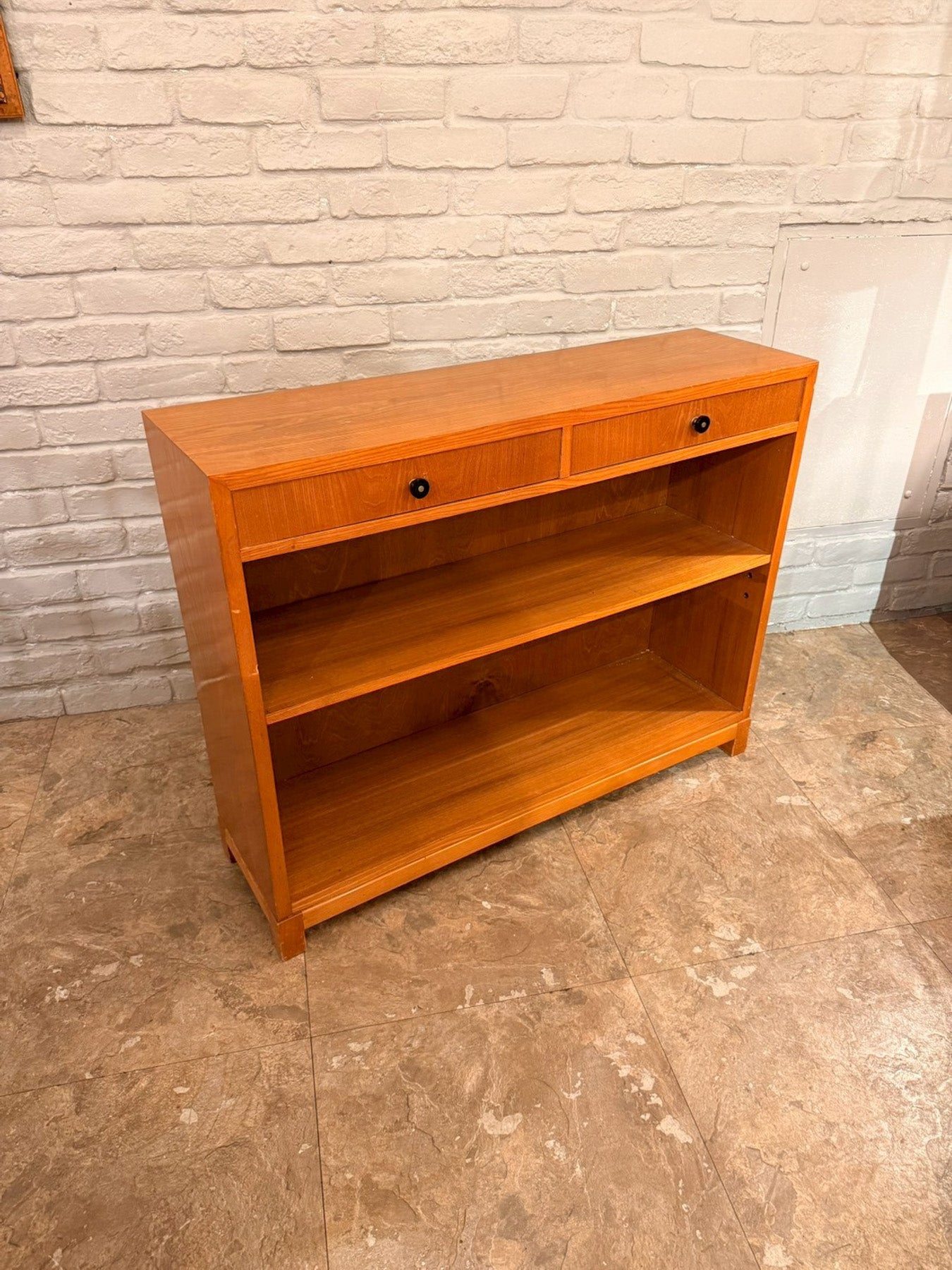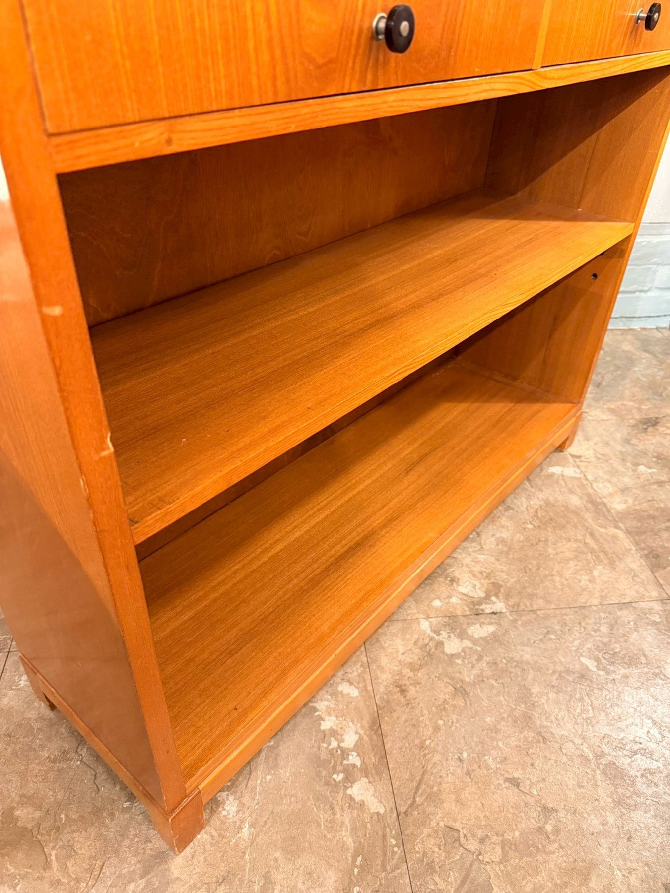 上部には引き出しを2杯備え、カトラリーや文具、小物類の整理に便利な仕様。下部はオープンシェルフになっており、書籍や器、バスケットなどをディスプレイしながら収納できます。棚板はゆとりのある高さで、実用性も兼ね備えています。