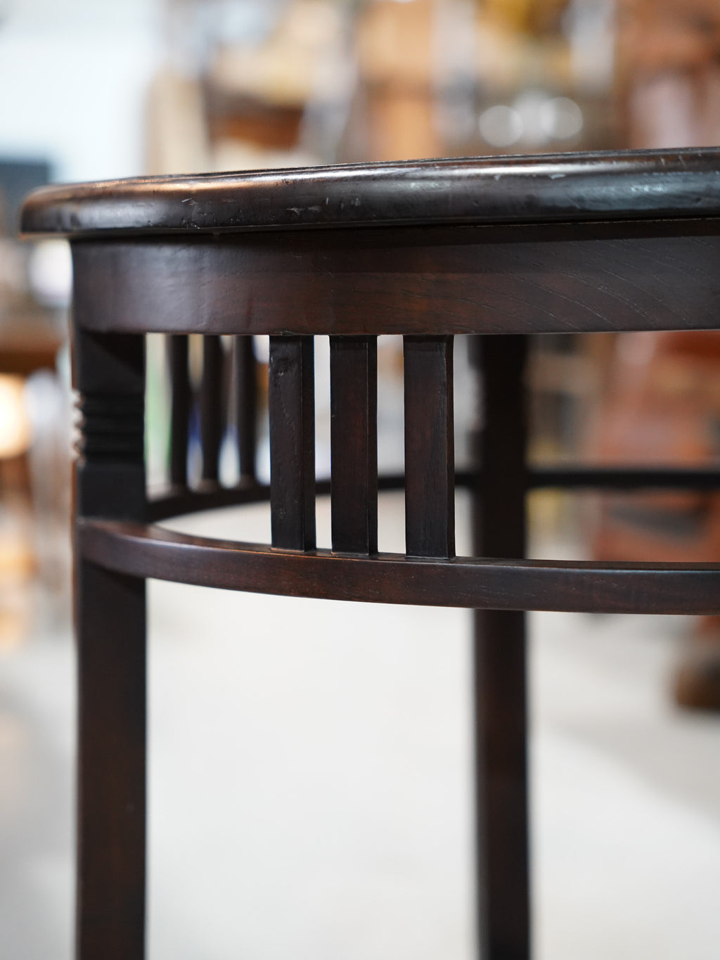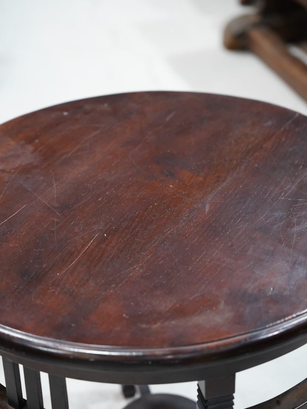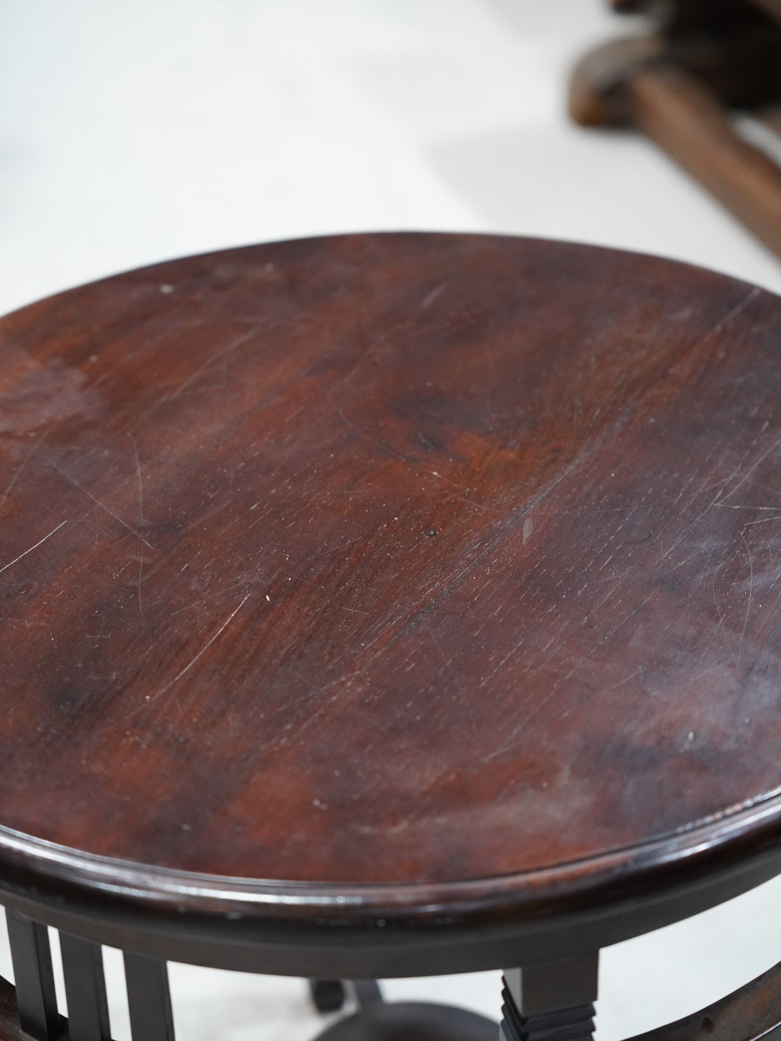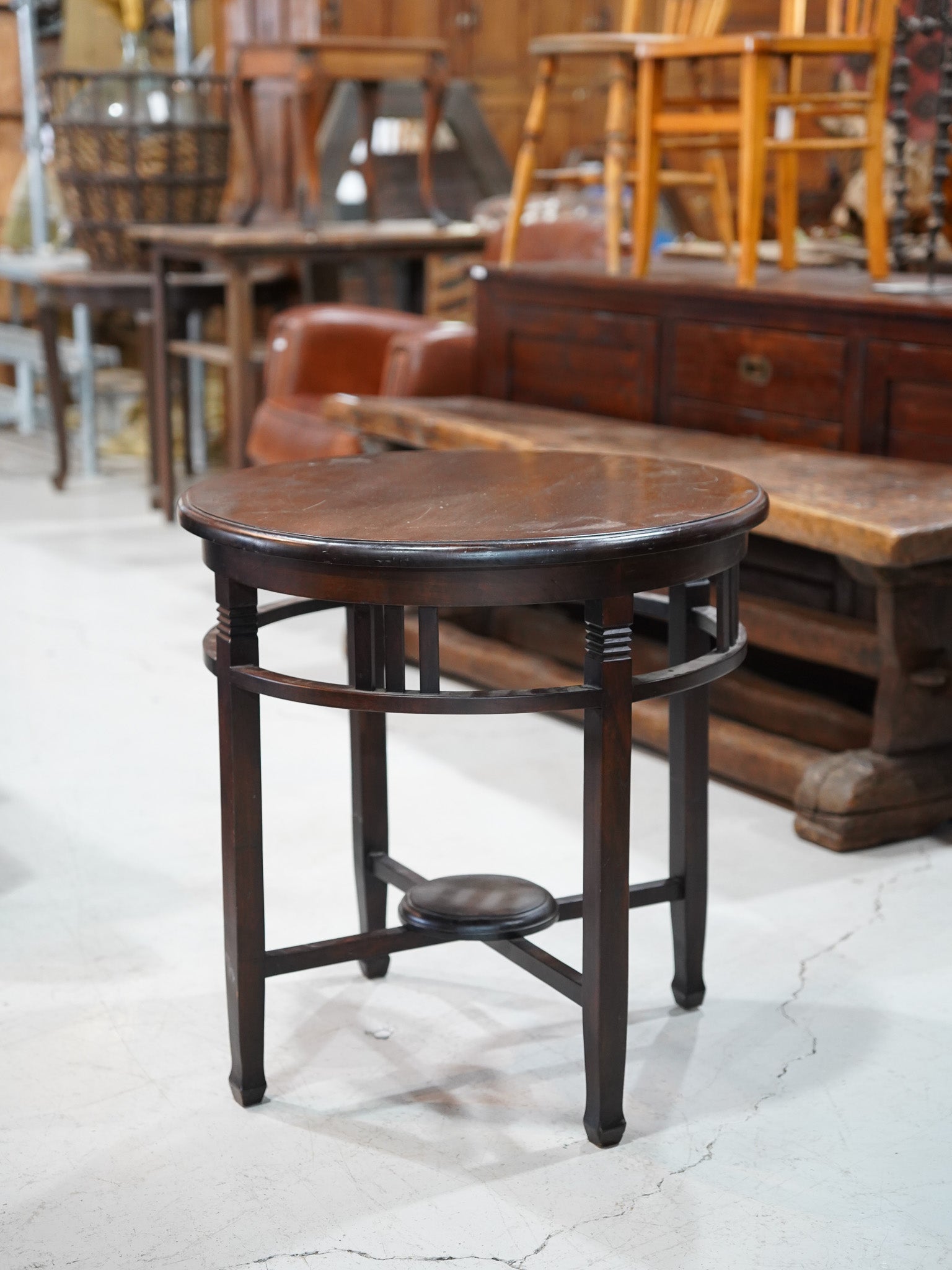 ダークブラウンの木肌が美しい円形のサイドテーブル