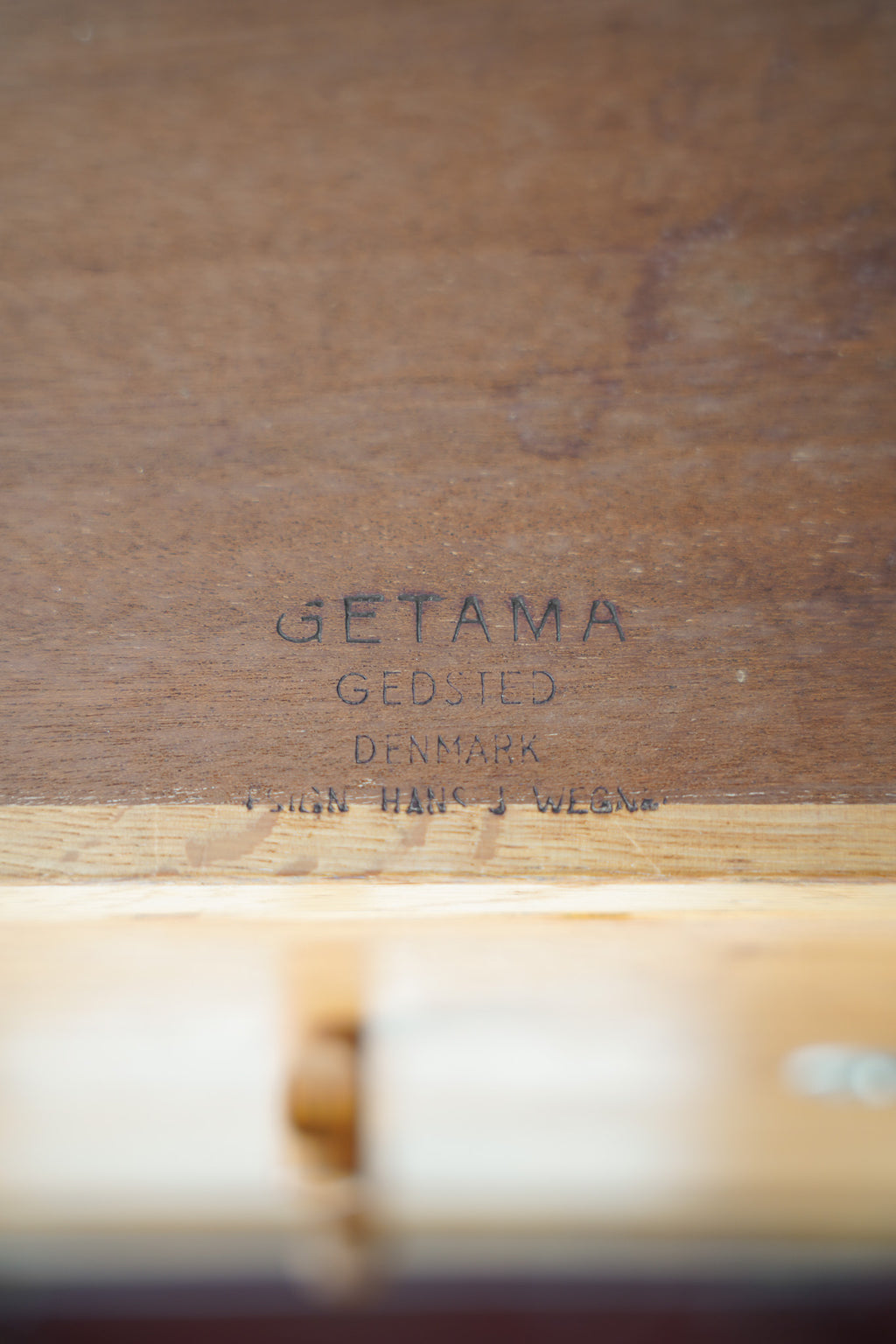 引き出しの裏面には「GETAMA / GEDSTED / DENMARK」の刻印がしっかりと確認でき、正真正銘のデンマーク製であることがわかります。。