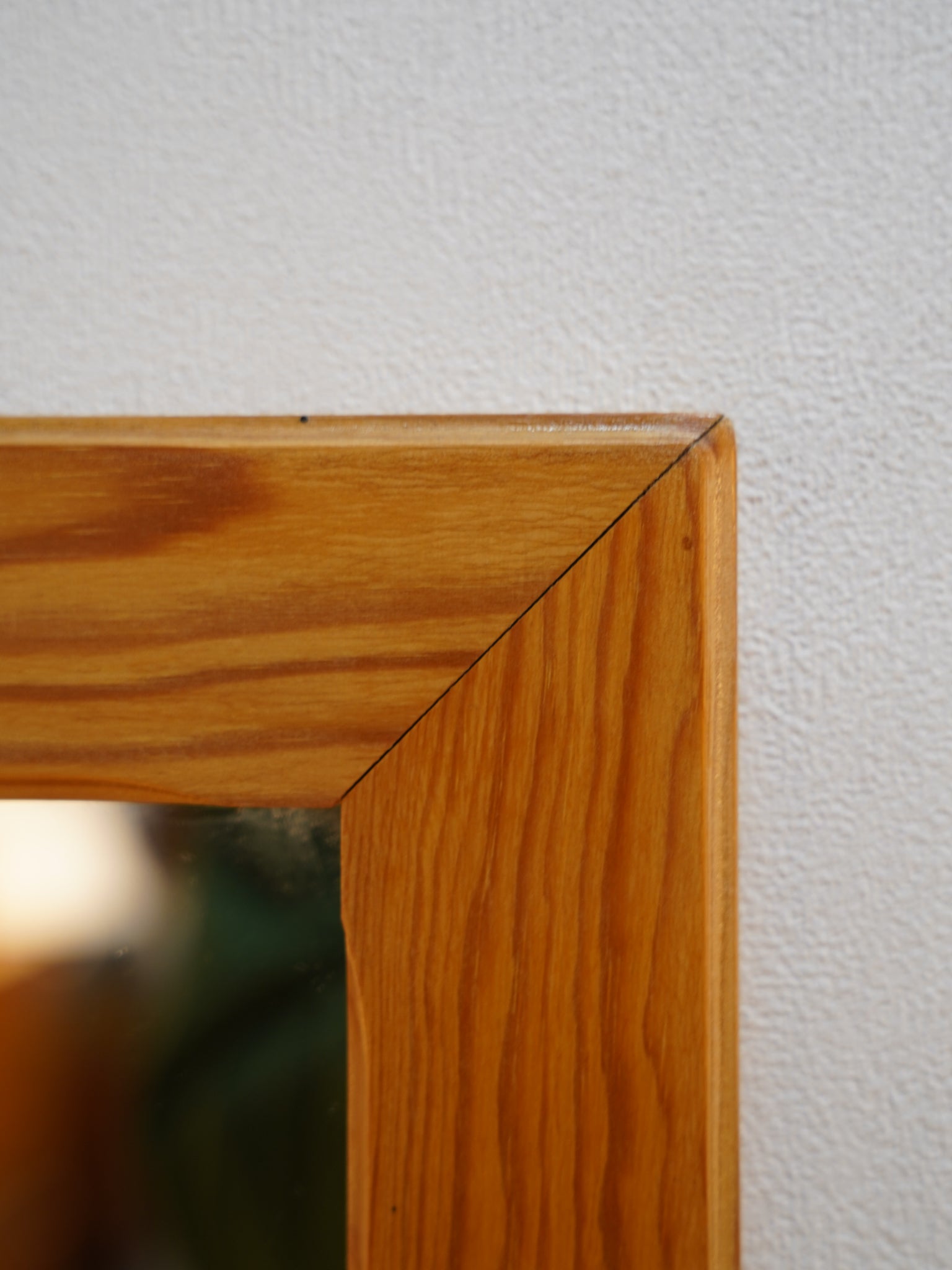 木目が美しく際立つパインウッドのフレームが、素朴で温かみのある表情を見せるウォールミラーです。