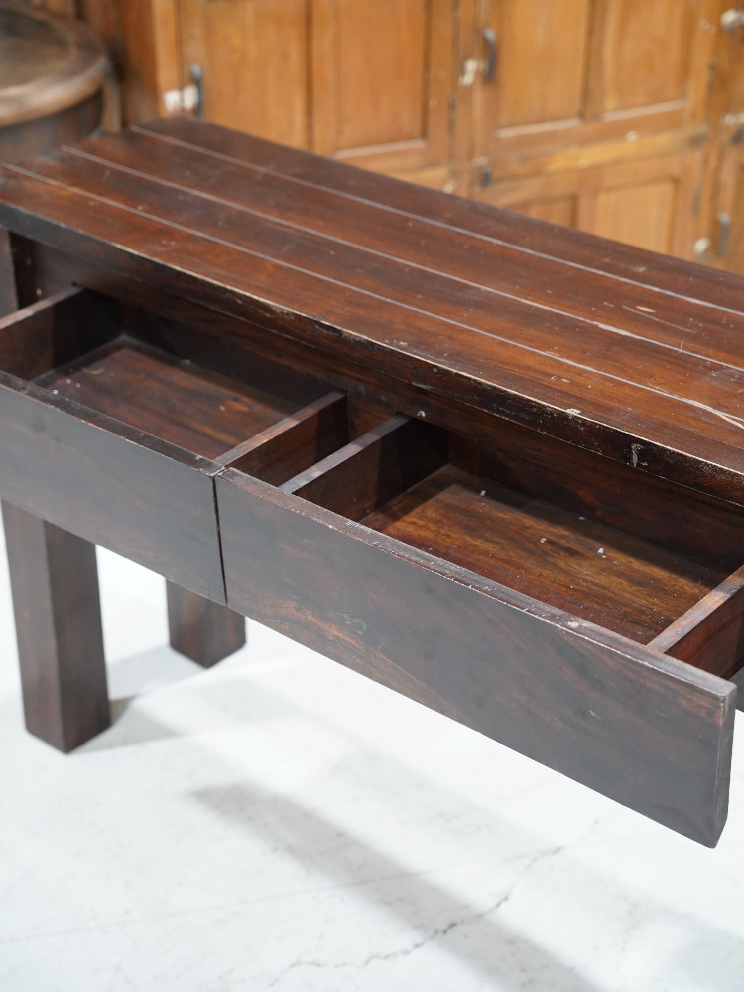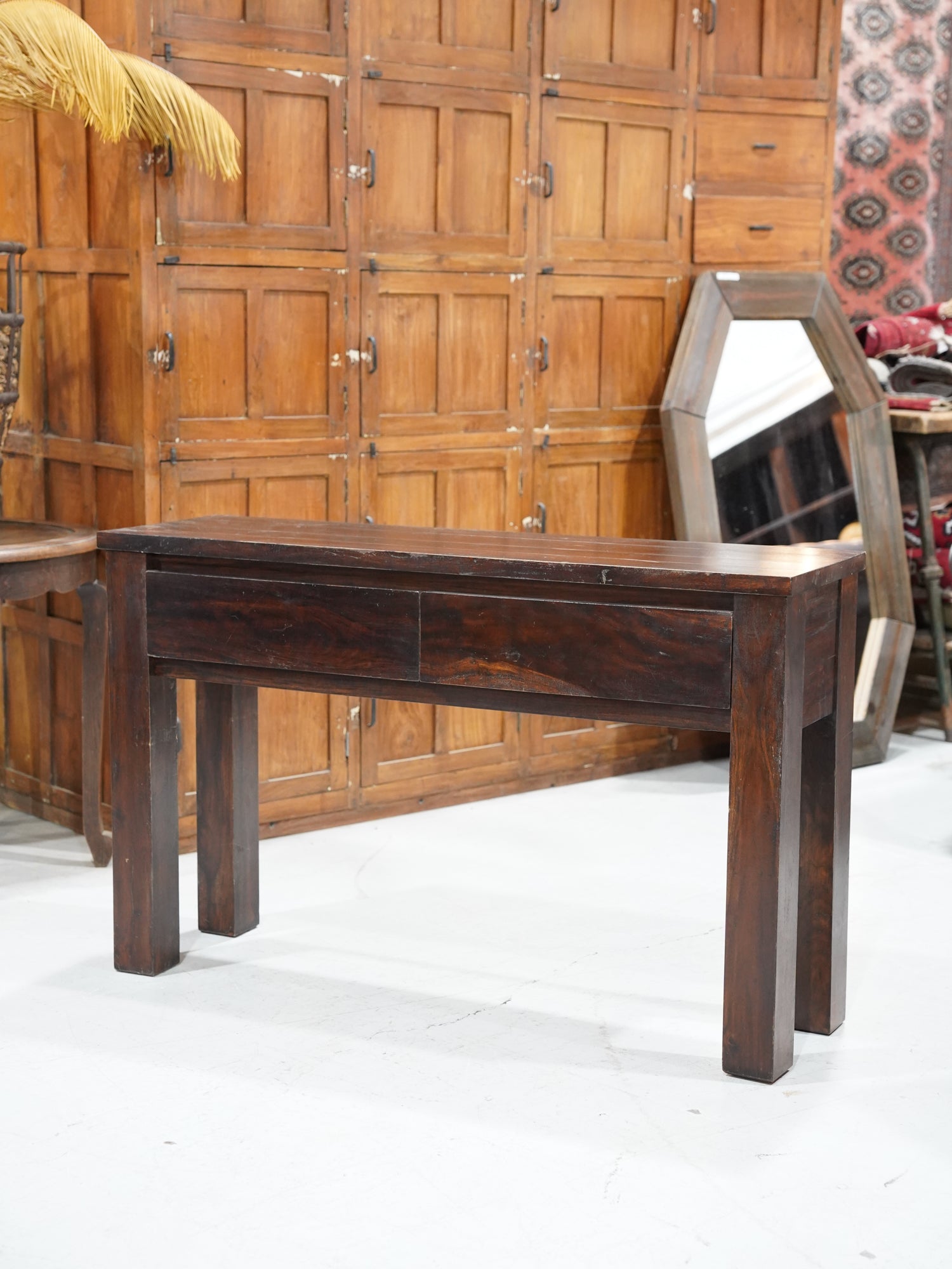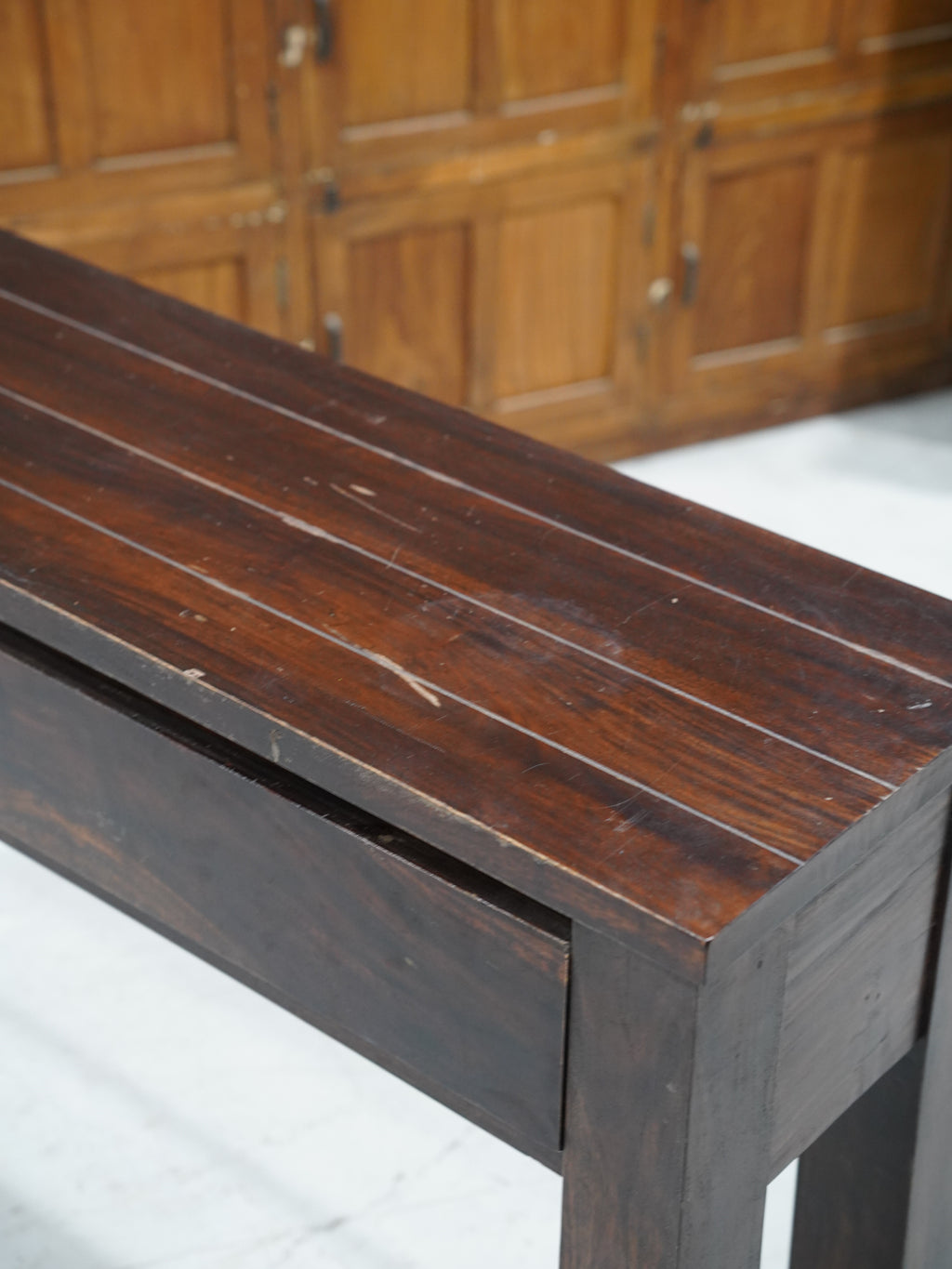 どっしりとした存在感を放つ、重厚なウッドコンソールテーブル