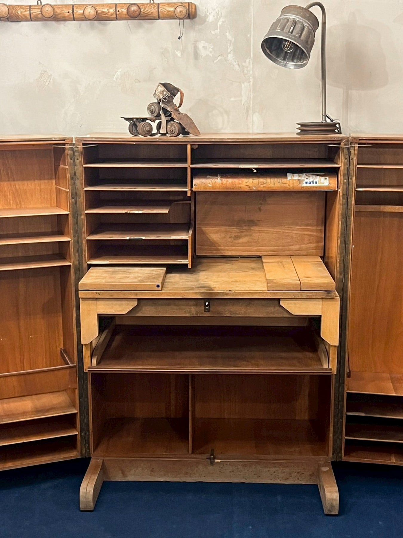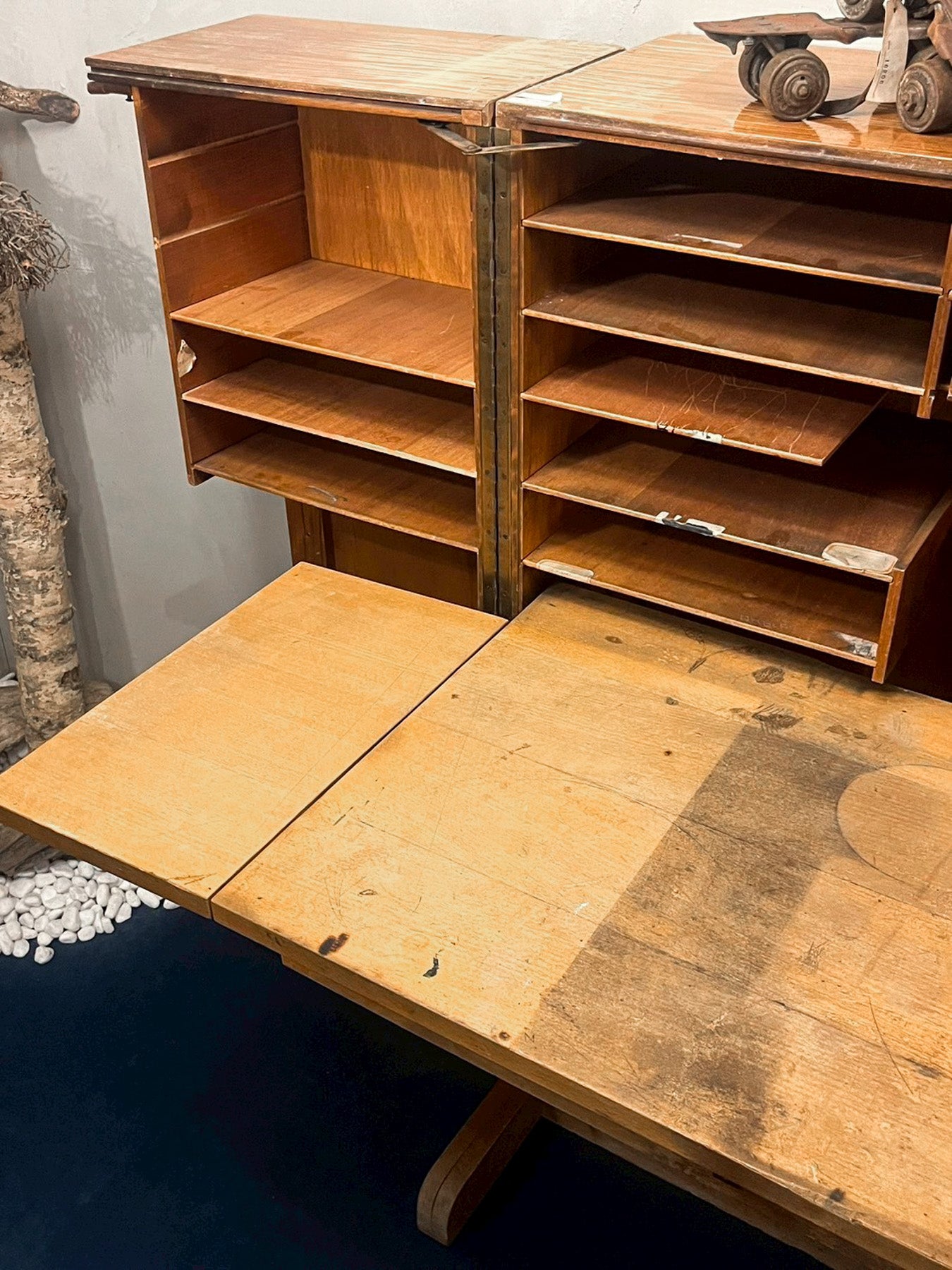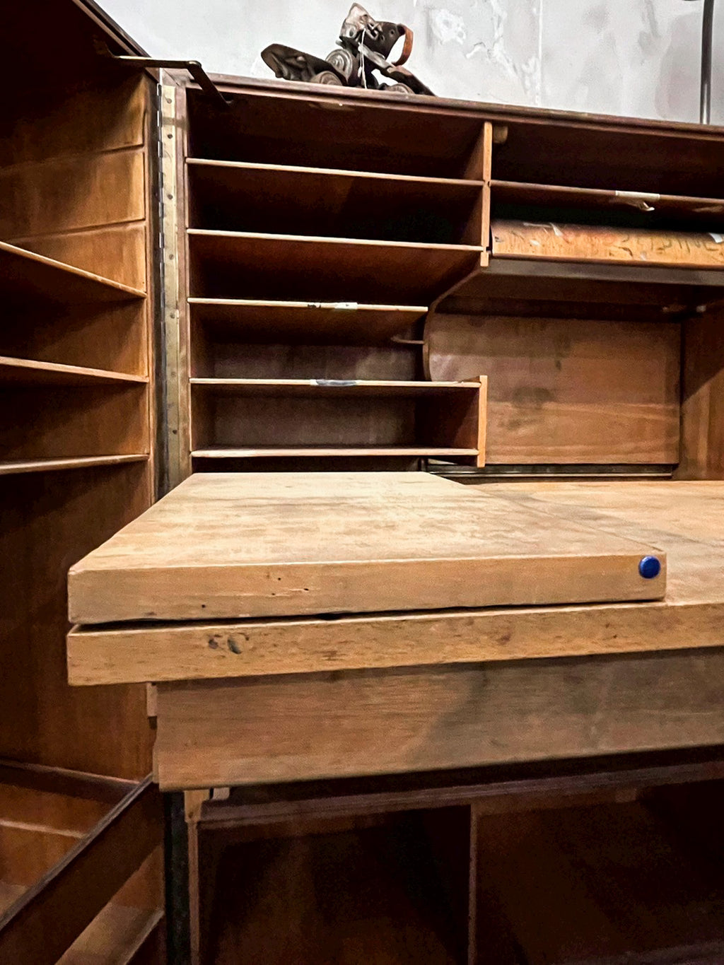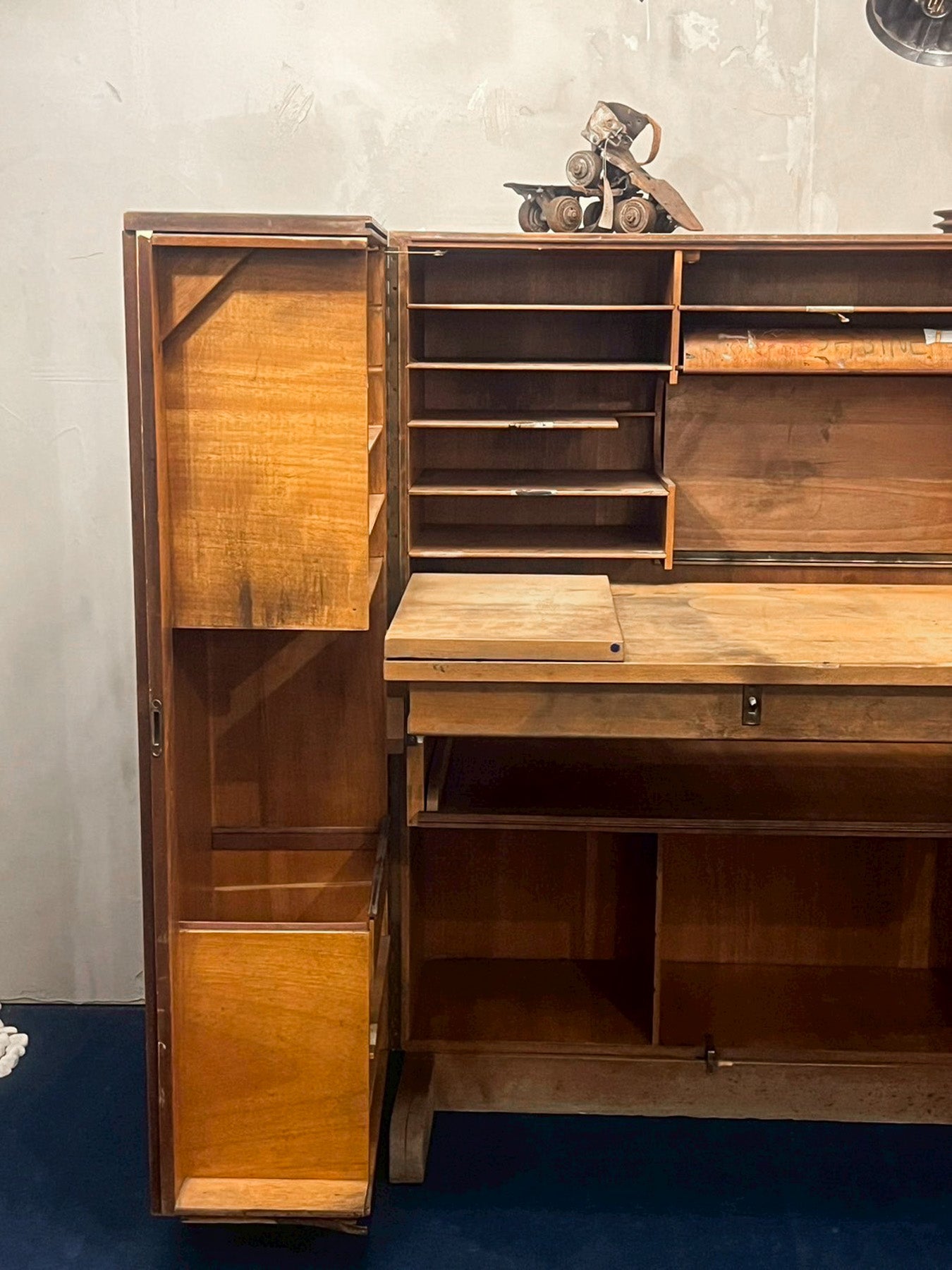推定1930年〜1940年代のフランス製で、開くと無数の引き出しと棚が現れます。