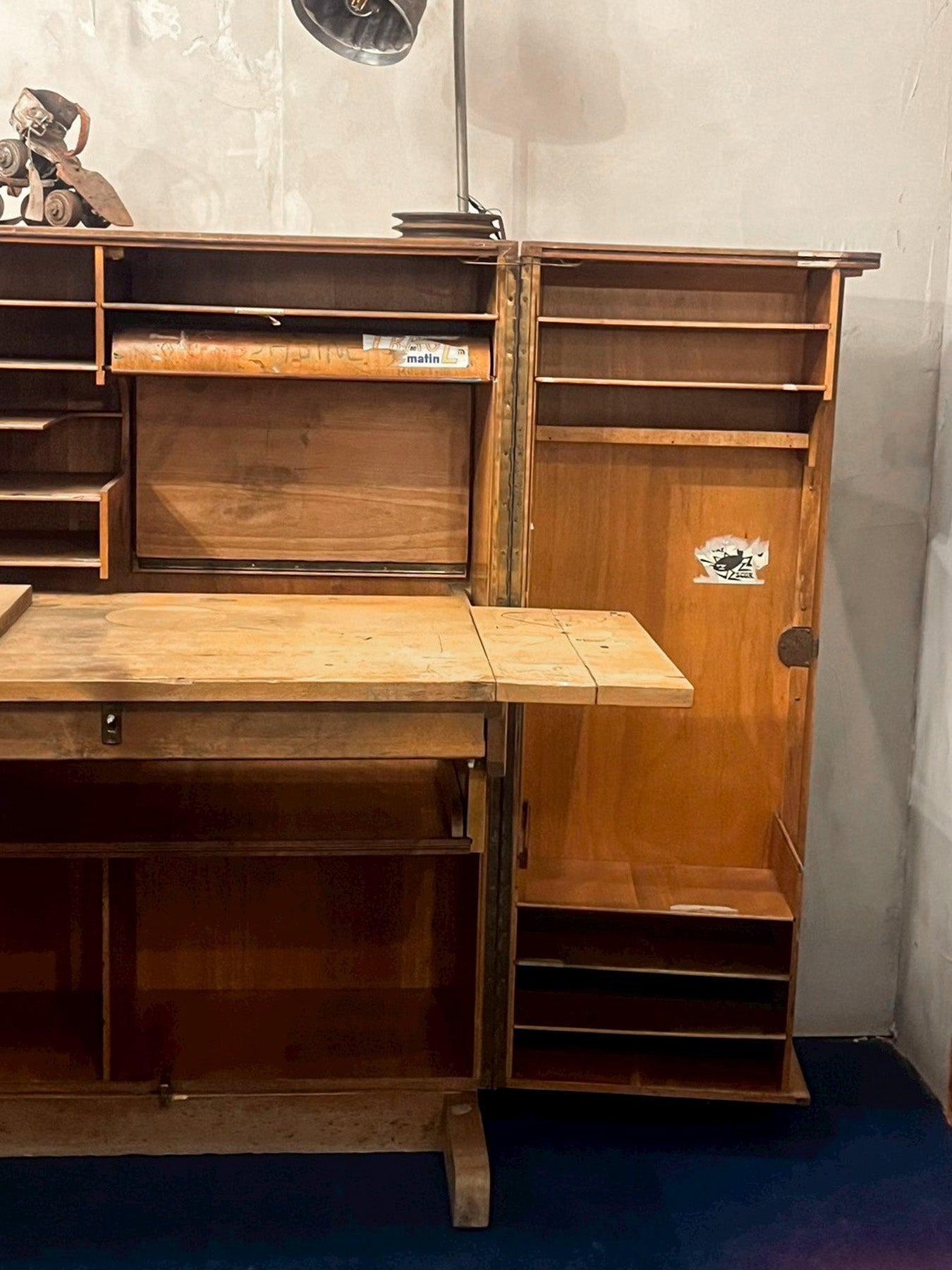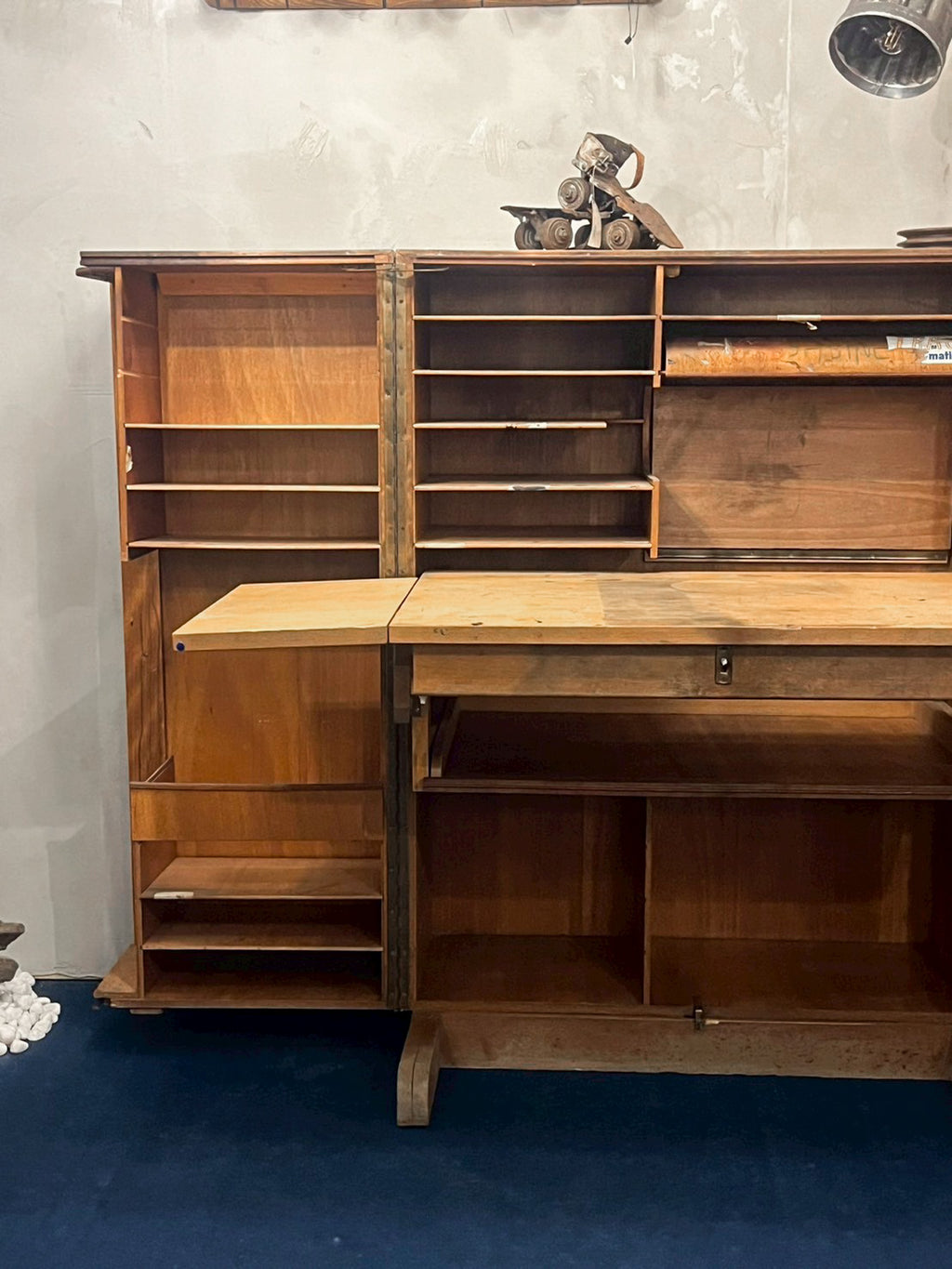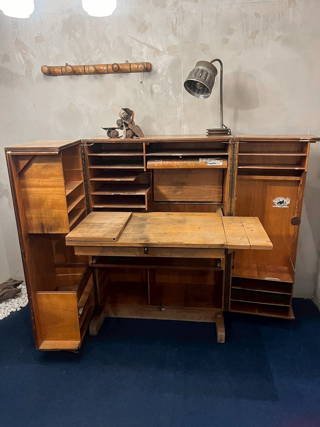 推定1930年〜1940年代のフランス製で、開くと無数の引き出しと棚が現れます。