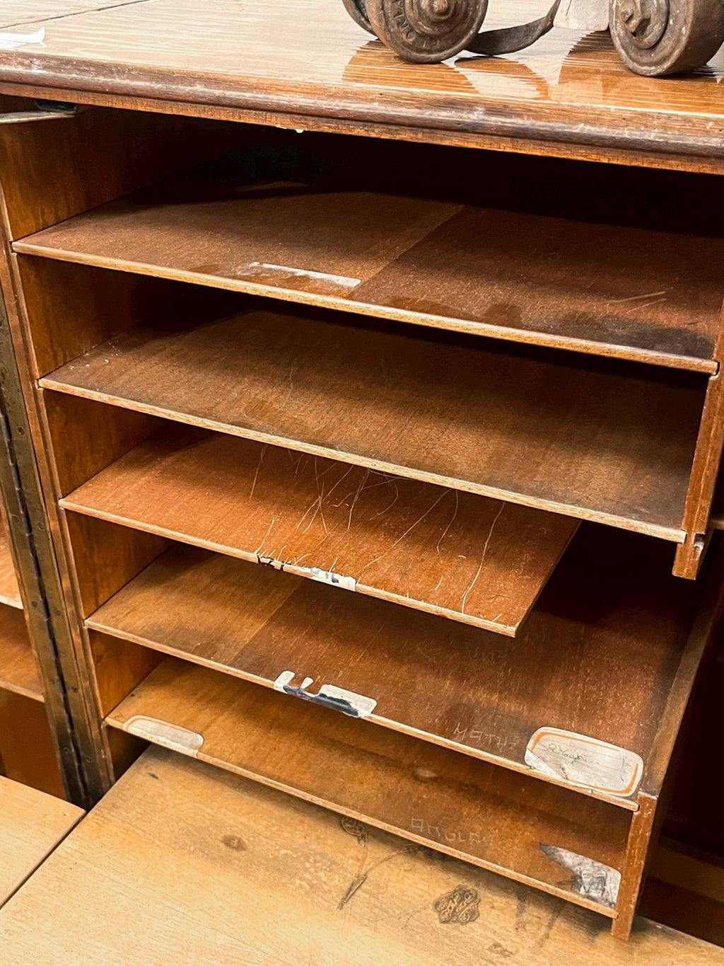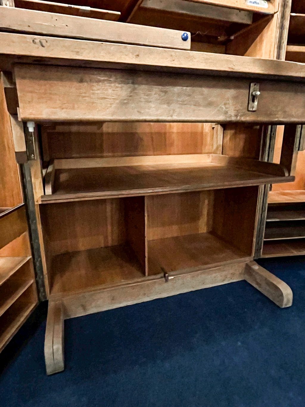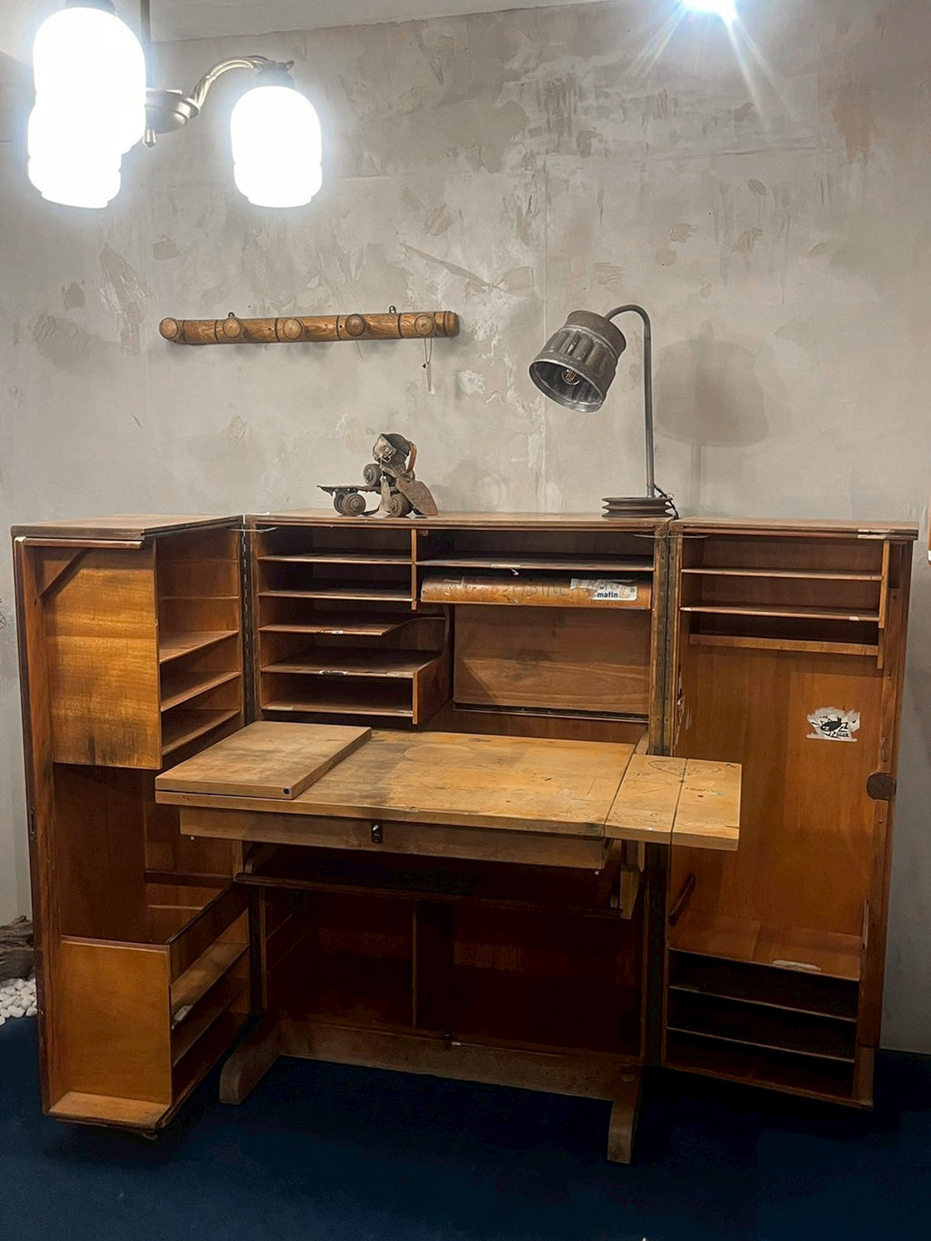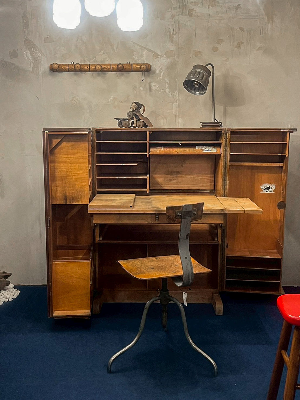 推定1930年〜1940年代のフランス製で、開くと無数の引き出しと棚が現れます。