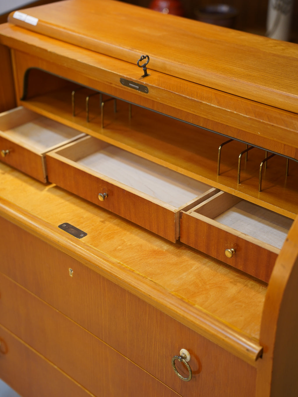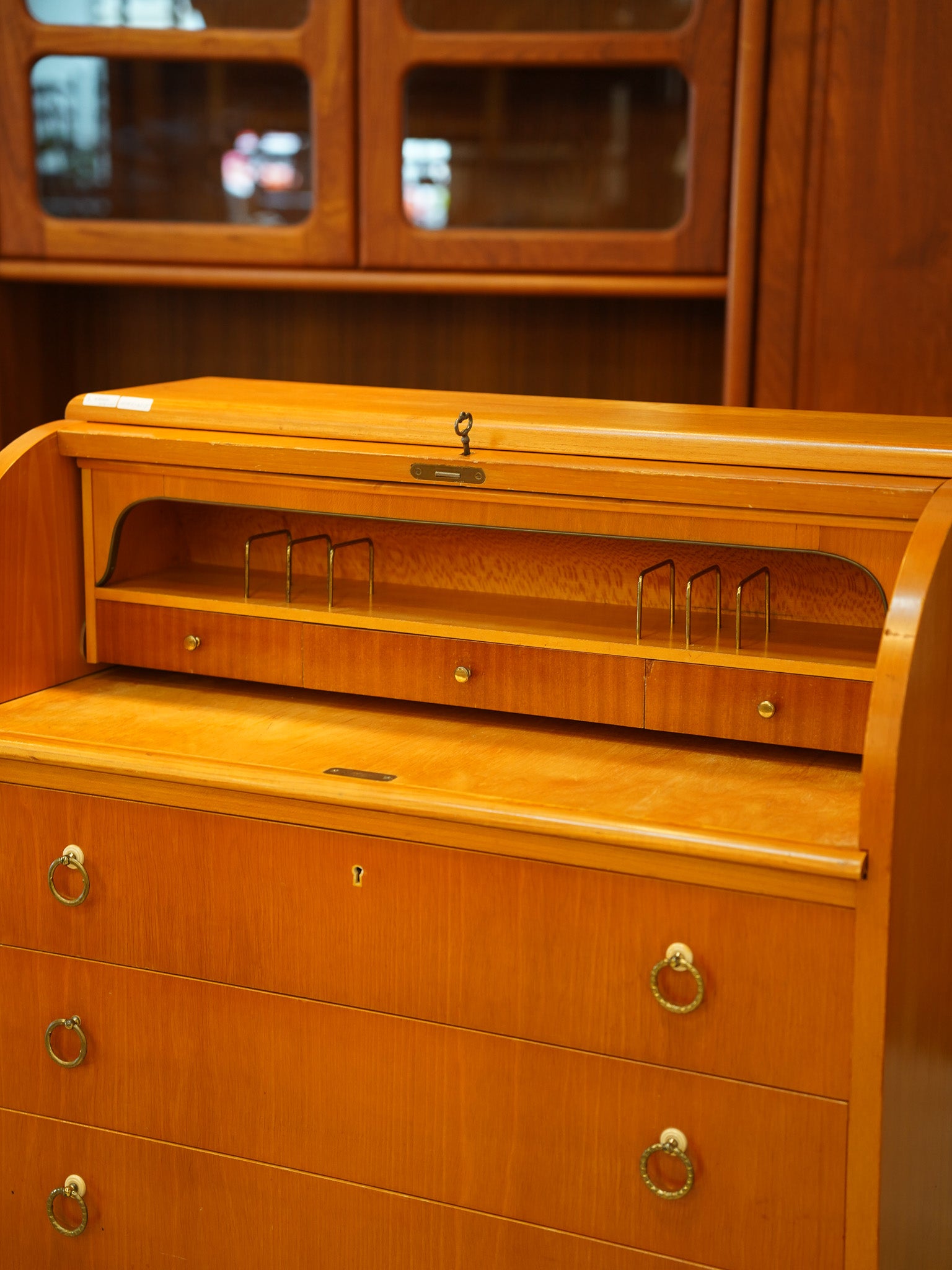 チークウッドロールトップビューロー