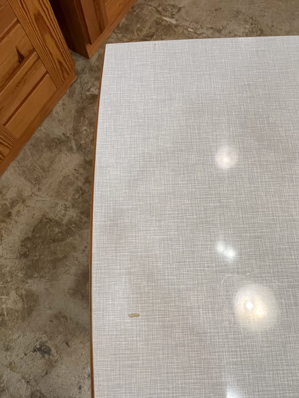ホワイトの天板は清潔感があり、食卓をモダンで軽やかに演出します。また、傷や汚れに強く、日々のメンテナンスが容易なのが実用的な魅力です
