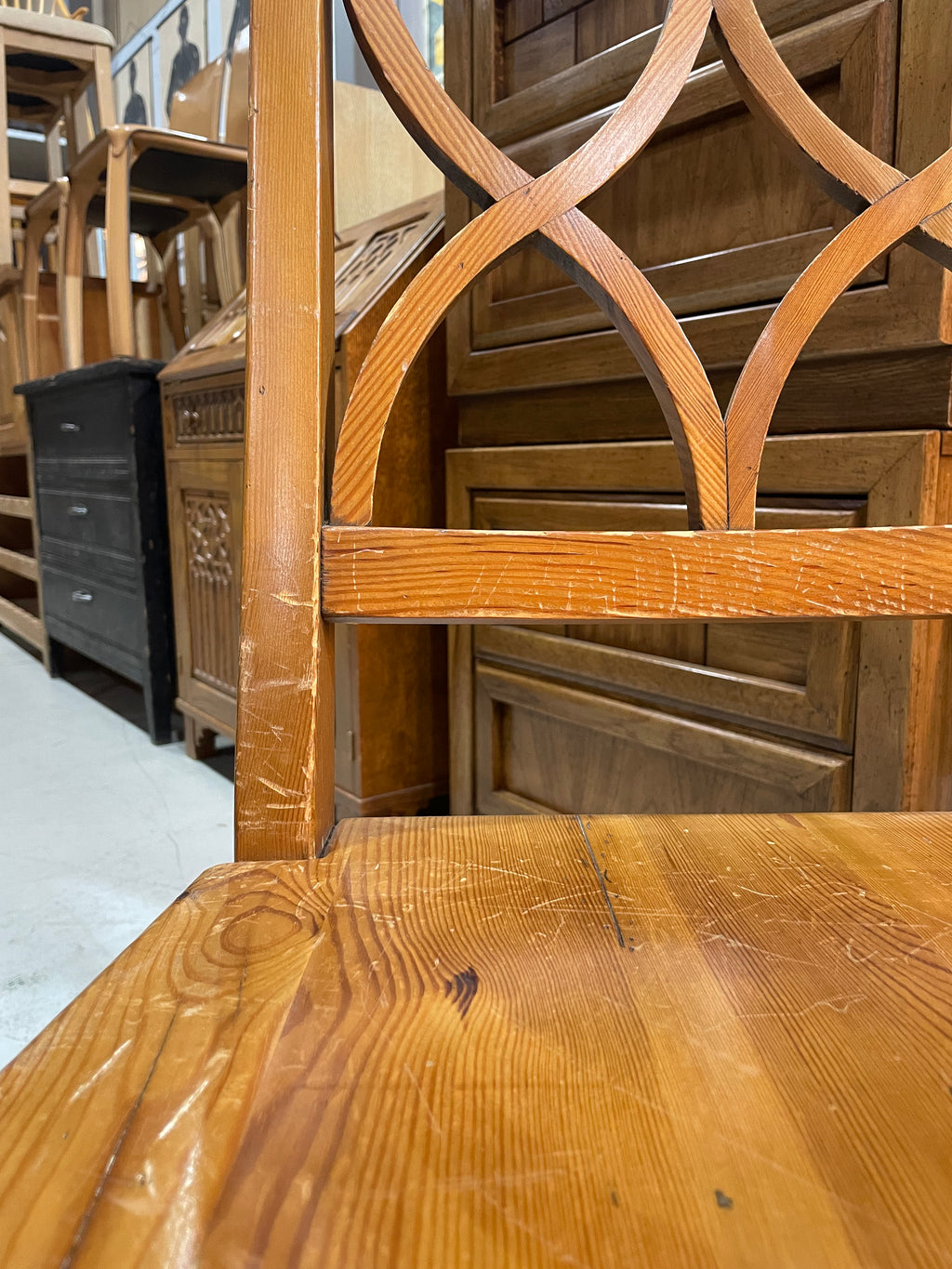 落ち着いた木肌の色味と、細部にまでこだわった意匠は、置くだけで空間に格調高いアンティークの雰囲気を醸し出します。ダイニングテーブルでのご使用はもちろん、書斎やリビングで花台や飾り椅子としても素敵です。