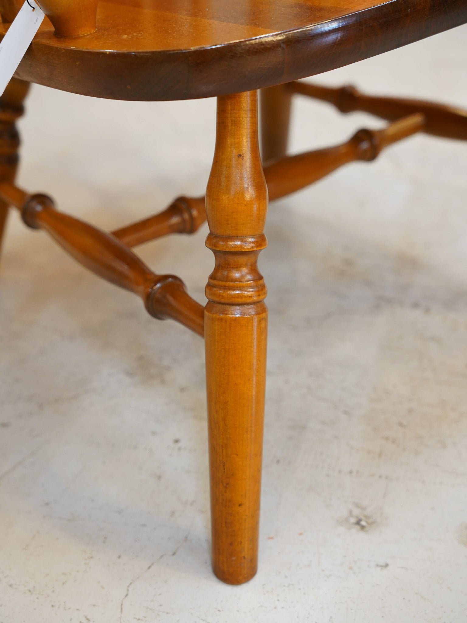 背もたれからアーム、そして脚に至るまでろくろの装飾が丁寧に施され、カントリーハウスのような温かい趣を醸し出しています。