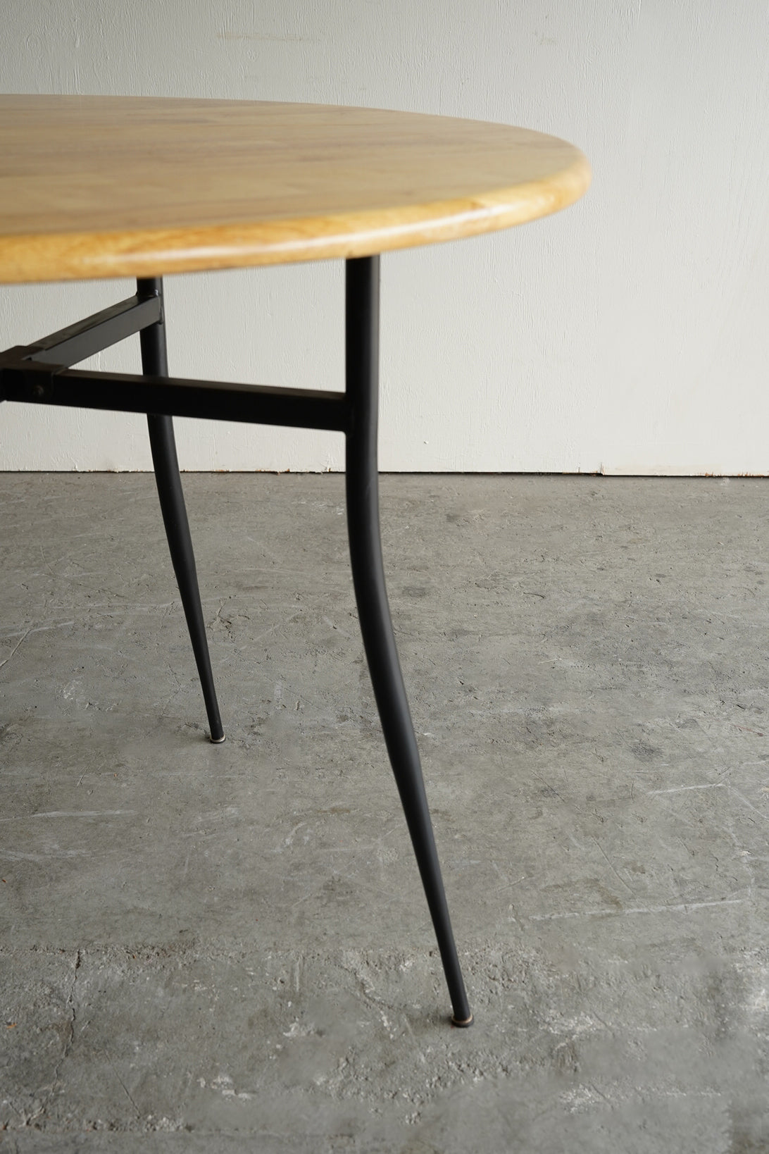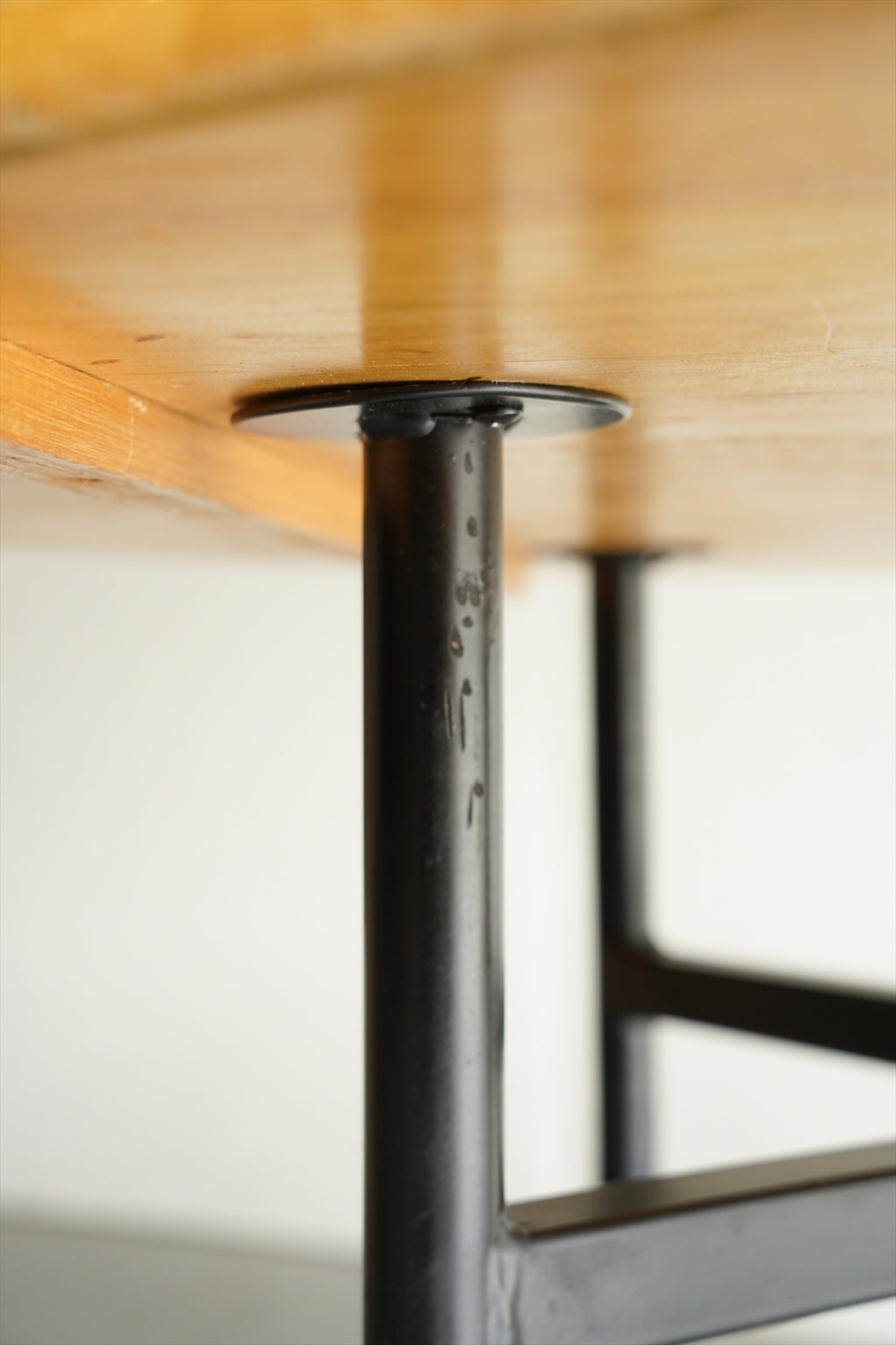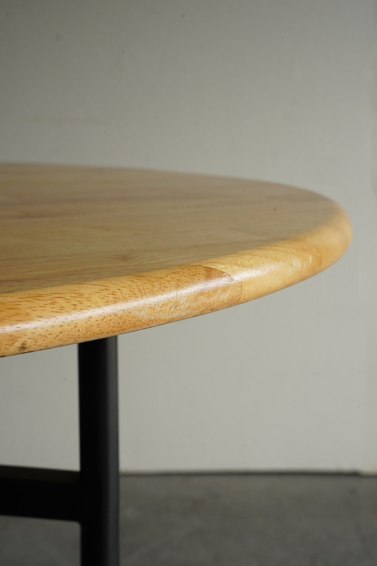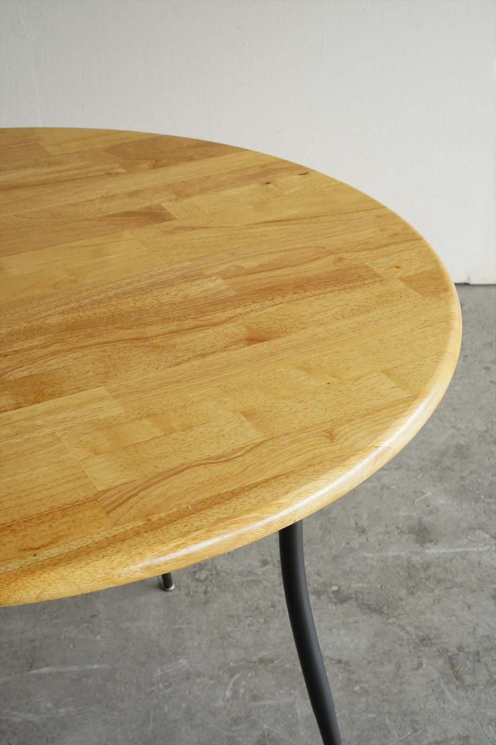あたたかな色合いの木製天板と、すっきりとしたブラックスチールの脚が美しいコントラストを描くダイニングテーブルです。