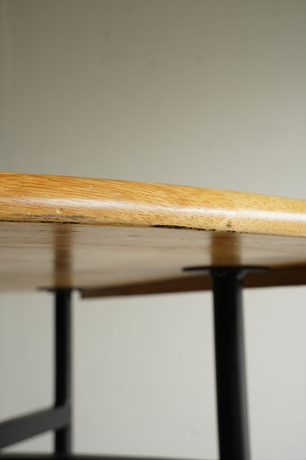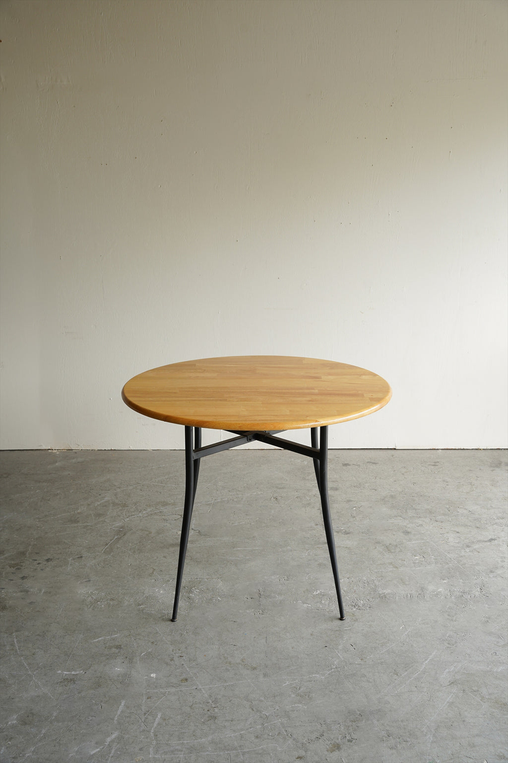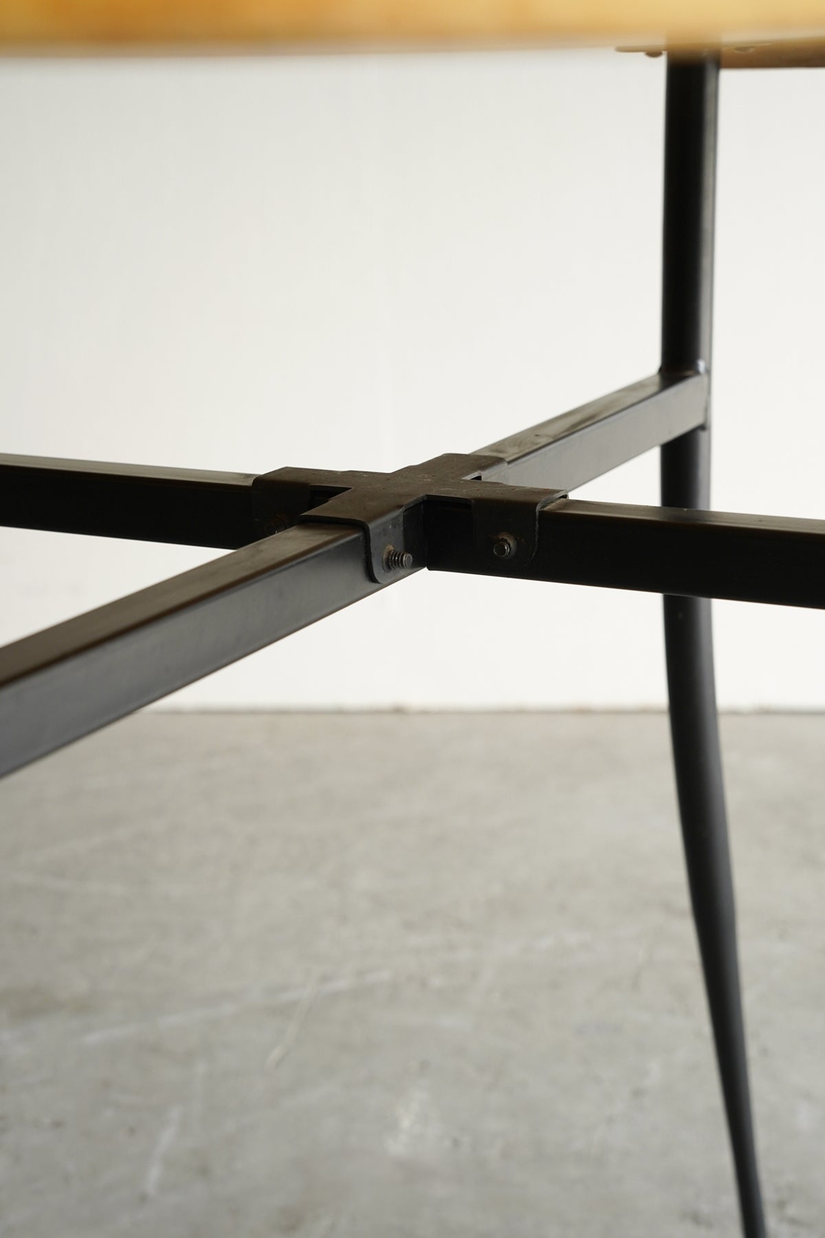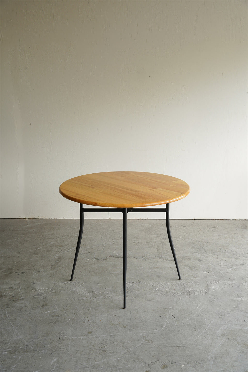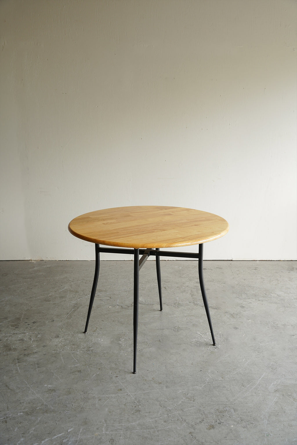 あたたかな色合いの木製天板と、すっきりとしたブラックスチールの脚が美しいコントラストを描くダイニングテーブルです。