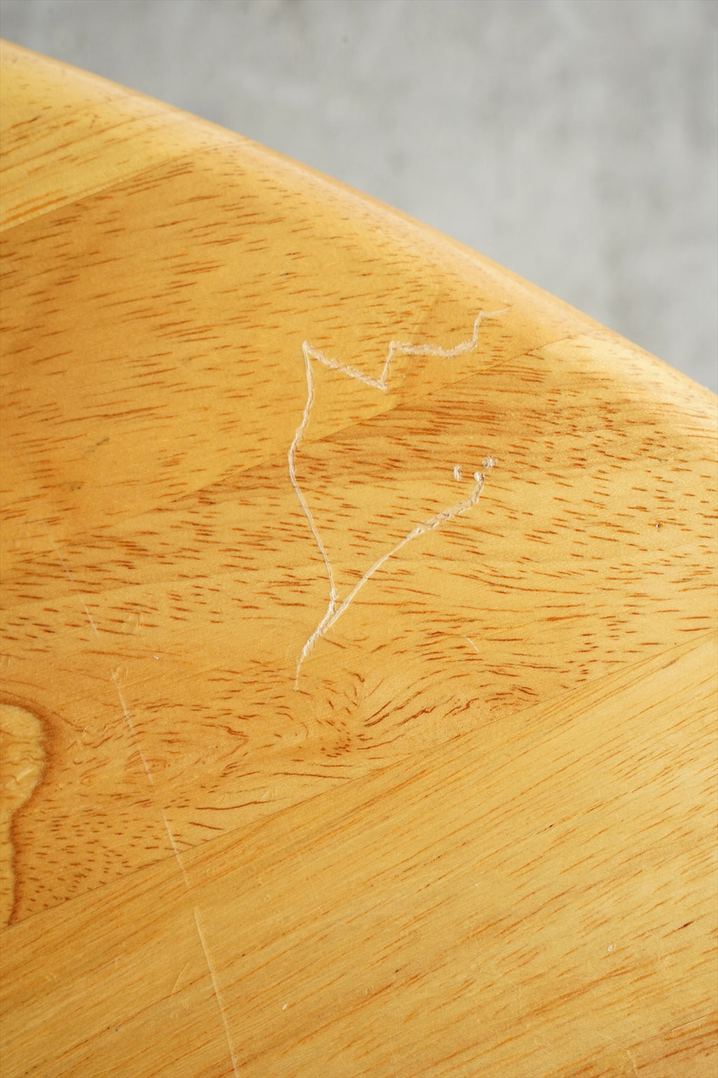 天板に使われているのは、表情豊かな木目が魅力のブナ材。丁寧に磨き上げられた滑らかな手触りと、時を経るごとに増していく風合いが、日々の暮らしに心地よい安らぎをもたらします。