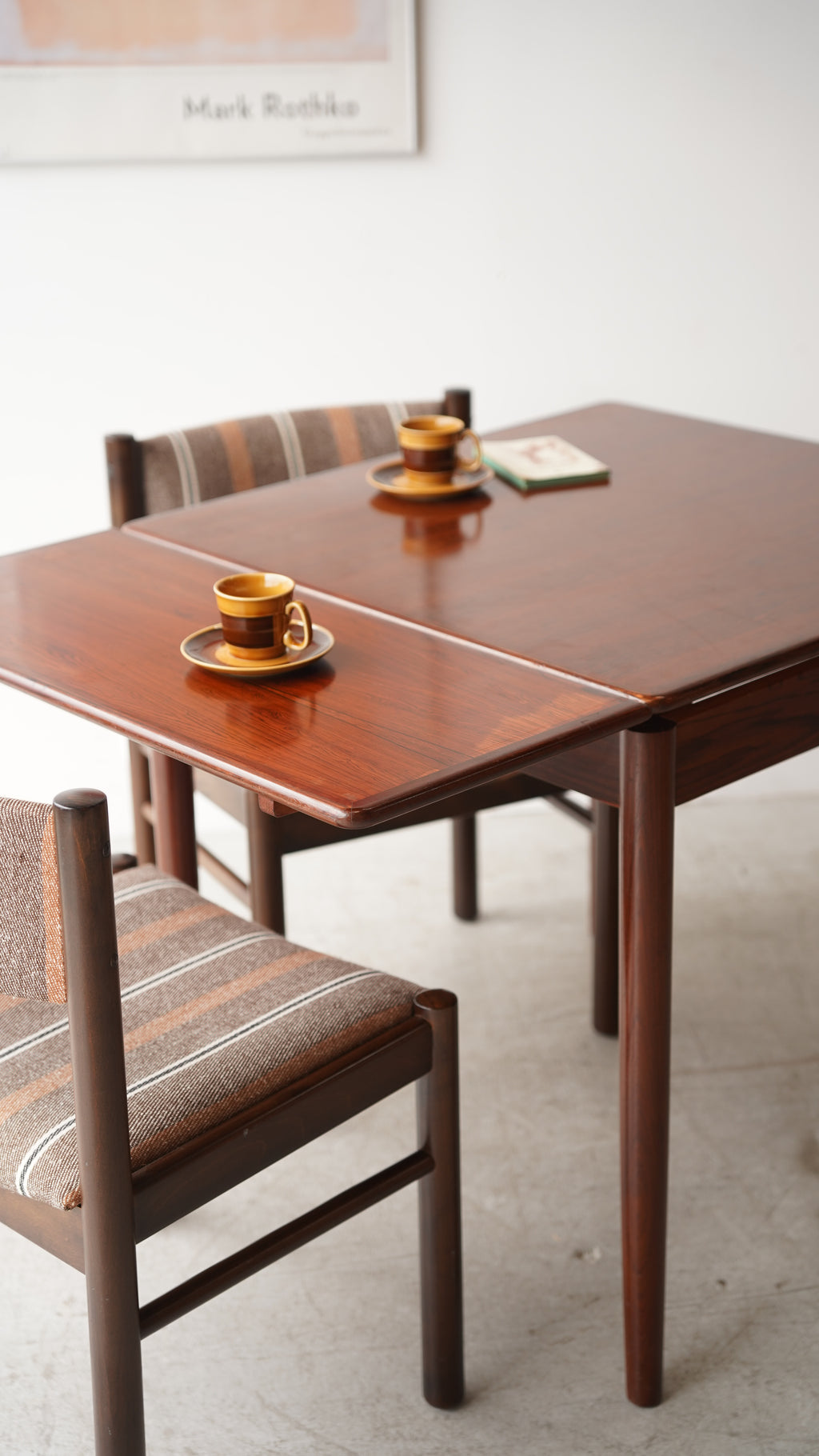 シンプルなデザインと美しい木目のエクステンションテーブル。