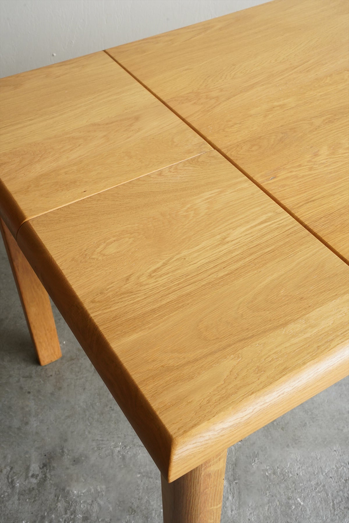 自然な木目が美しいオーク材のエクステンションテーブルです。普段はコンパクトなサイズで、お部屋を広々と使うことができます。来客時や家族が増えた際には、天板を広げることで、ゆとりのあるダイニングスペースが生まれます。