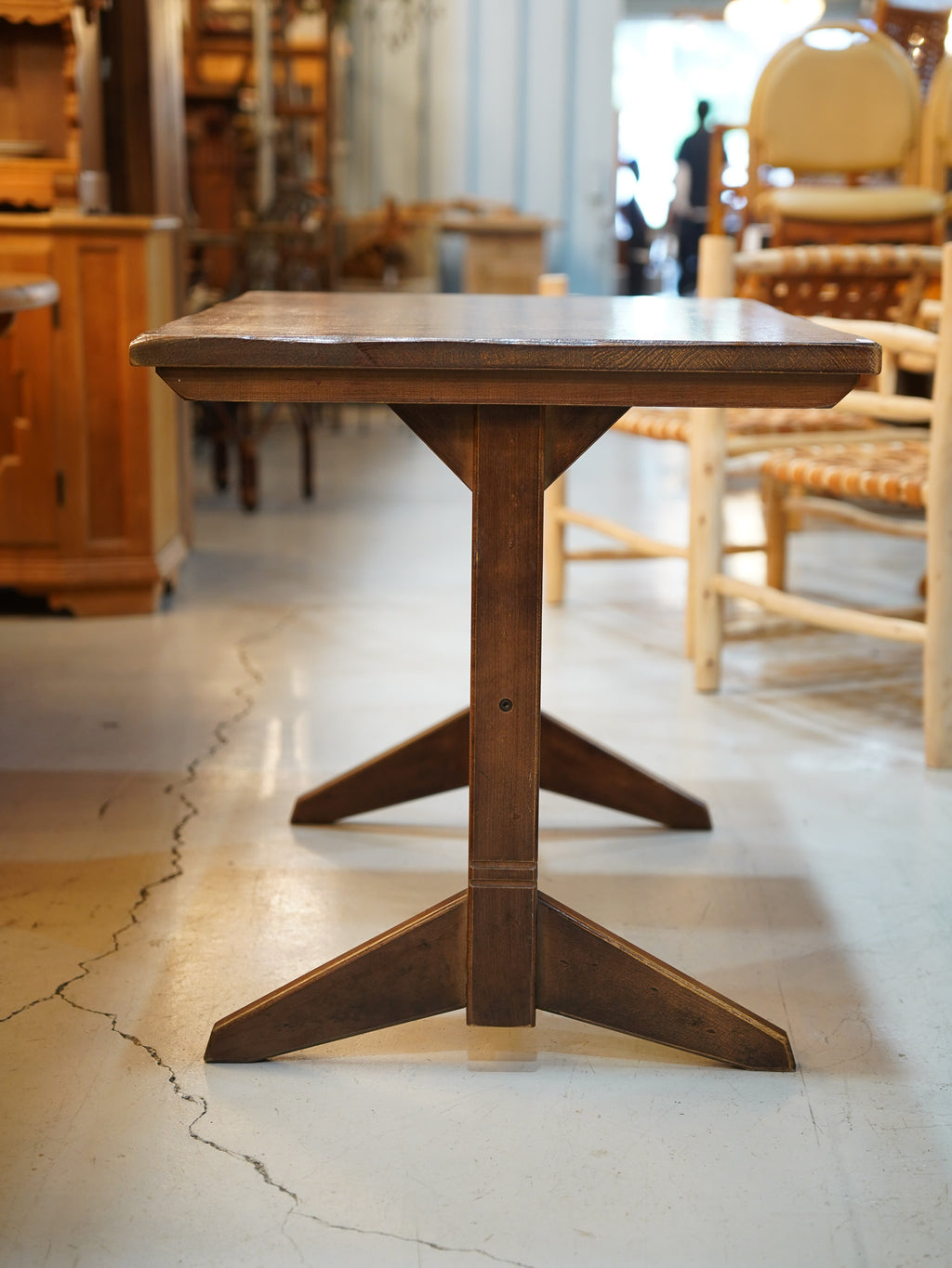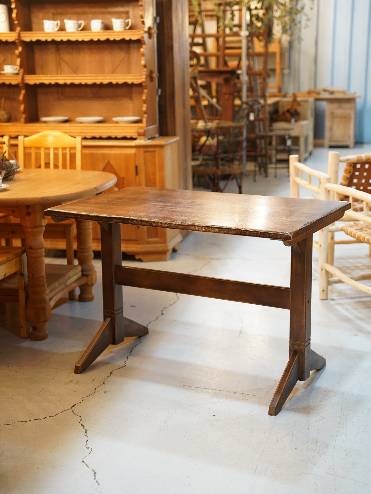 安定感のあるT字型の脚部は、デザイン性が高いだけでなく、椅子やベンチの配置の自由度を高めます。ダイニングテーブルとしてはもちろん、作業台やディスプレイテーブルとしても活躍するサイズ感です。