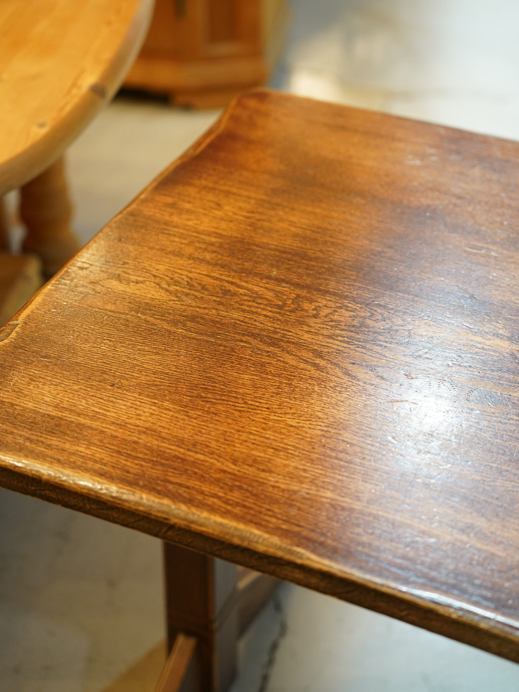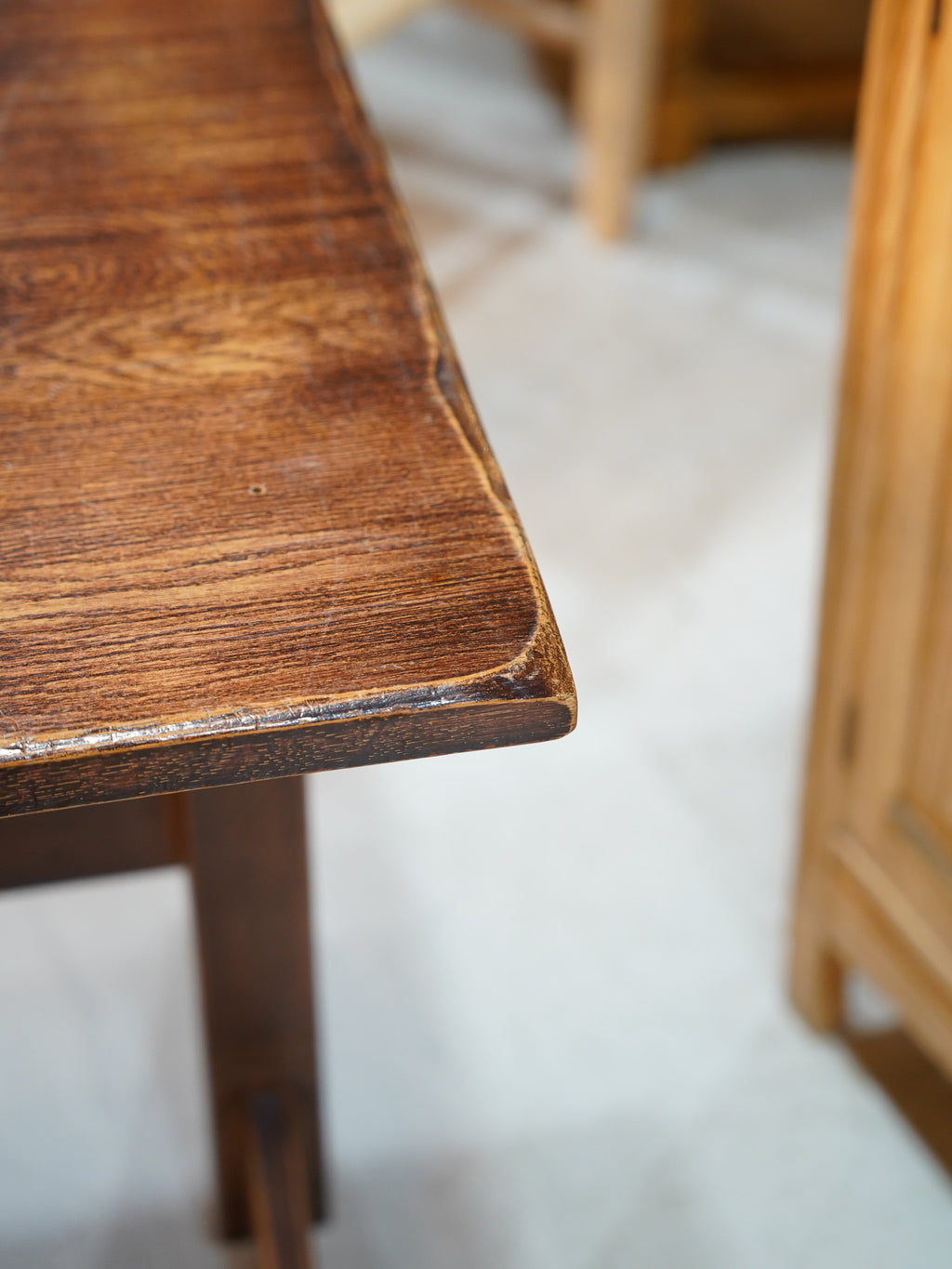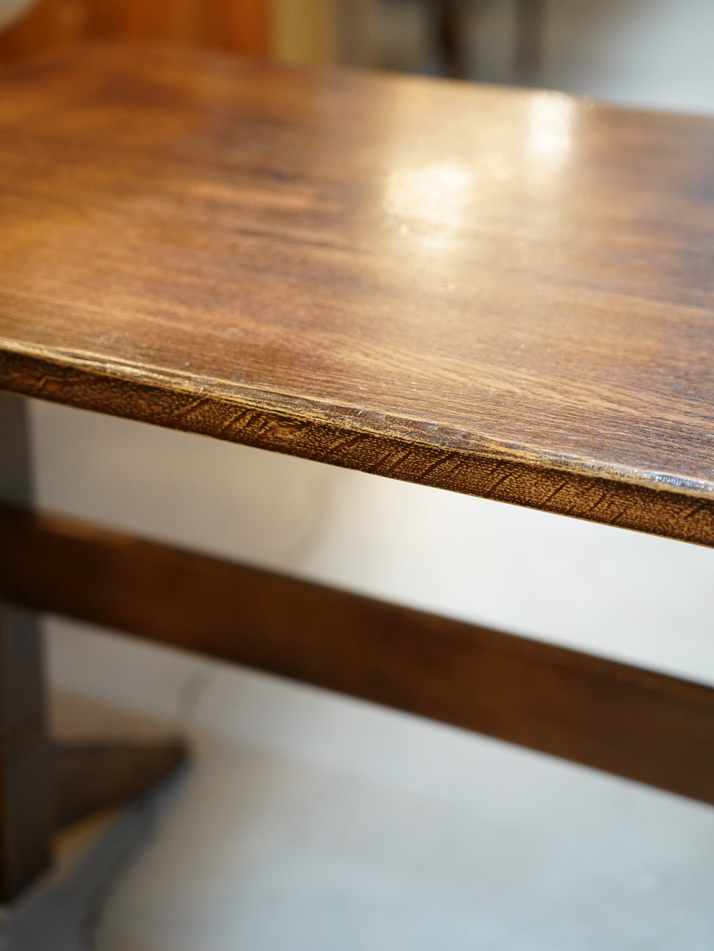 味わい深い飴色の光沢が魅力のオークウッドテーブル