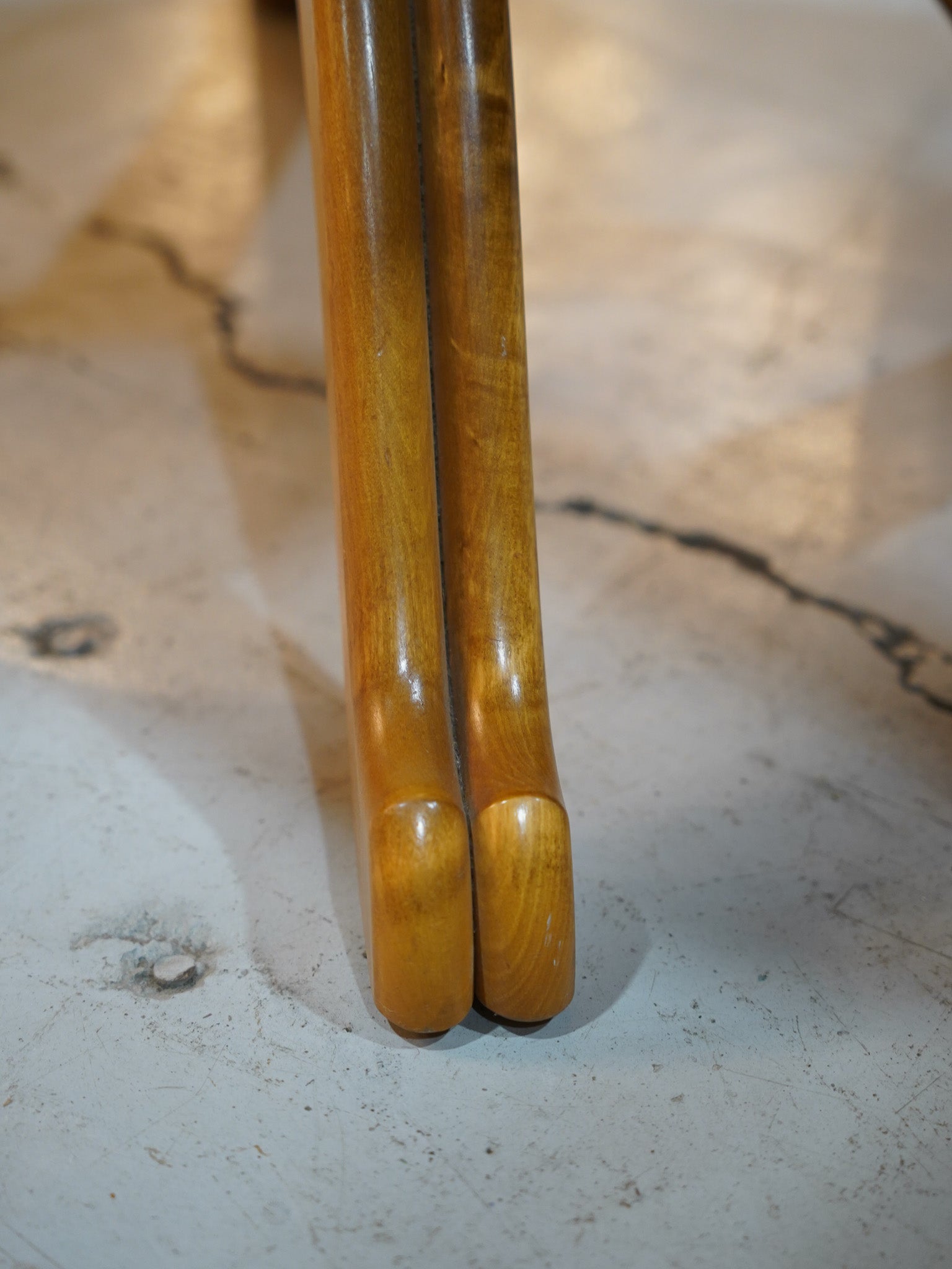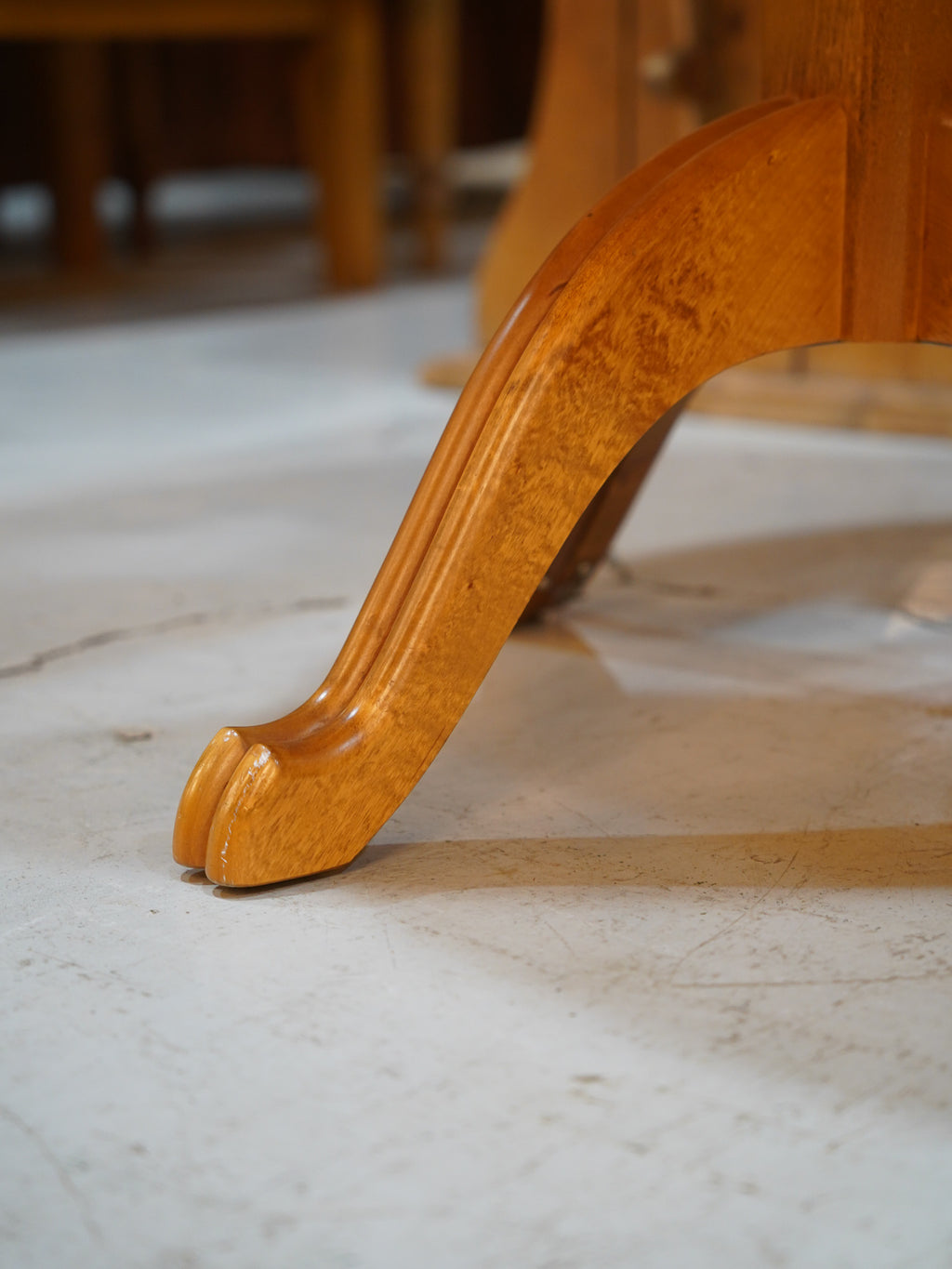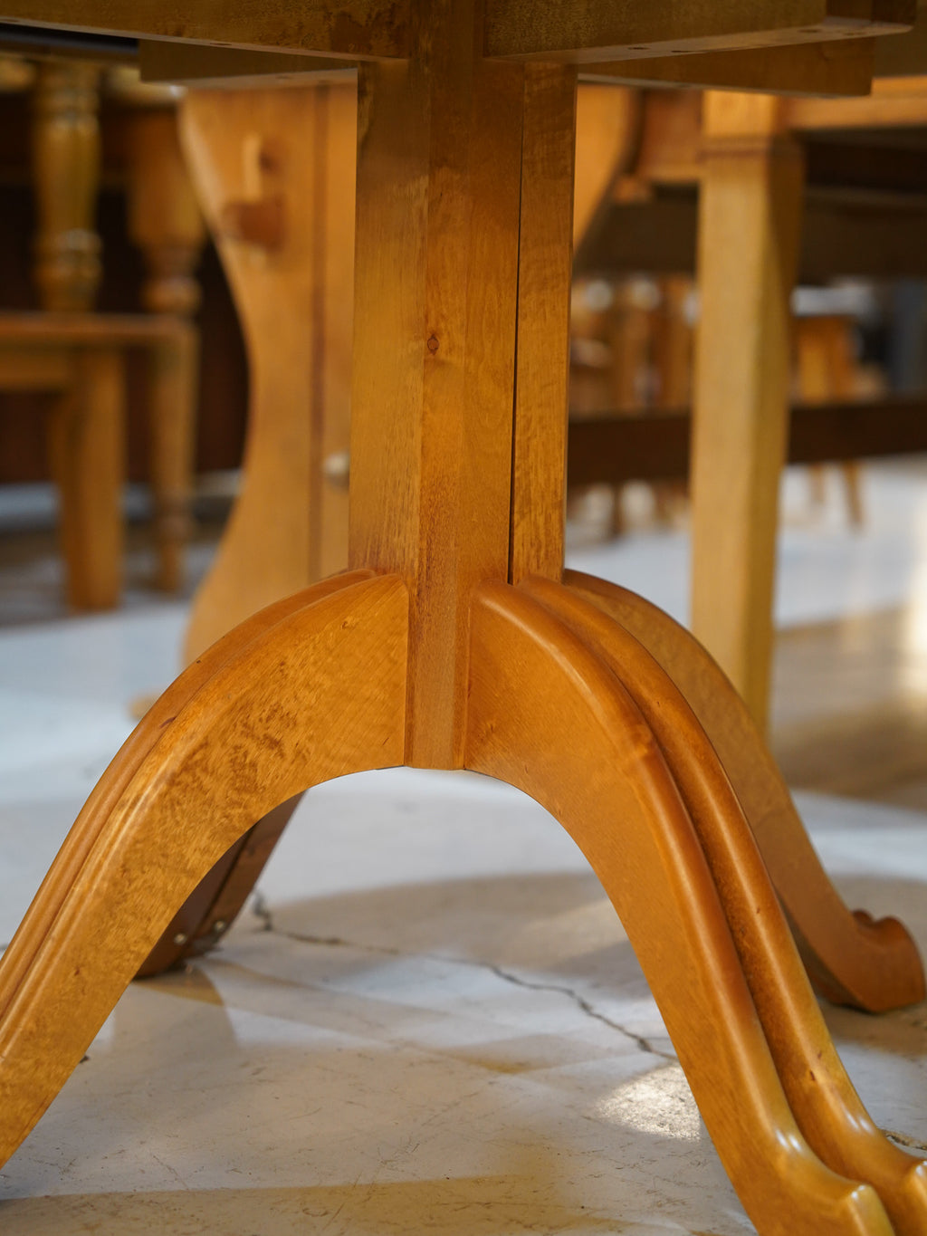 中央にどっしりと構える脚部は、クラシカルで安定感のあるデザイン。先端が緩やかにカーブを描いた「猫脚(カブリオールレッグ)」のような意匠も見られ、空間に優雅なアクセントを加えます。