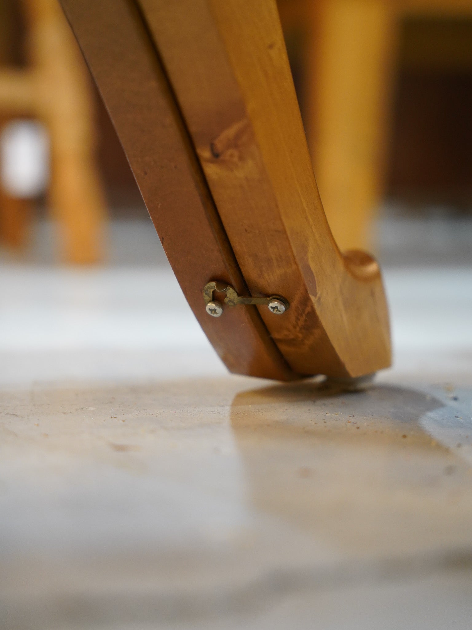 全体的に深みのある飴色に経年変化したような、ヴィンテージ感あふれる色合いと光沢が魅力です。長く使い込まれたような趣があり、北欧ヴィンテージやレトロモダンなインテリアに馴染みます。