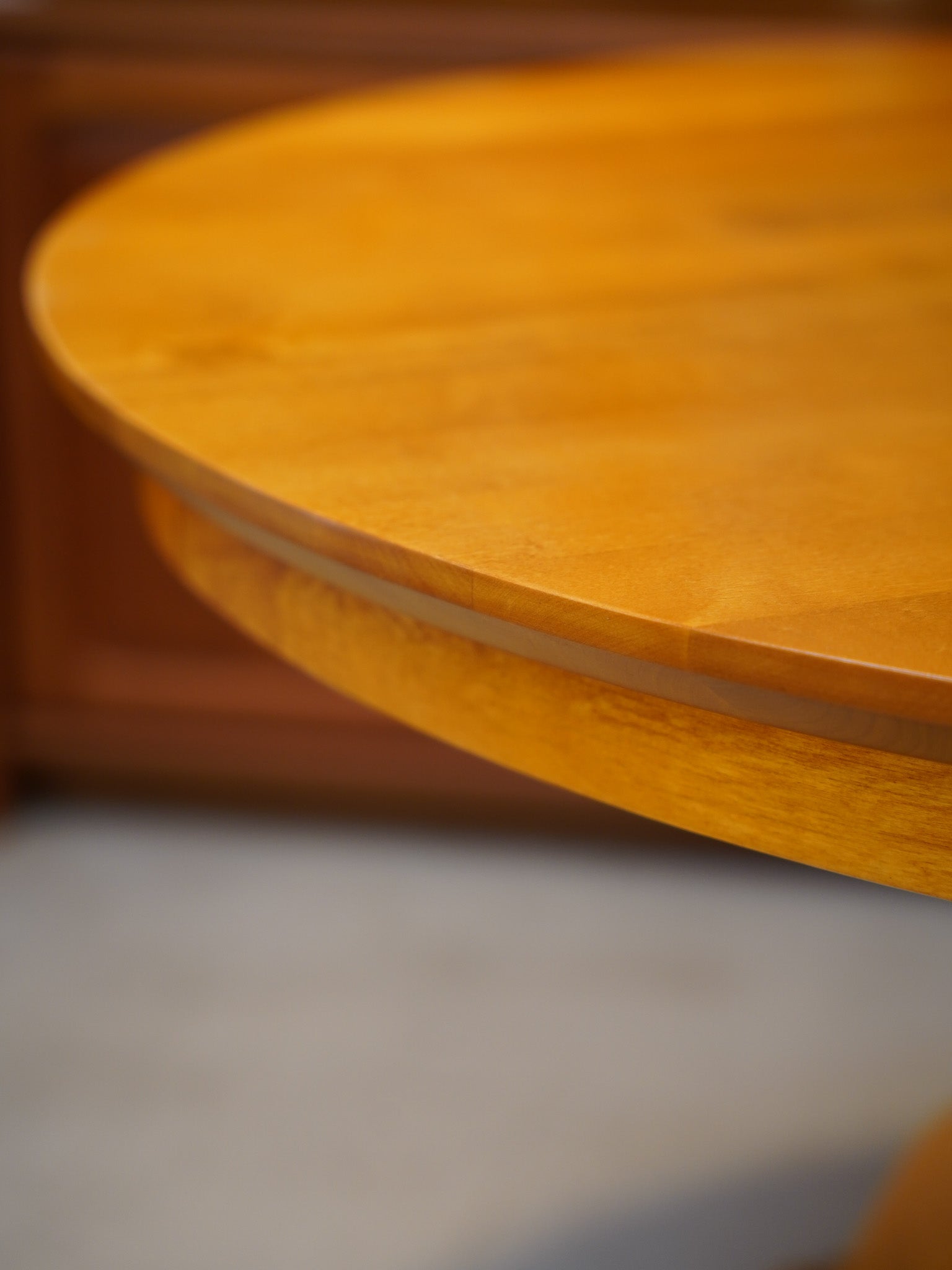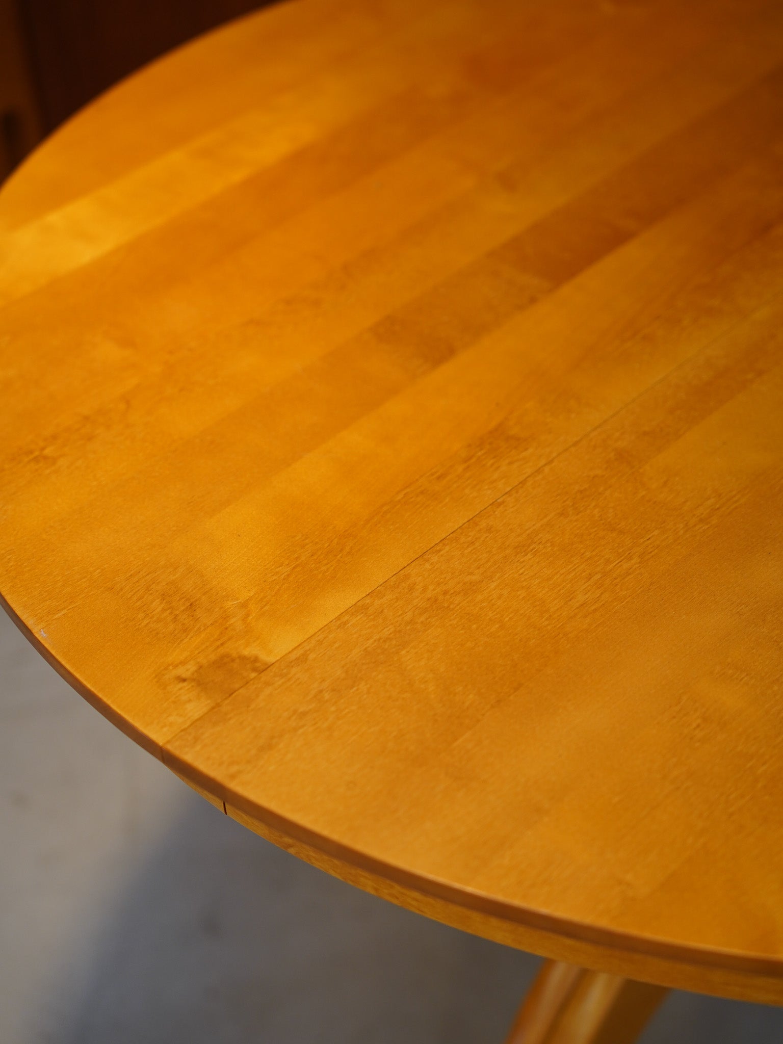 明るく温かみのある木肌が美しいラウンドダイニングテーブルです。 広々とした直径100cmの天板は、家族や友人との食事をゆったりと楽しむのにちょうど良いサイズ。
