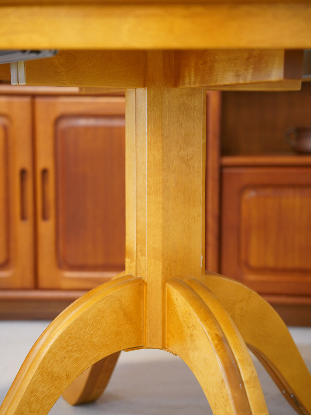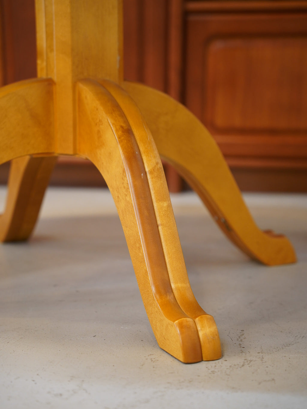 どっしりとした脚部がしっかりと天板を支え、安定感のあるデザインで、クラシカルな雰囲気も持ち合わせています。