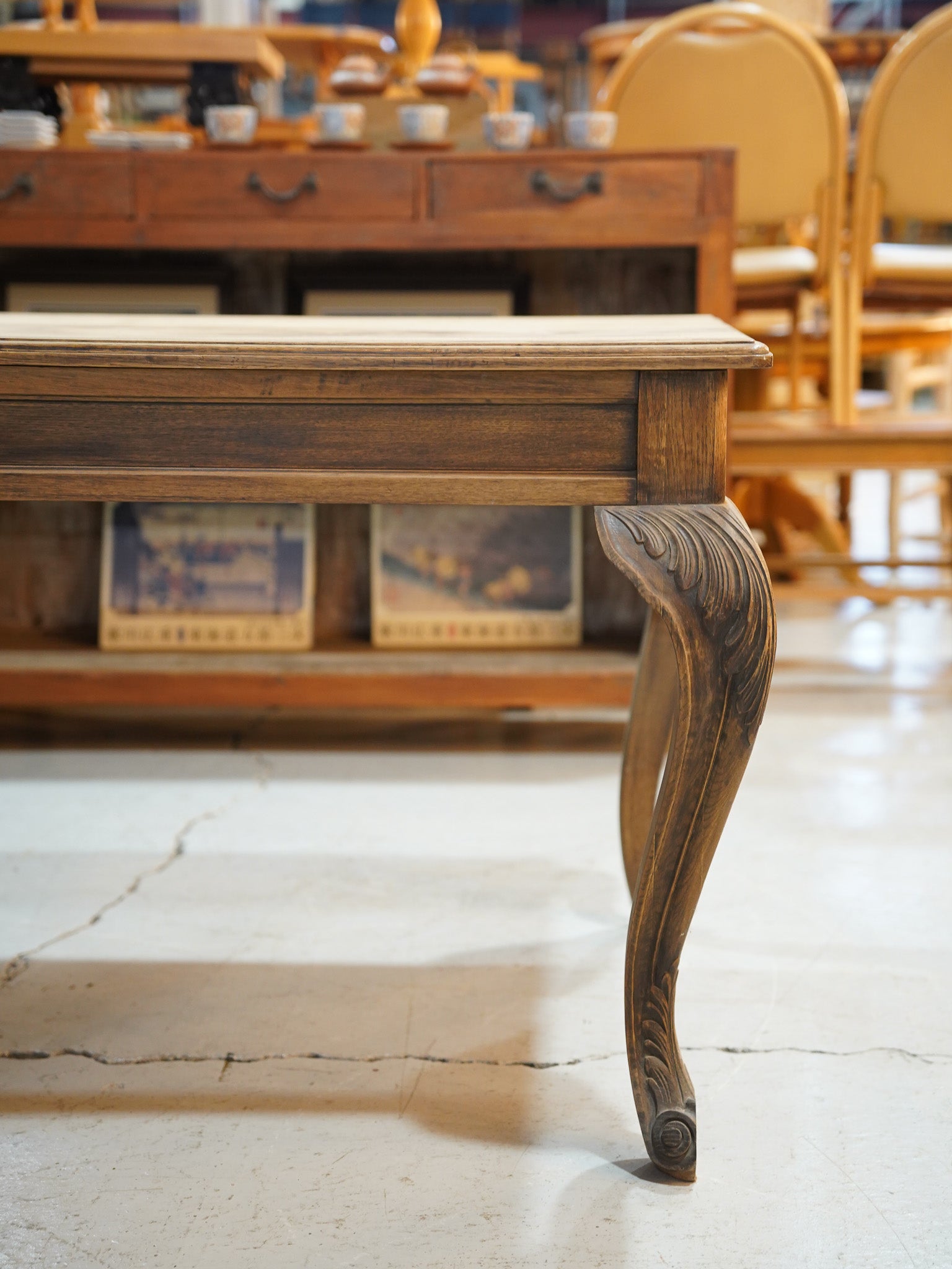 広々とした天板のサイズと、繊細で優美な曲線を描く脚部のコントラストが魅力的な一脚。