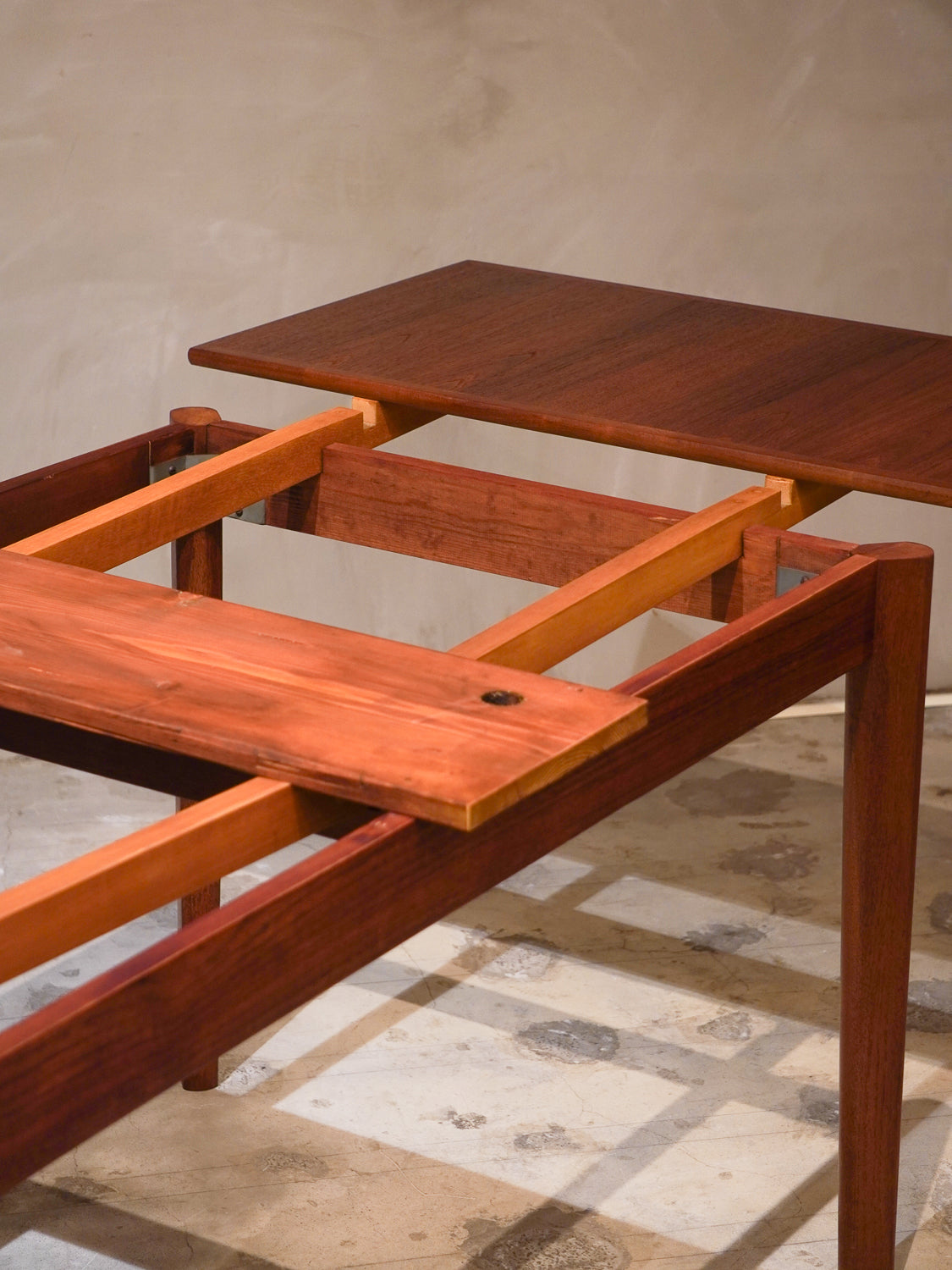 このテーブルの最大の魅力は、来客時などに天板を広げることができるエクステンション機能を備えている点です。