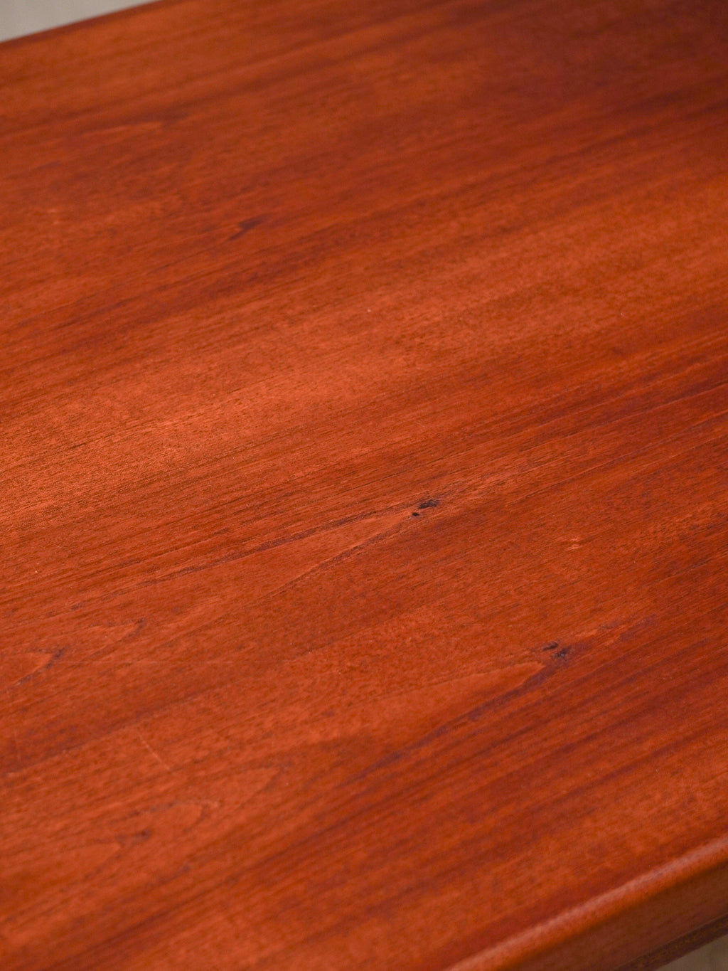 長年使い込まれたことで、チーク材特有の重厚な色艶と滑らかな木肌が生まれ、空間に格調高い雰囲気をもたらします。