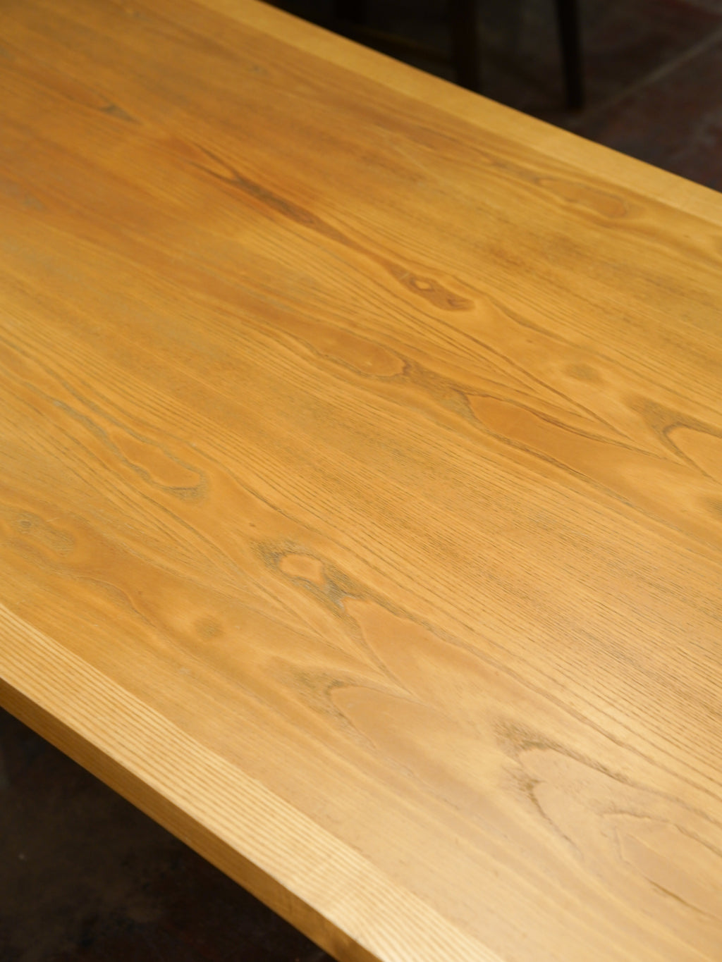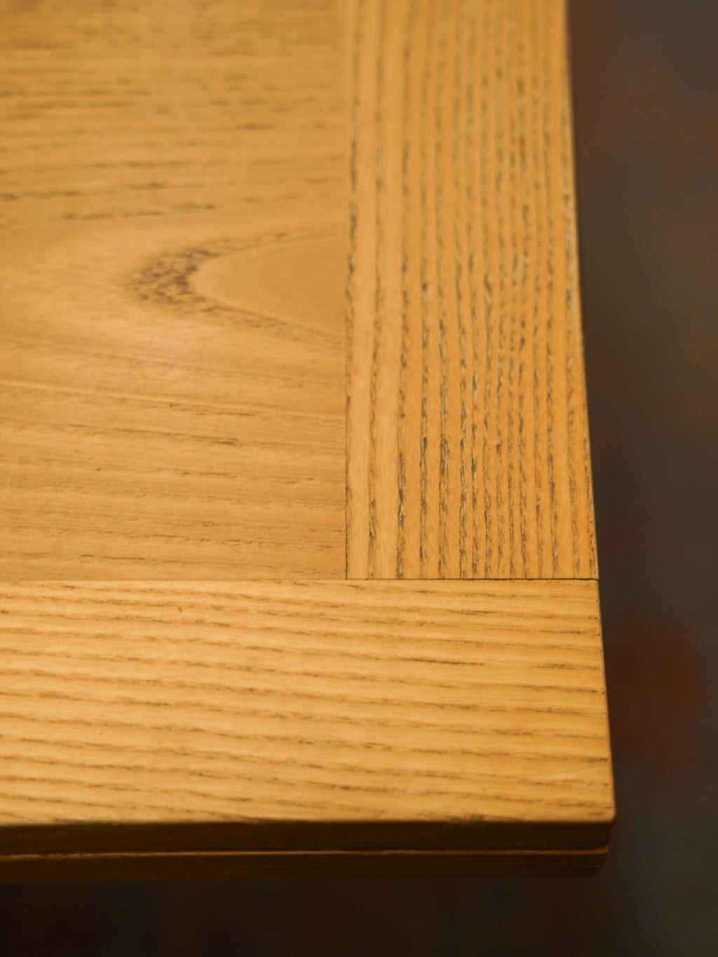安定感のあるT字型の脚部デザインは、座る位置を選ばず足元にゆとりを生み出します。細部まで丁寧に仕上げられた上質な一台です。