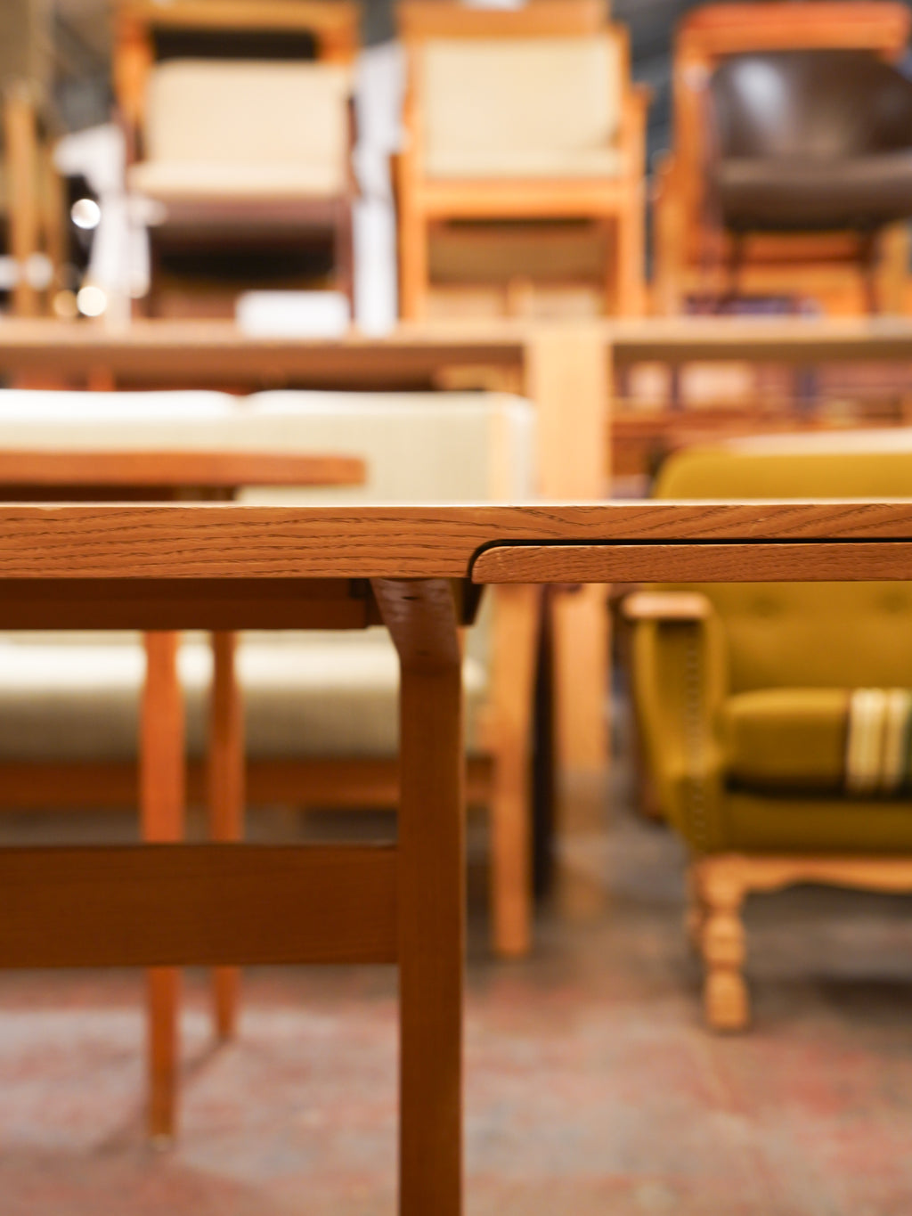 普段はゆったりとした4〜6人掛けとして、来客時には最大226cmまで拡張できる機能的なエクステンションテーブルです。