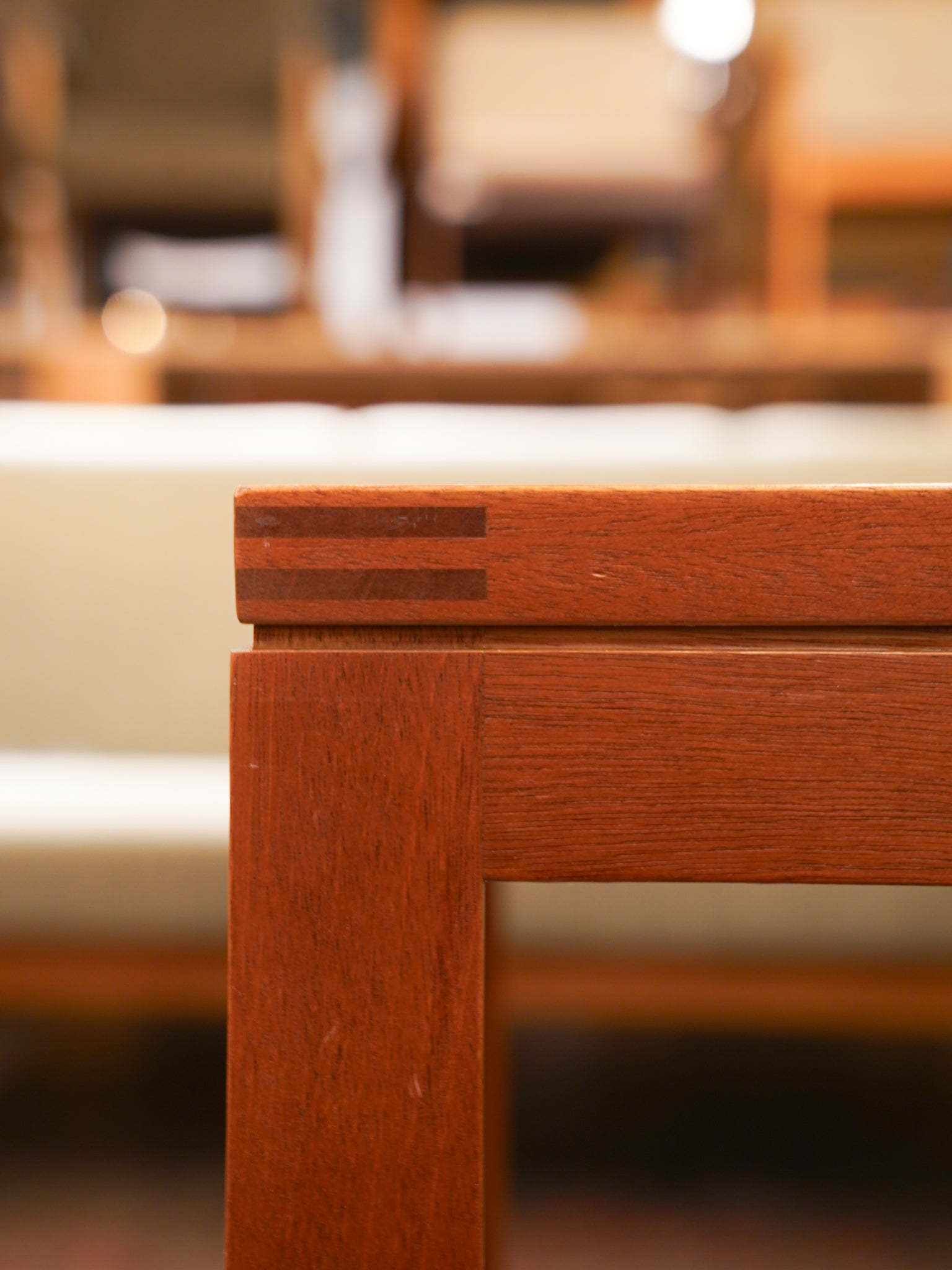 一見シンプルですが、天板の縁取りや脚部の接合部の処理など、職人技が光る精巧な作りが魅力。温かみのあるウッドの質感が、お部屋の雰囲気を格上げしてくれます。