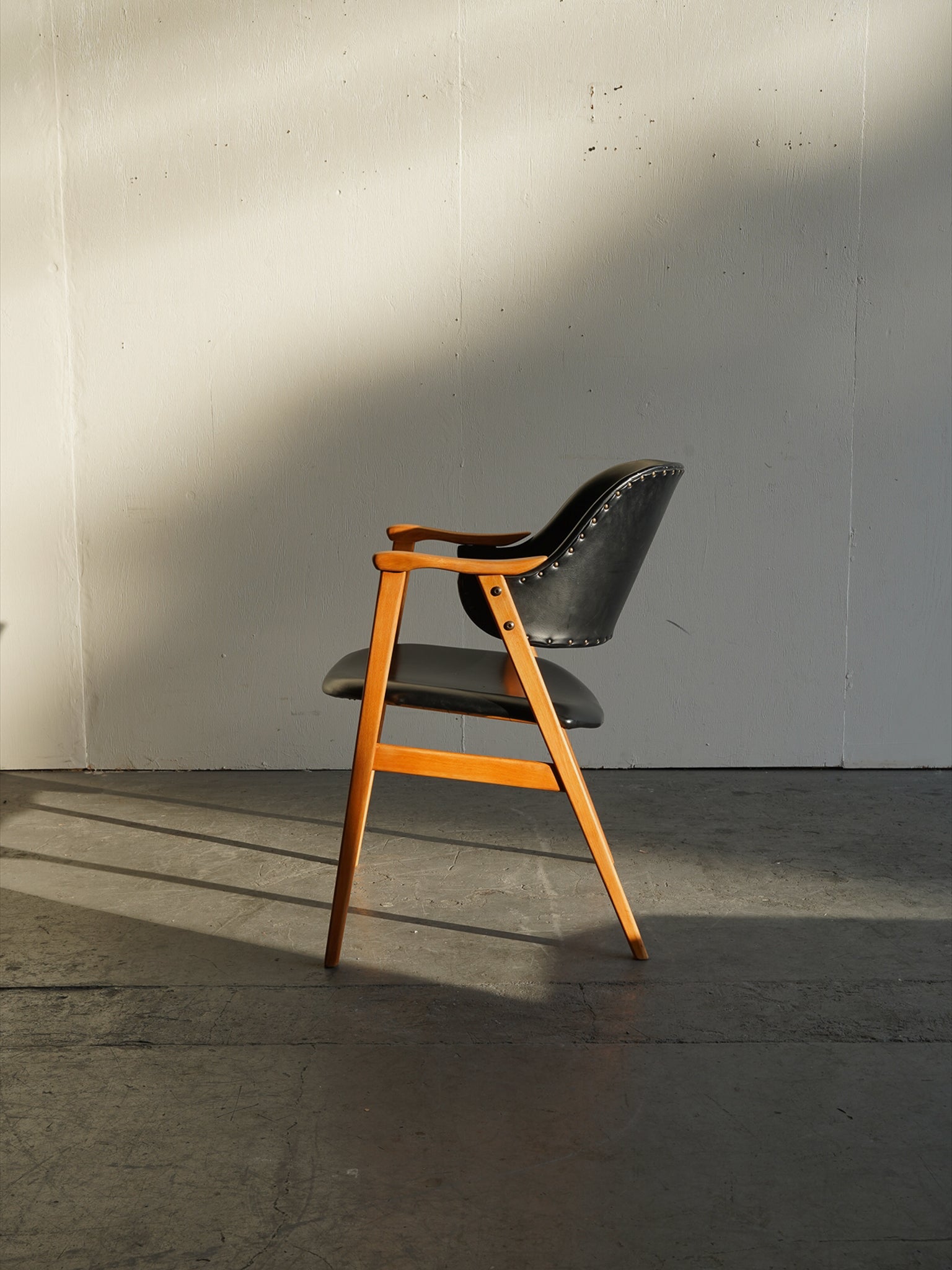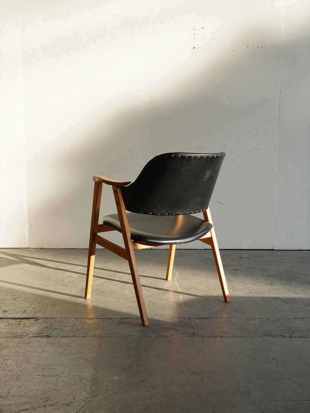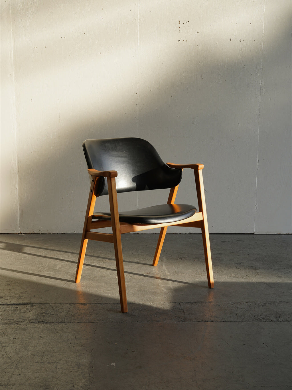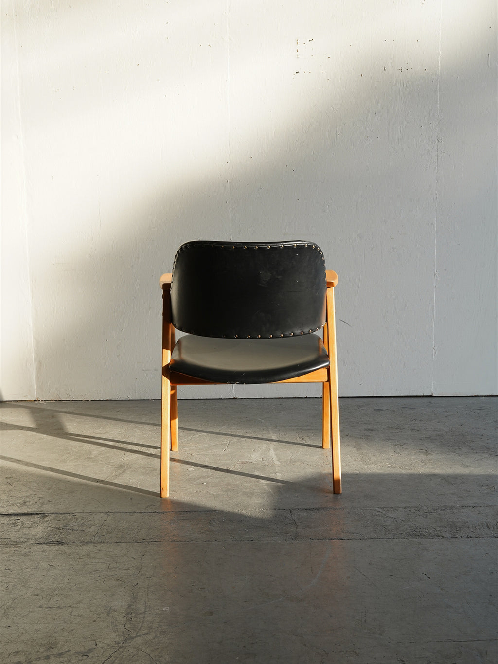 製造地であるDiö(ディオ)の工房で丁寧に作られたこの椅子は、北欧らしい温かみのある木材と、有機的なカーブを描く背もたれが特徴。特に、緩やかに外側に開いたアームと、それを支えるすらりとした脚部の洗練された造形は、座る人を優しく包み込むような安定感と、空間に軽やかなリズムをもたらします。
