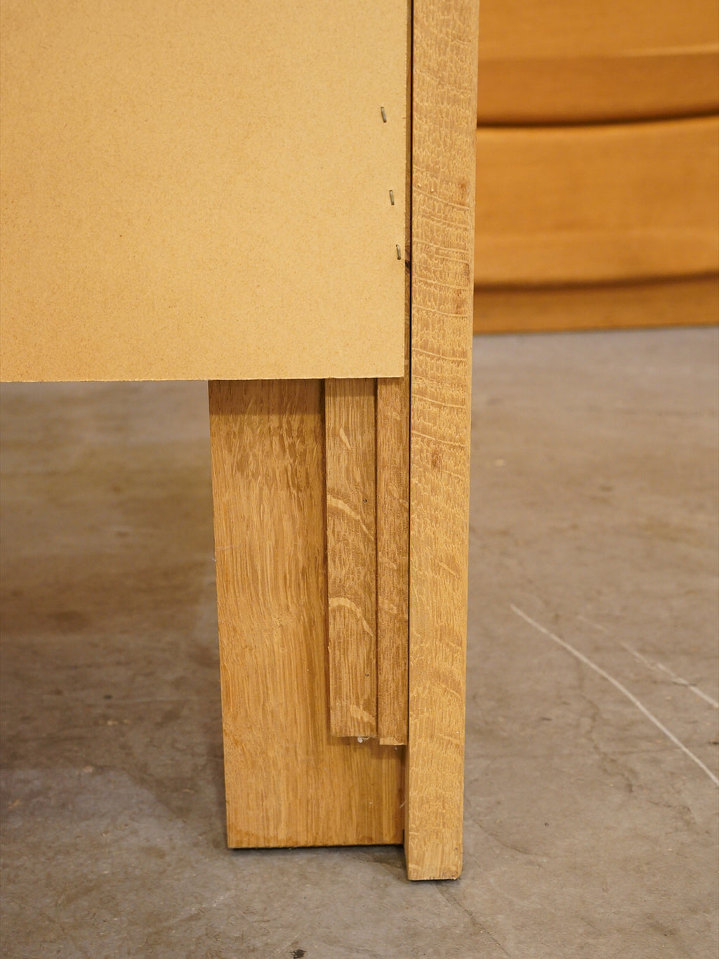直線的で無駄のないフォルムは、装飾に頼らず素材と構造の美しさを引き立て、北欧モダンとも相性の良い落ち着いた佇まいを見せます。引き出しを1杯備え、ベッドサイドやソファ横など日常使いに十分な収納力も確保。工業的な合理性と温かみのある木質感が共存したデザインは、流行に左右されることなく長くお使いいただけます。