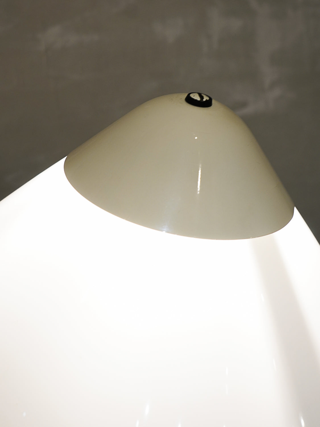 デザインの要であるシェードは、耐衝撃性に優れた特殊なアクリルを採用しており、上部へは光を遮り下部へと効率よく拡散させる計算された構造になっています。