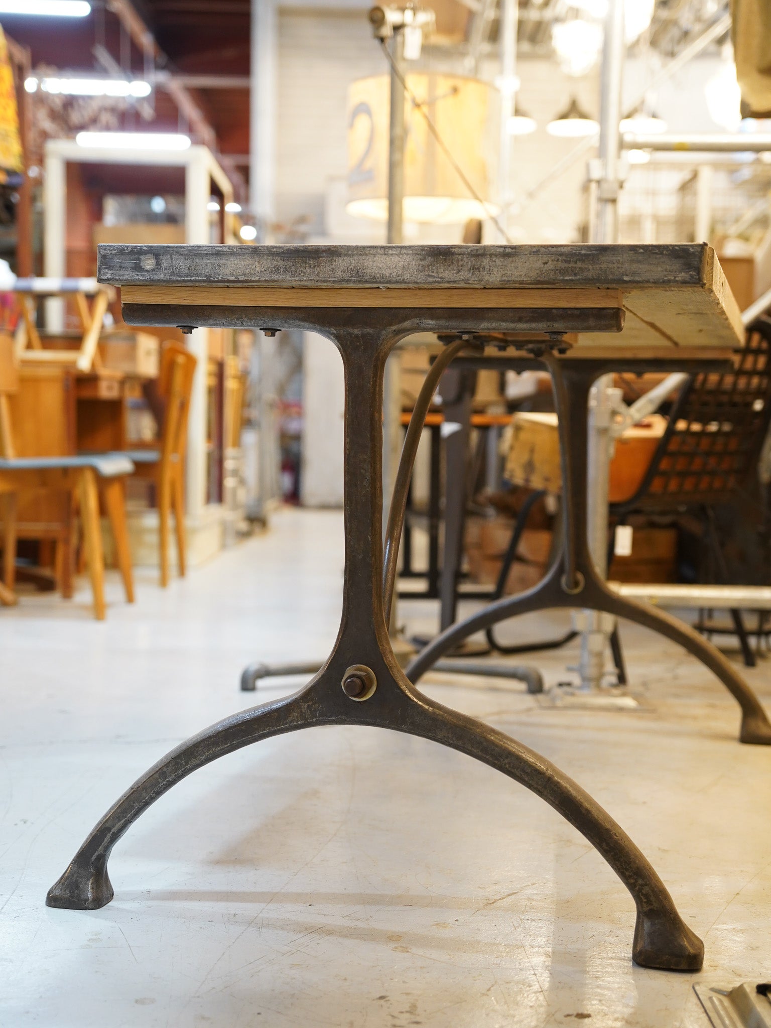 三又の曲線的な脚がインダストリアルな雰囲気を強く醸し出しています。