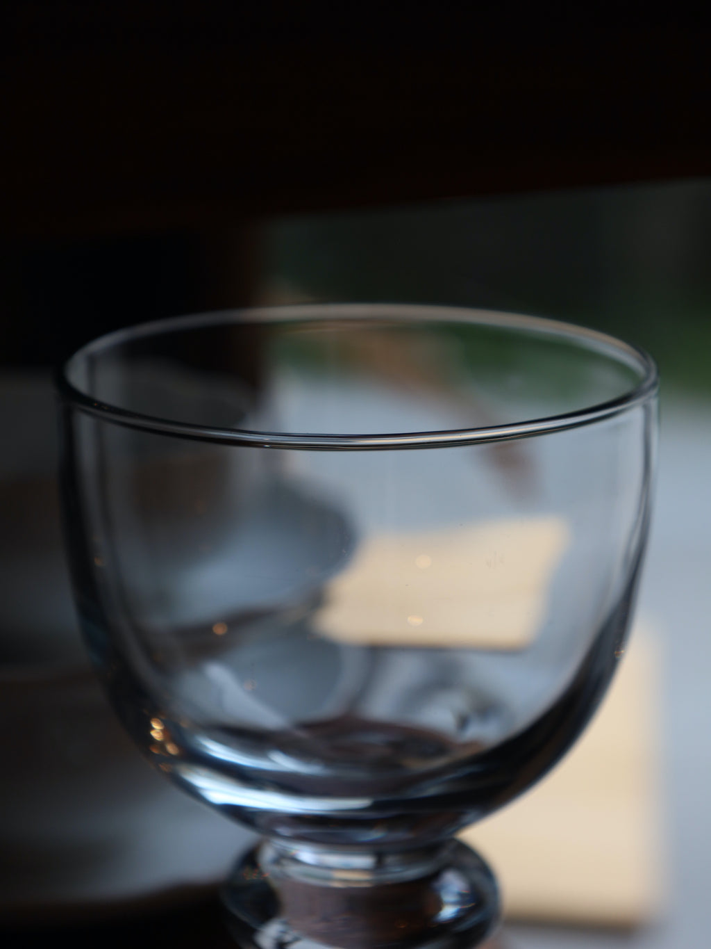 光がステムの膨らみ部分に集まることで、ガラス特有の美しい輝きを放ちます。