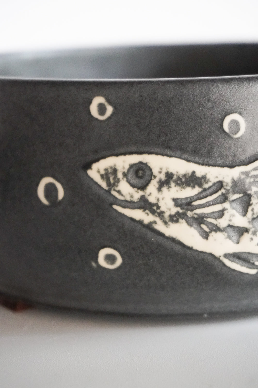 蓋にヒトデ、胴回りには魚がリズミカルに描かれていて見ていて楽しくなります。