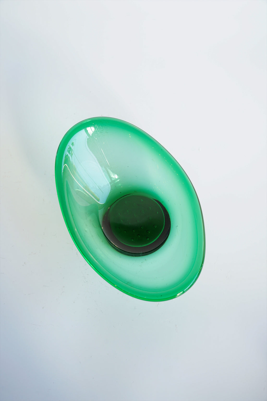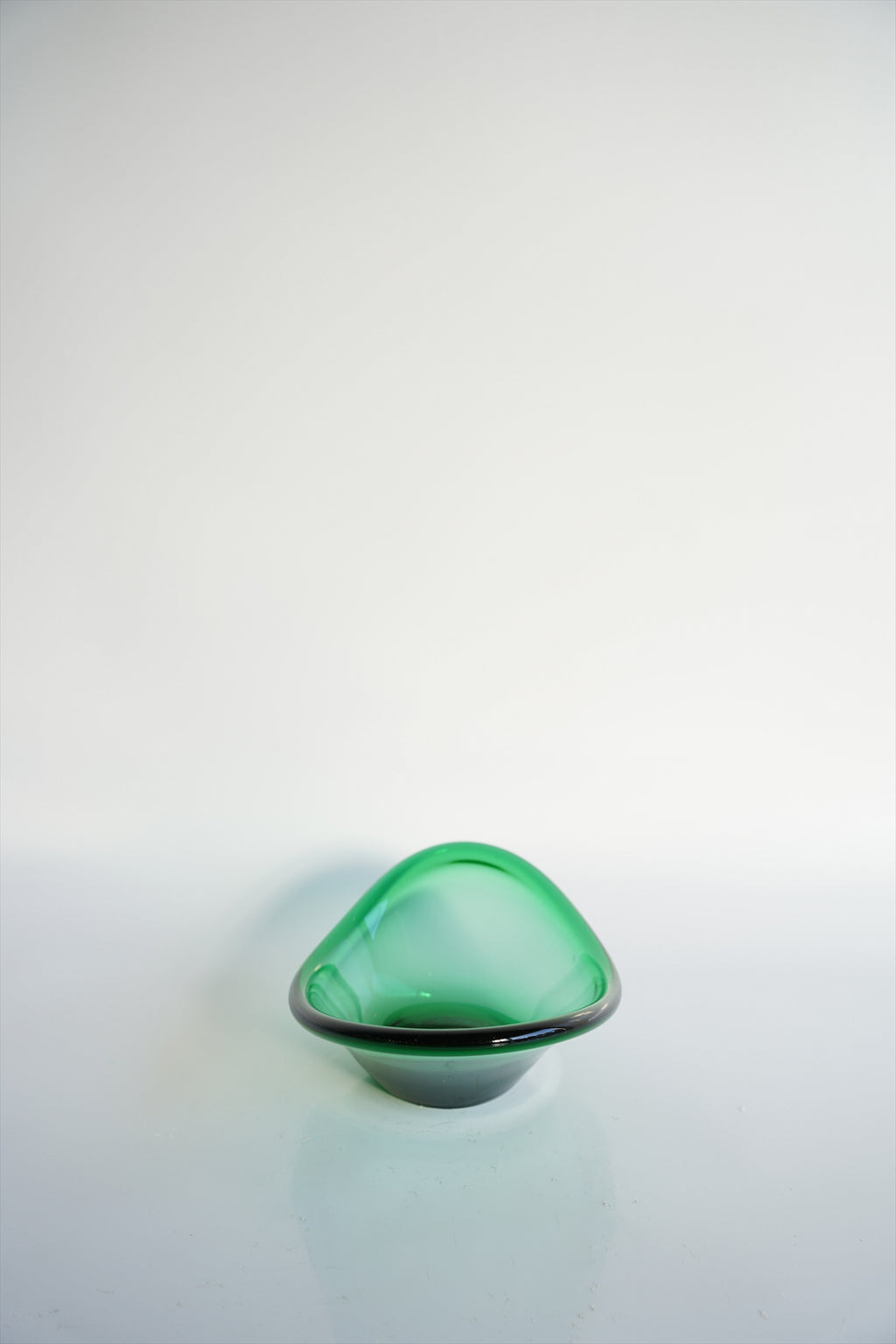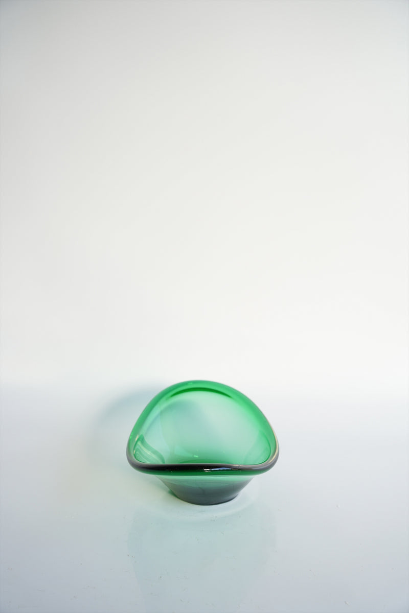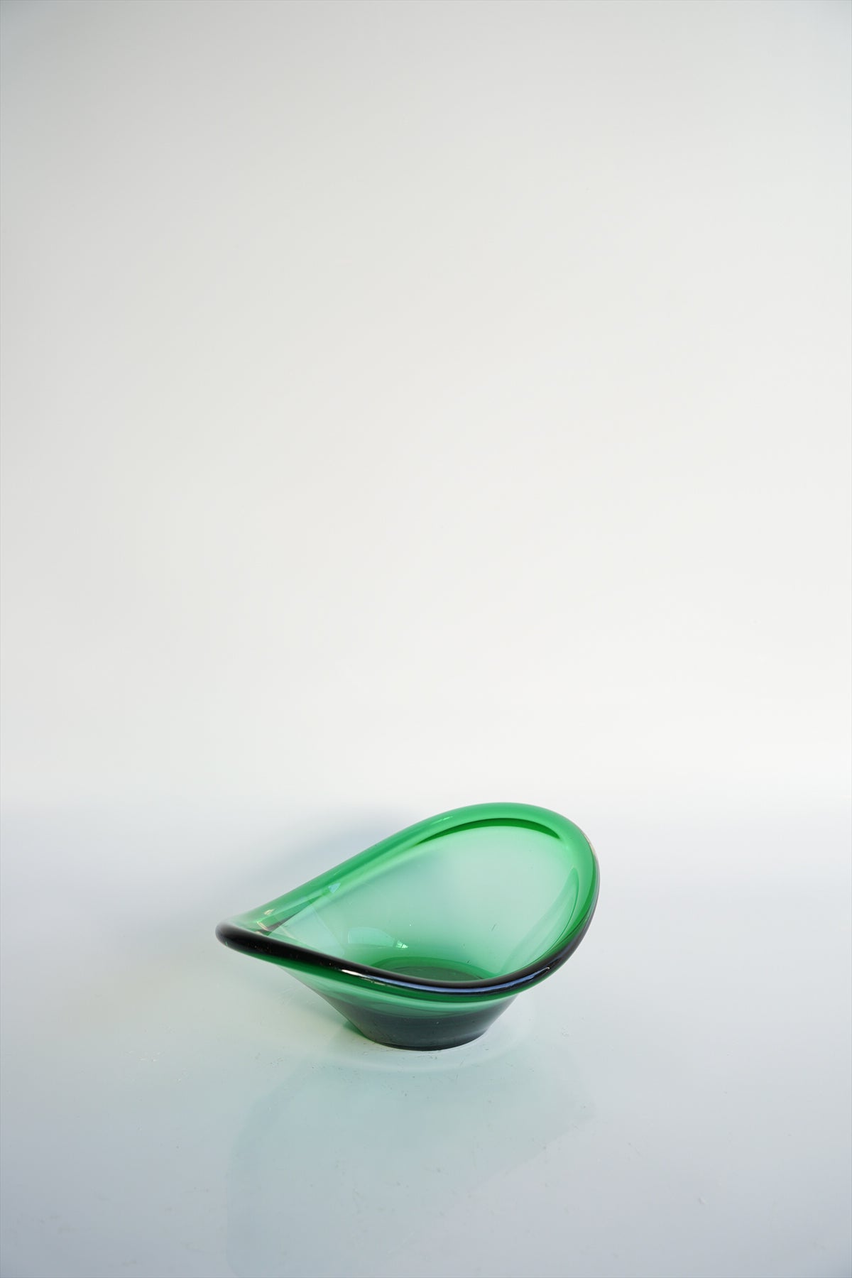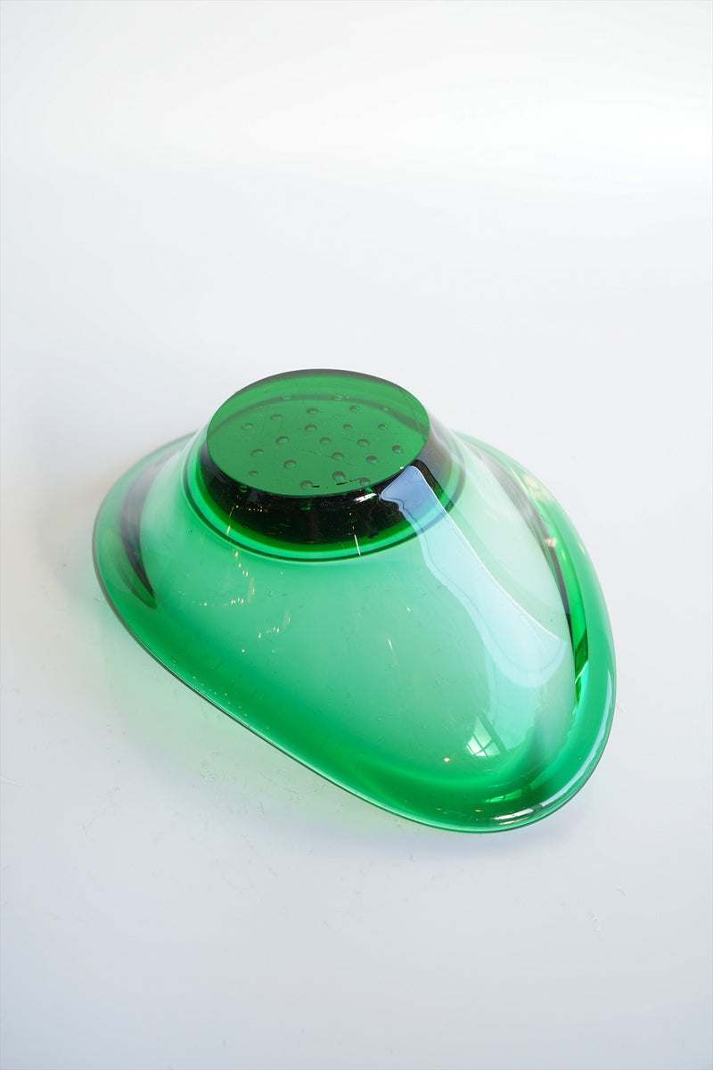 緩やかに波打つフォルムとグリーンのガラスが印象的なガラストレー