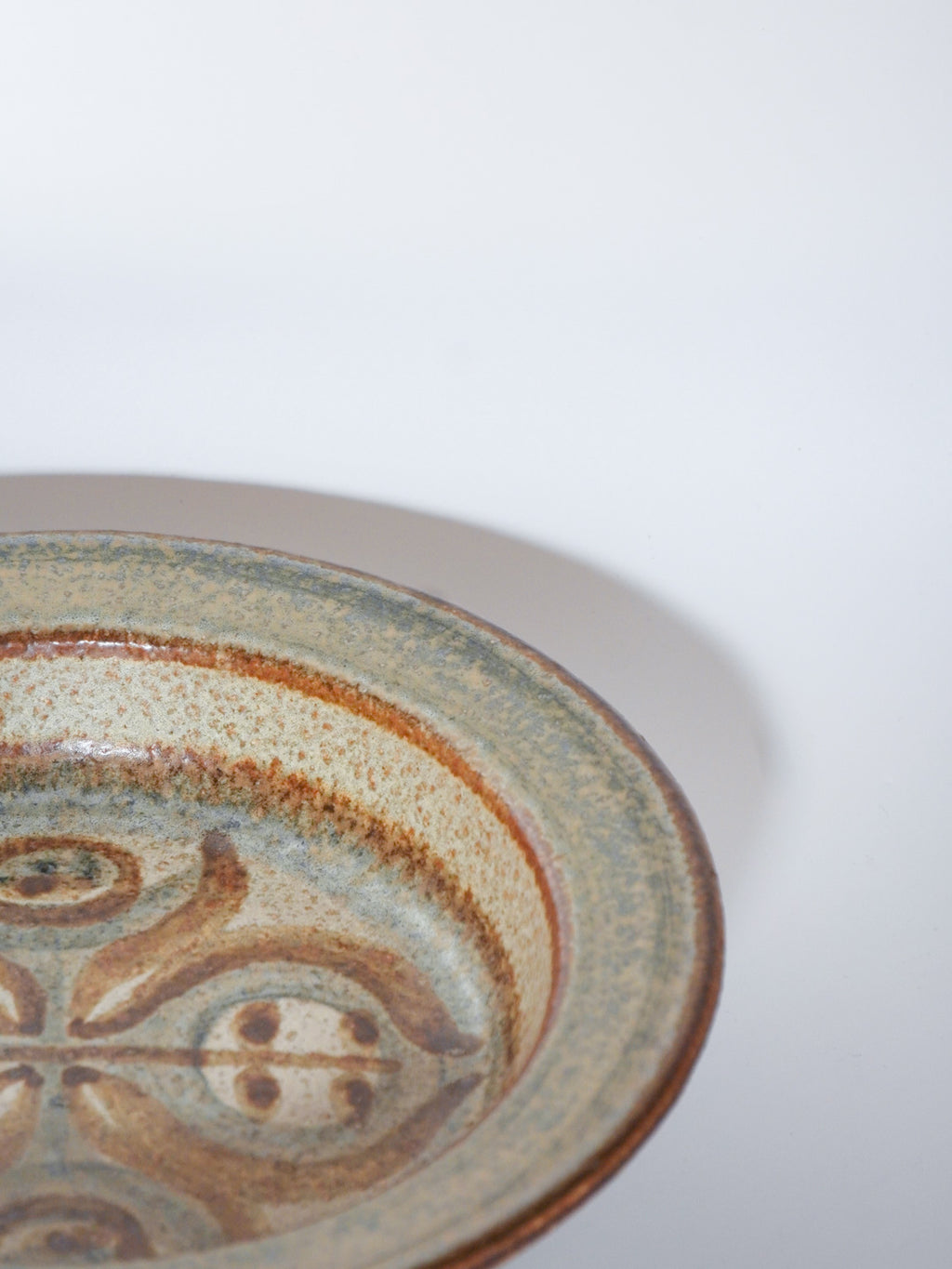 アイナー・ヨハンセンの作品は、彼の画家としてのバックグラウンドを反映した、大胆で抽象的な絵付けと、素朴で力強いストーンウェアの質感が融合しているのが特徴です。