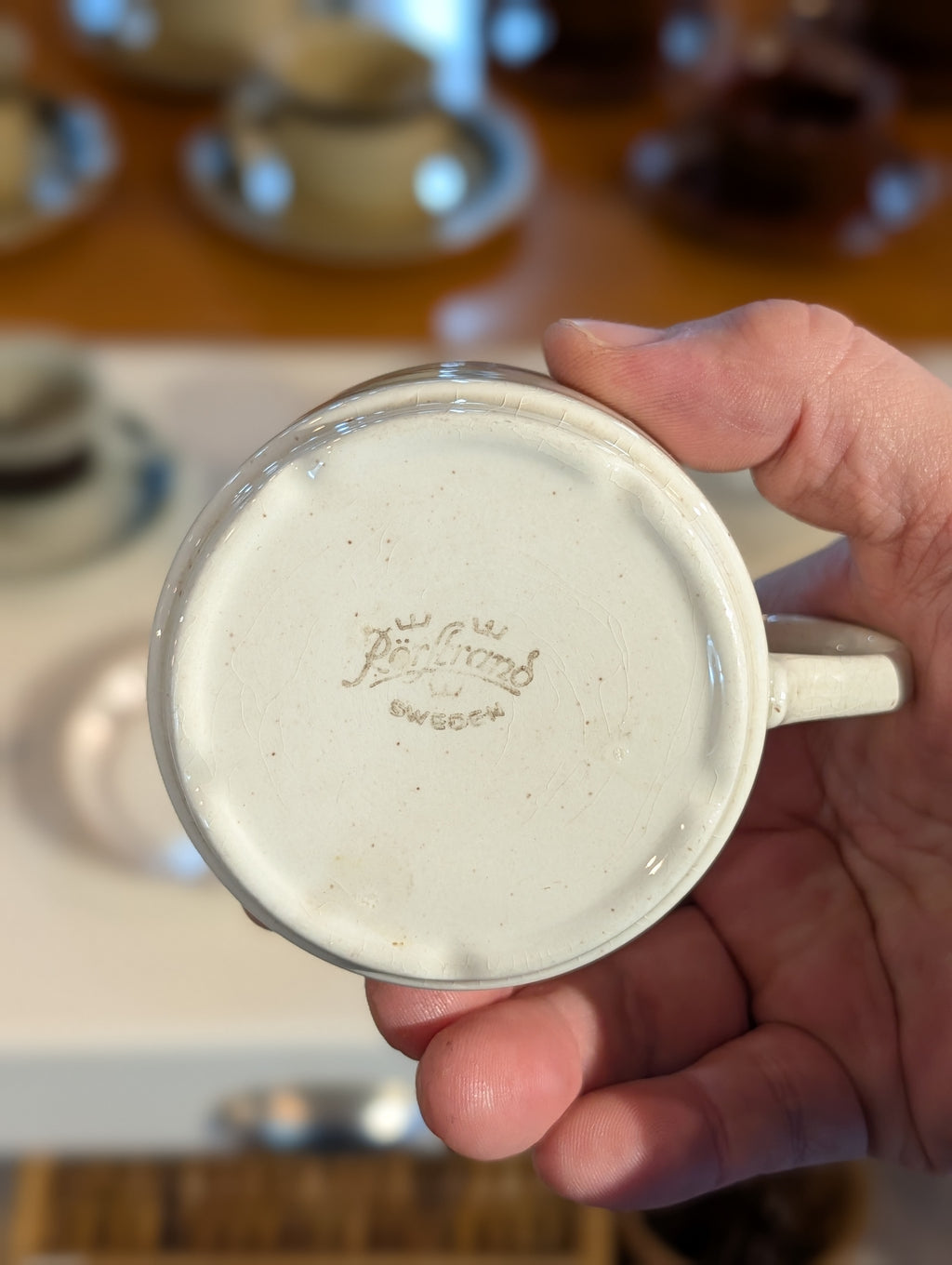 注目すべきは、かつてスウェーデンで用いられていた品質保証マーク「VDN F555」の表記。これは、当時の最高ランクの耐久性と品質基準をクリアした証であり、単なる古い器ではない、名窯の意地と誇りが込められたプロダクトであることを伝えています。